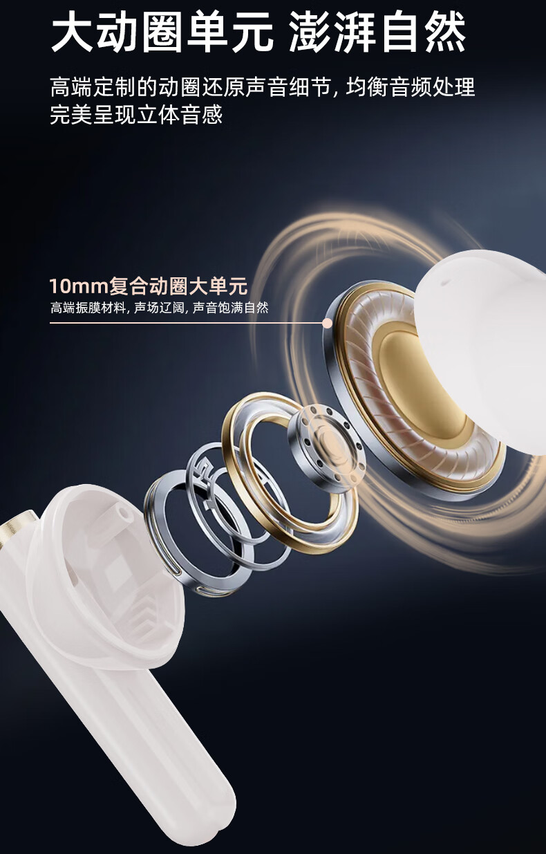 品胜真无线蓝牙耳机入耳式蓝牙5.4长续航音乐低延迟主动降噪耳机 P2适用苹果17华为小米手机 白色【主动降噪|入耳式】