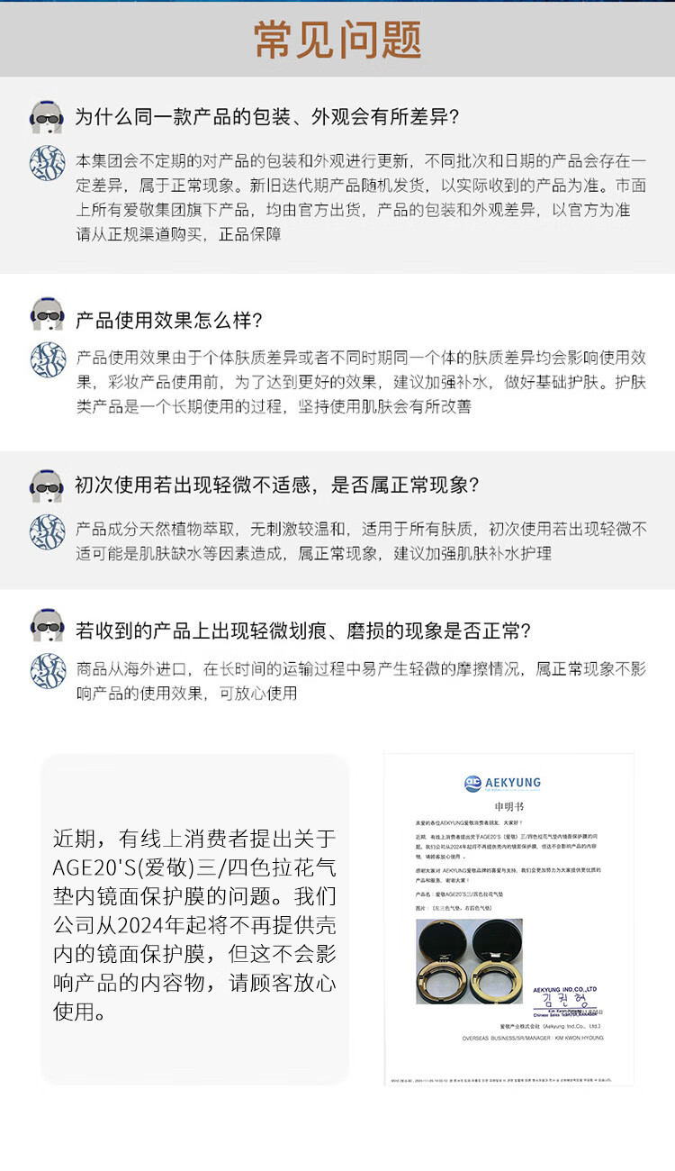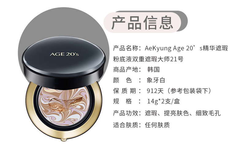 Aekyung Age 20's爱敬气垫BB霜四色拉花遮瑕21号象牙白SPF50+14g/只*2生日礼物女