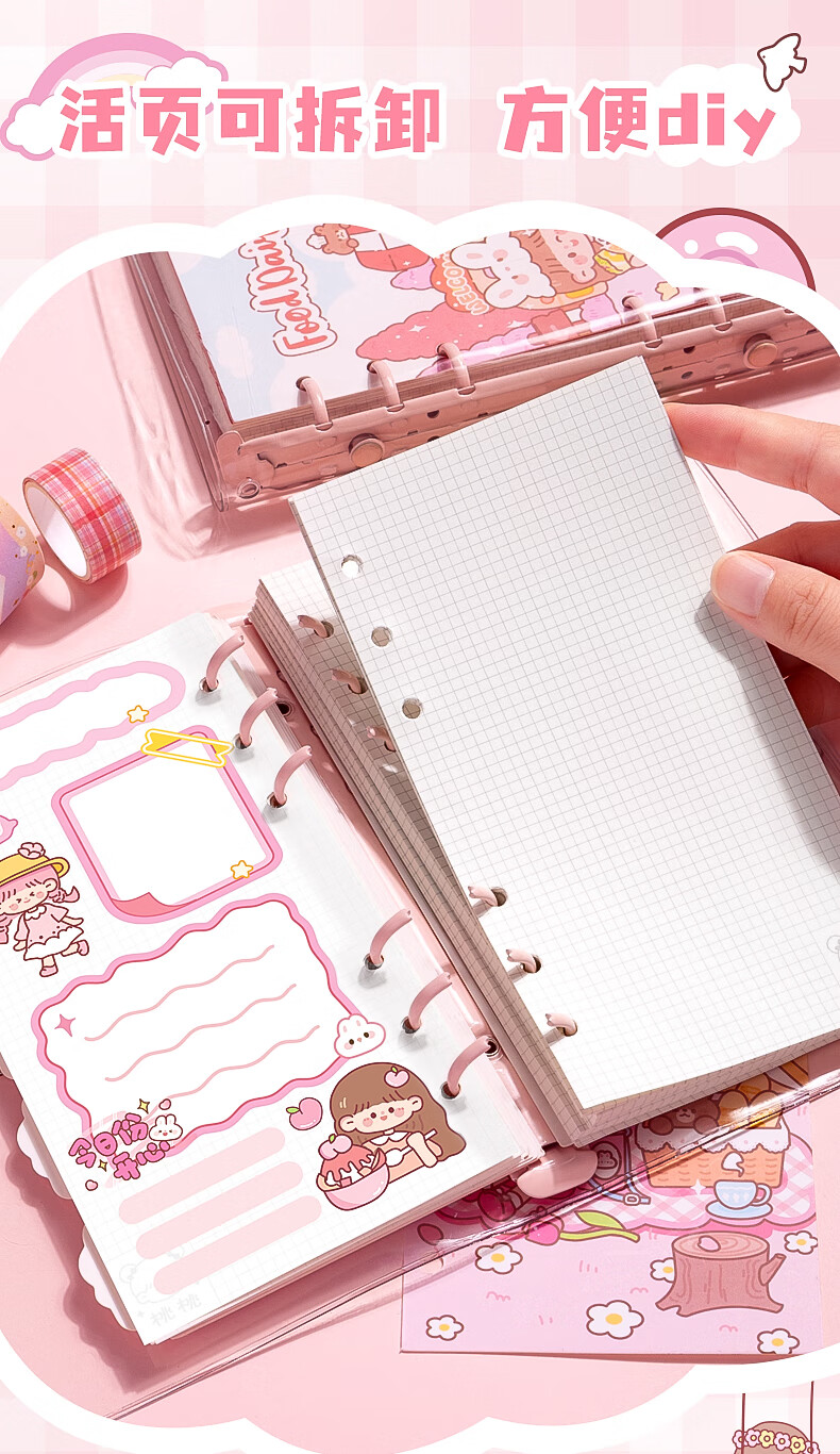 得力笔记本本子轻薄活页本活页笔记本记事本日记本b5活页本活页纸学生笔记本初高中生 【A5-彩色】超薄-自由翻/不硌手