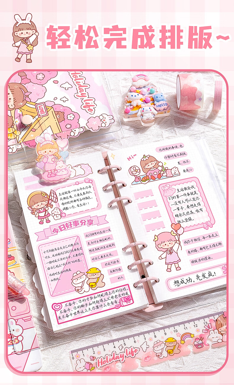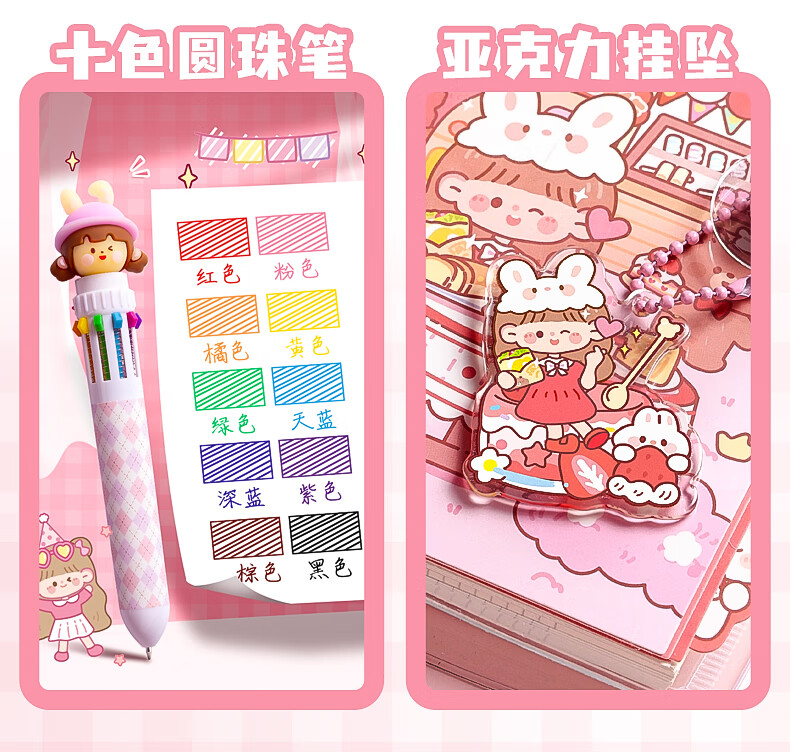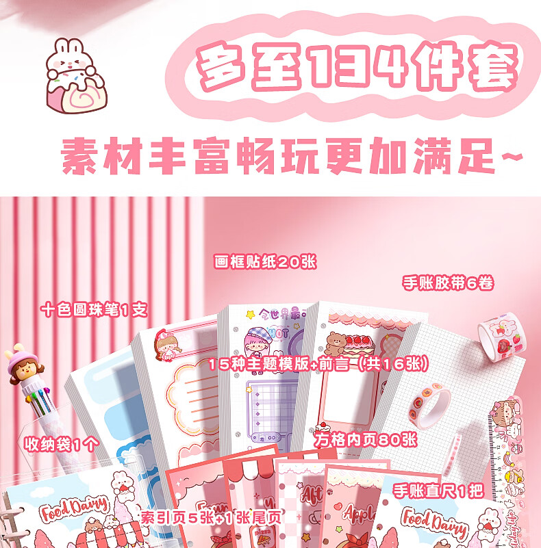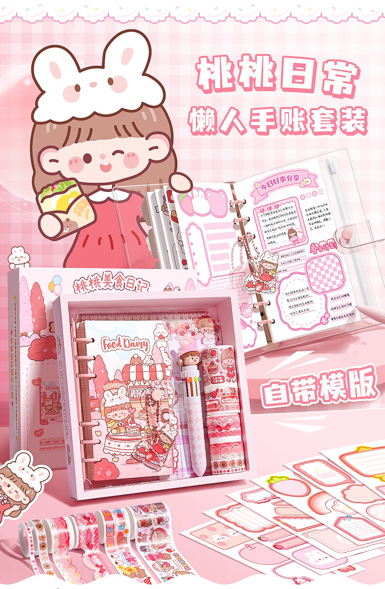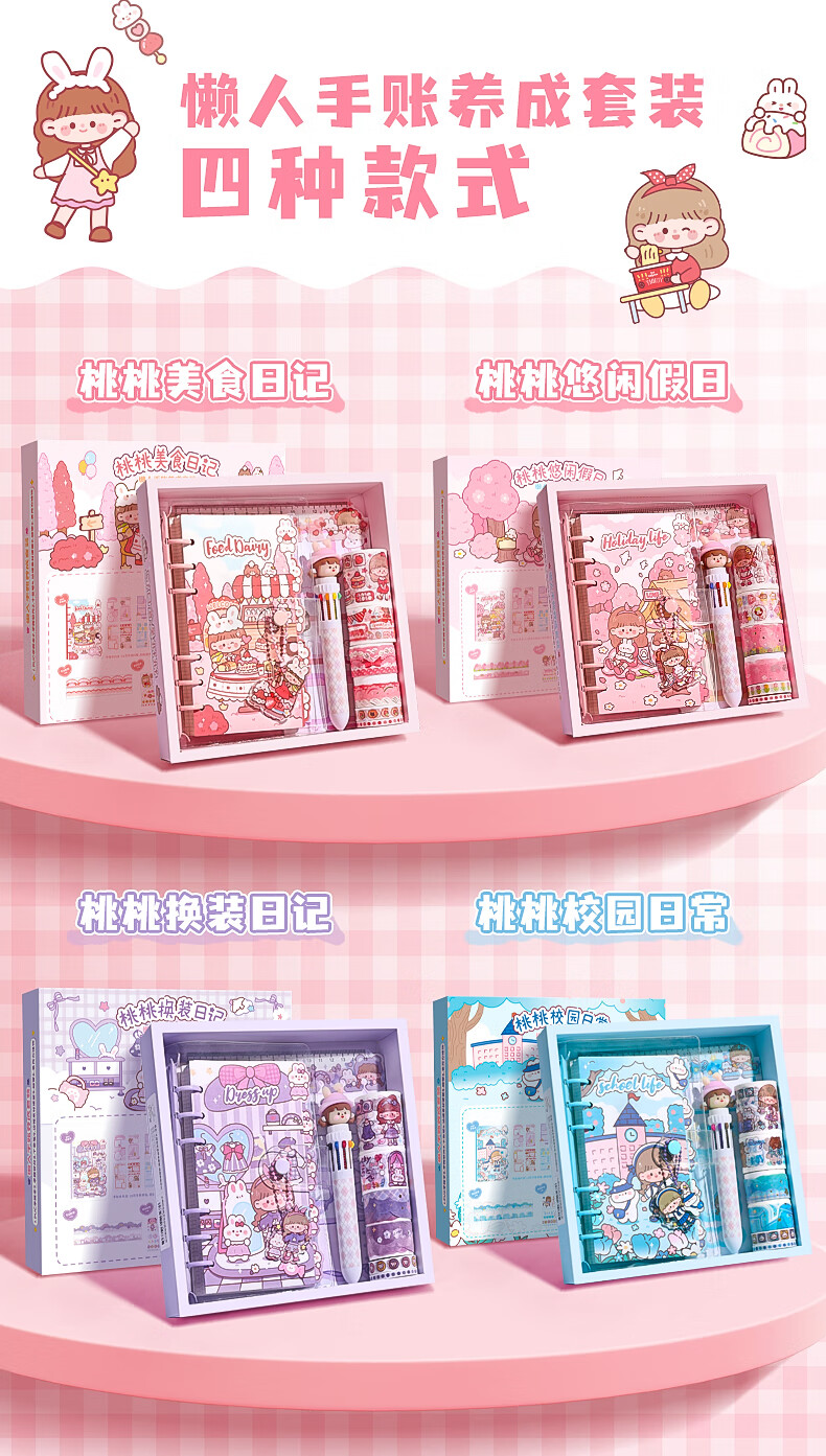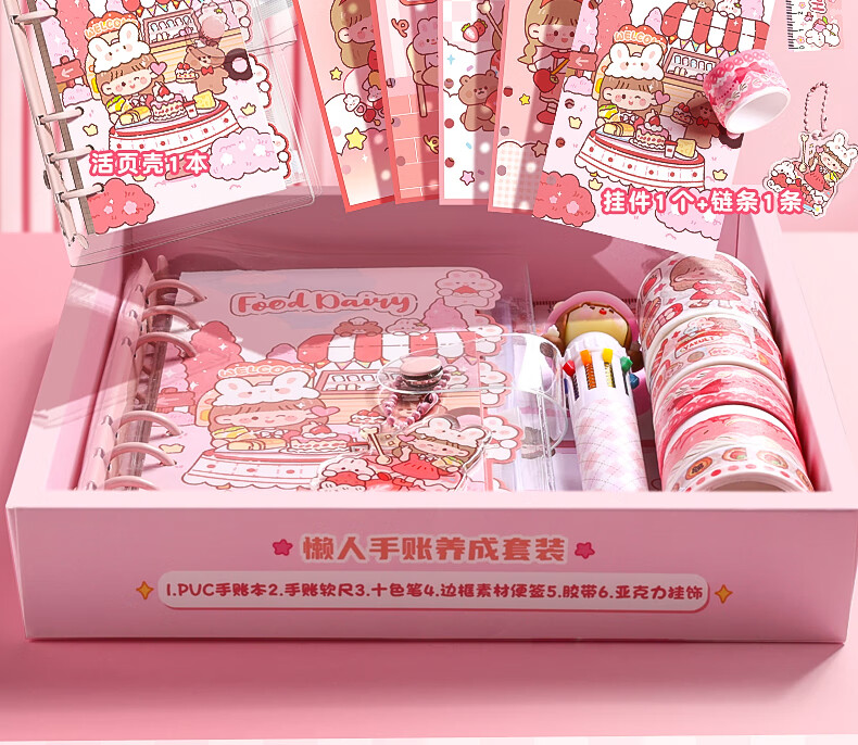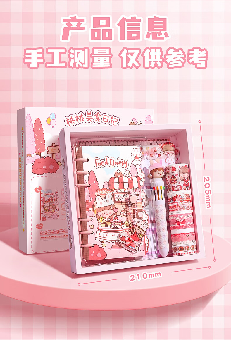 咔巴熊 可爱手帐礼盒套装 女孩儿童高颜值礼盒笔记本礼包生日礼物伴手礼物 桃桃美食日记