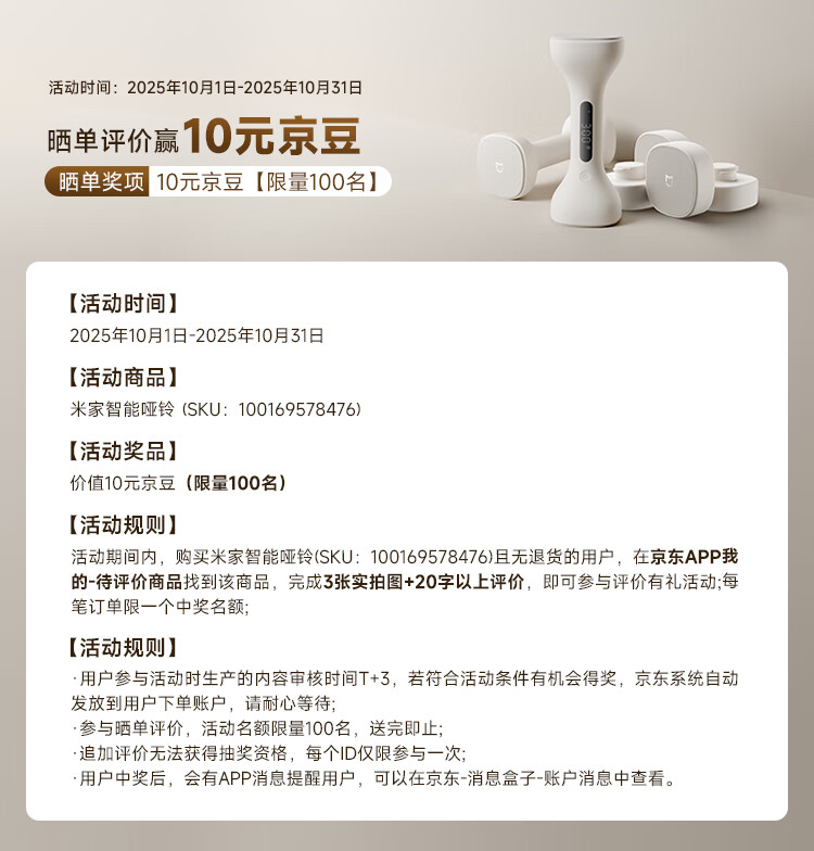 米家(MIJIA)智能哑铃 男女家用家庭健身肌肉塑形手臂轻重量浅沙色 1kg*2