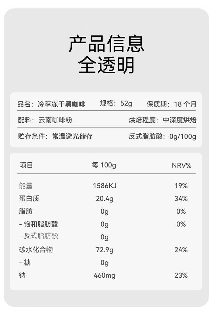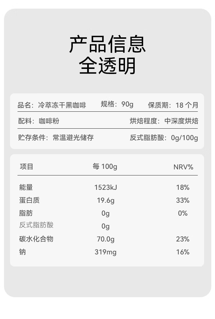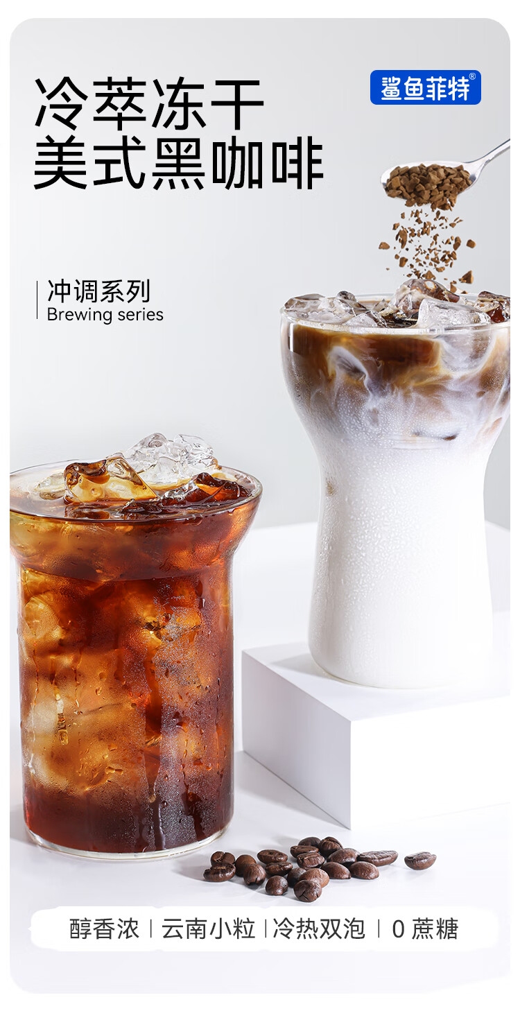 鲨鱼菲特冷萃冻干黑咖啡健身减0脂0蔗糖速溶美式咖啡粉 【冷萃醇香】90g*1罐