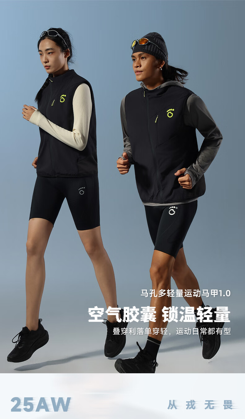 马孔多(macondo)原创单品|25新跑步轻量运动马甲空气胶囊锁温吸湿 黑色 L