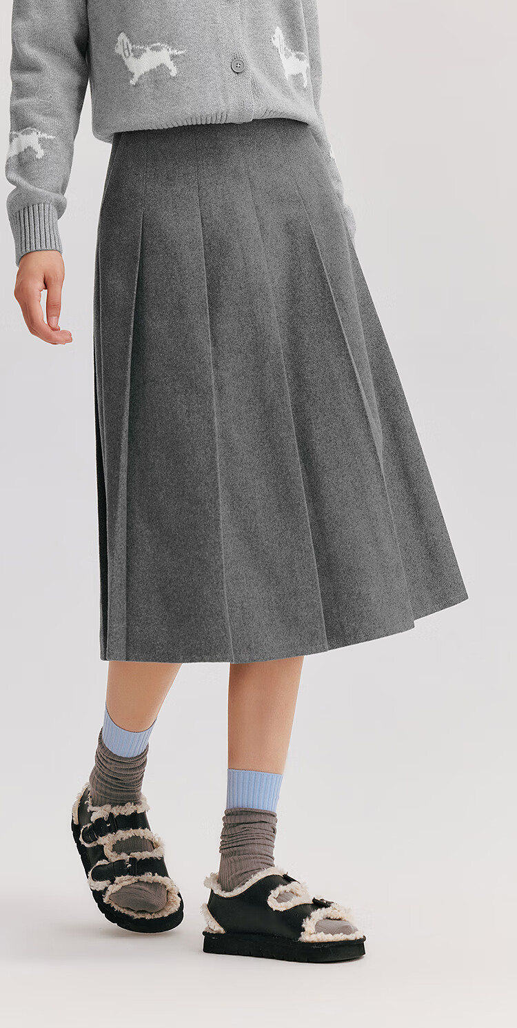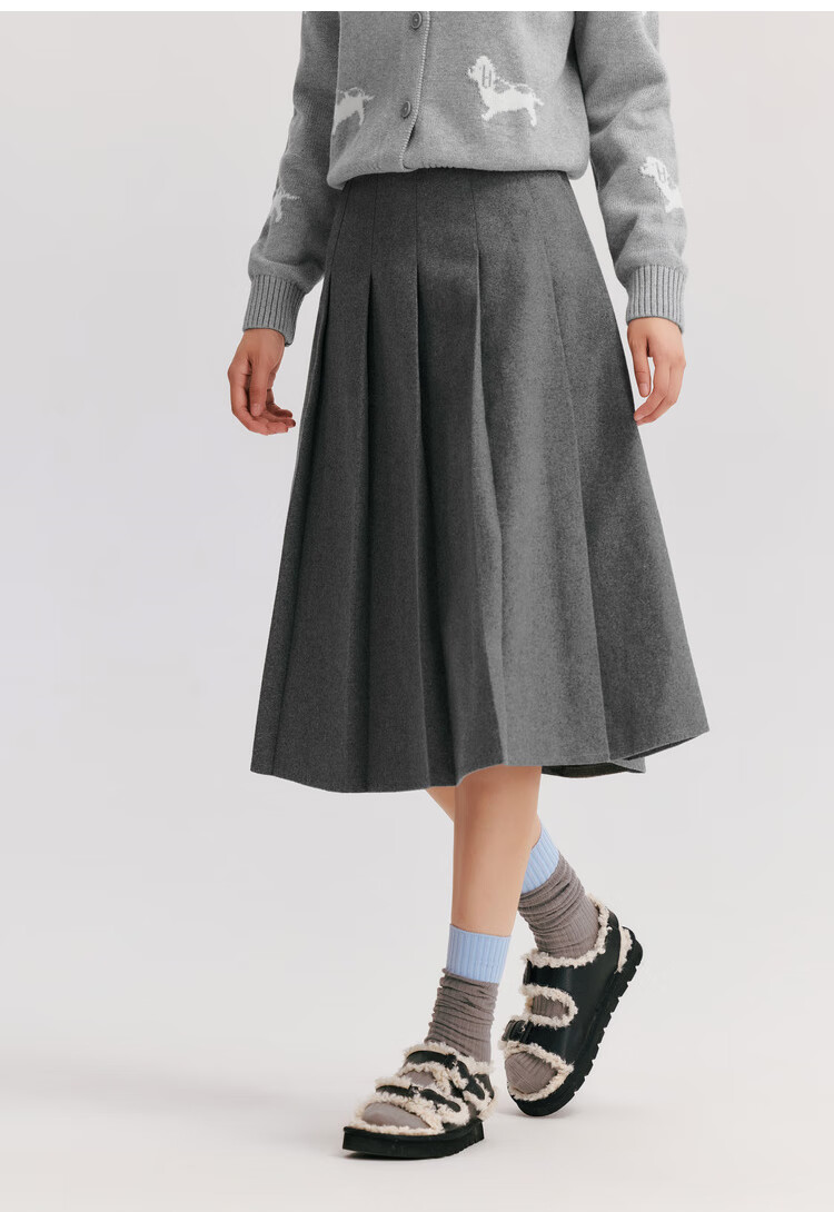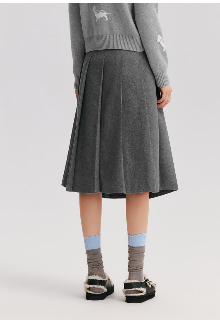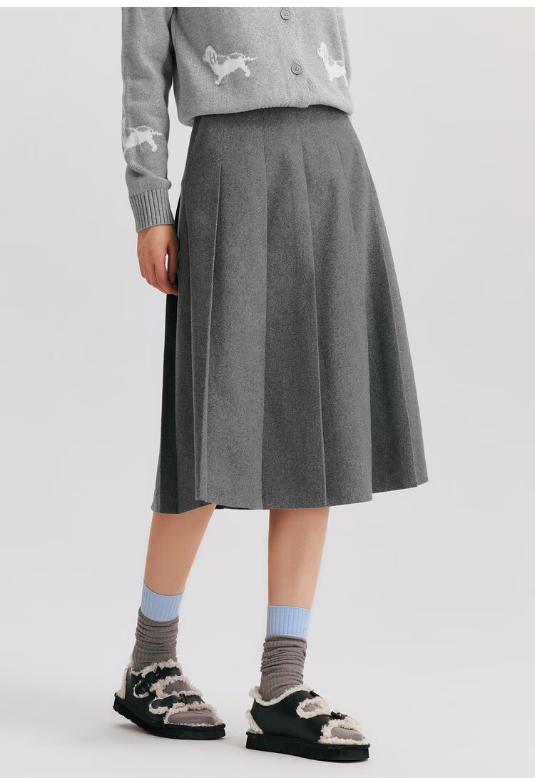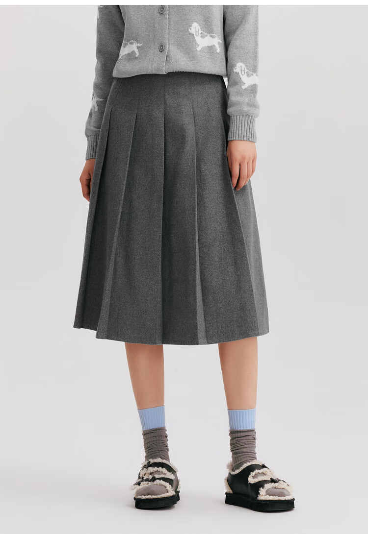 森马(Semir)森马半身裙女仿毛呢裙子24冬新款A字百褶裙遮胯显瘦109724120001