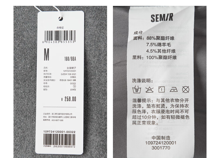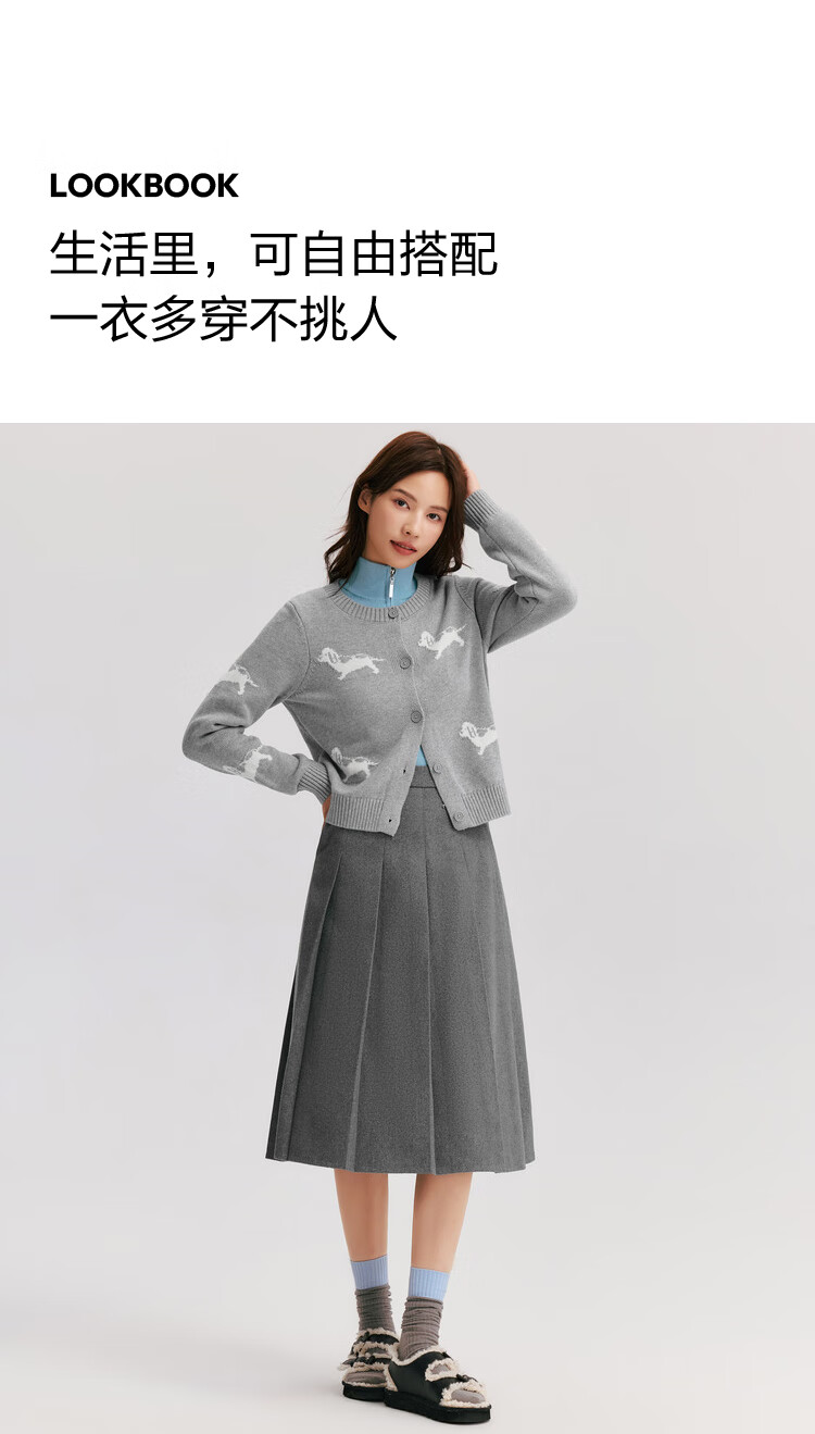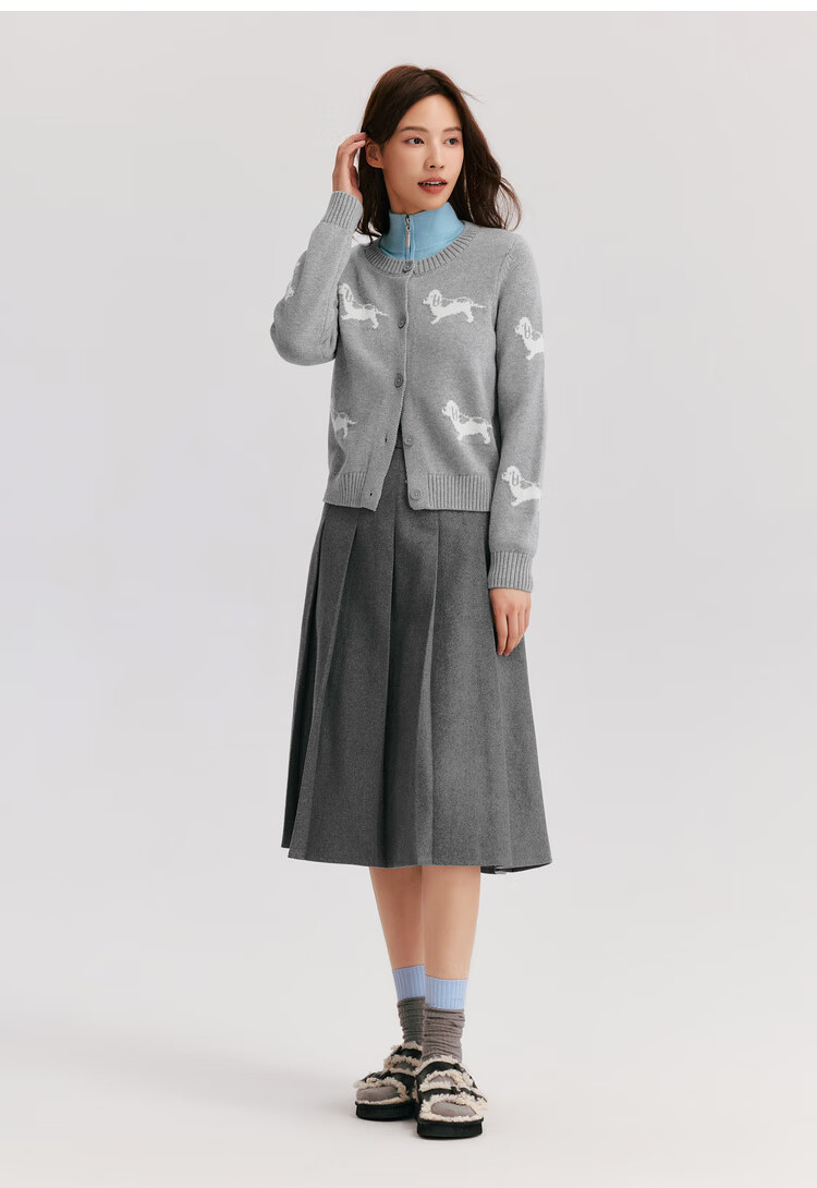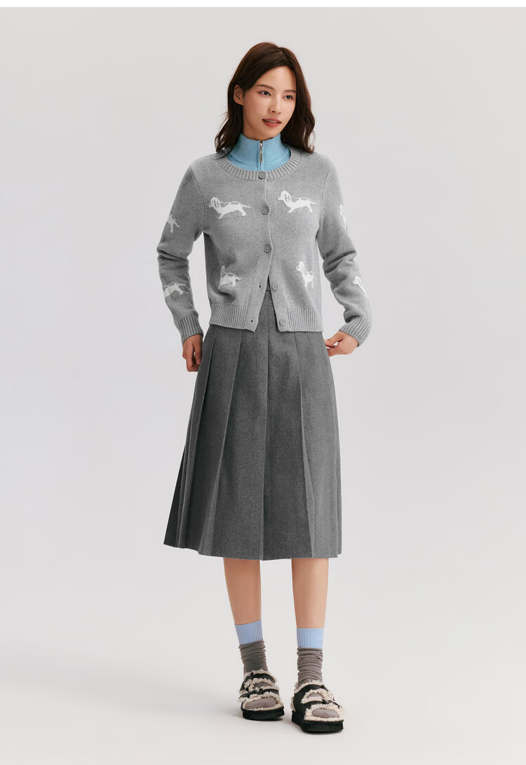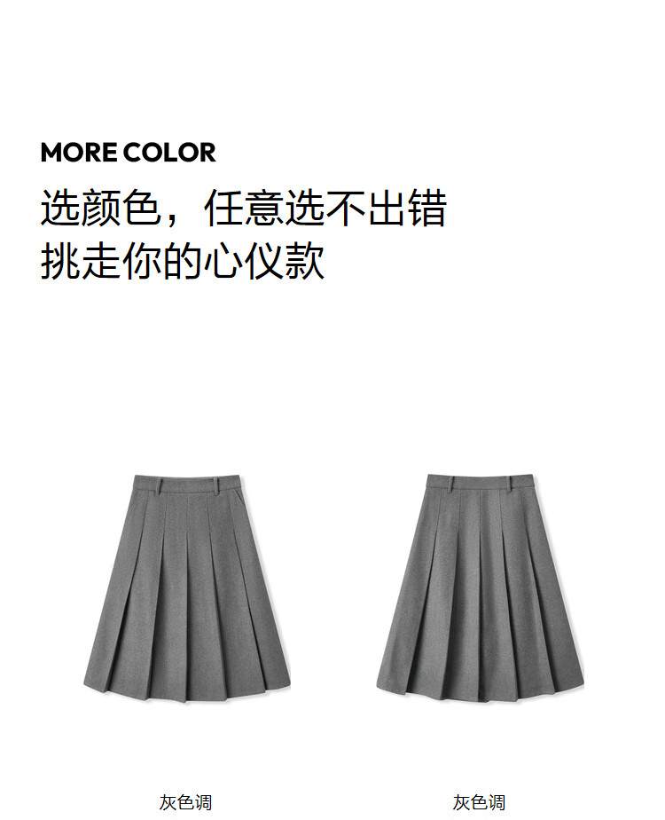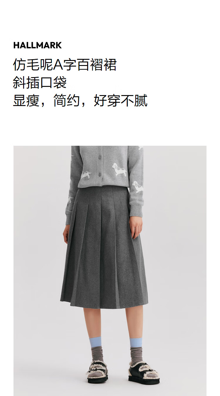 森马(Semir)森马半身裙女仿毛呢裙子24冬新款A字百褶裙遮胯显瘦109724120001