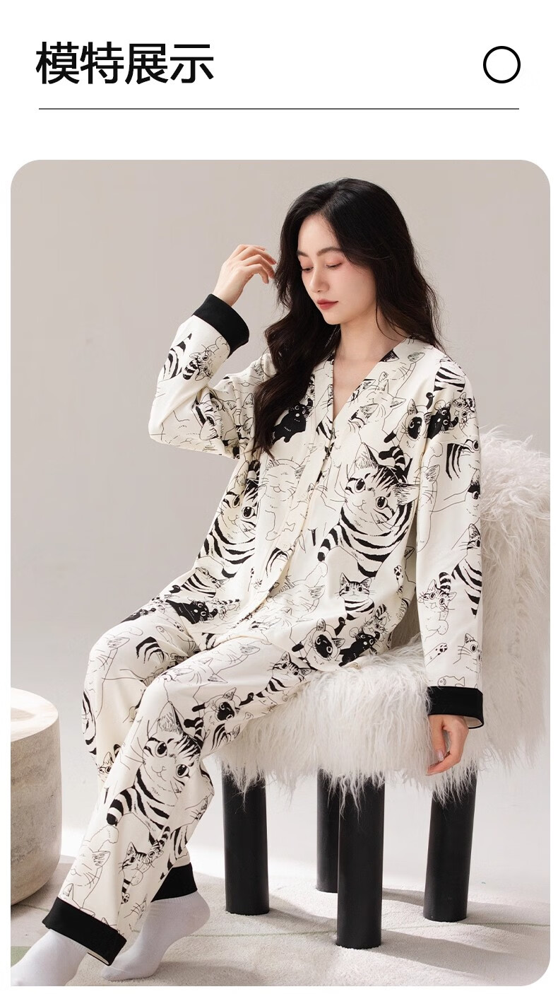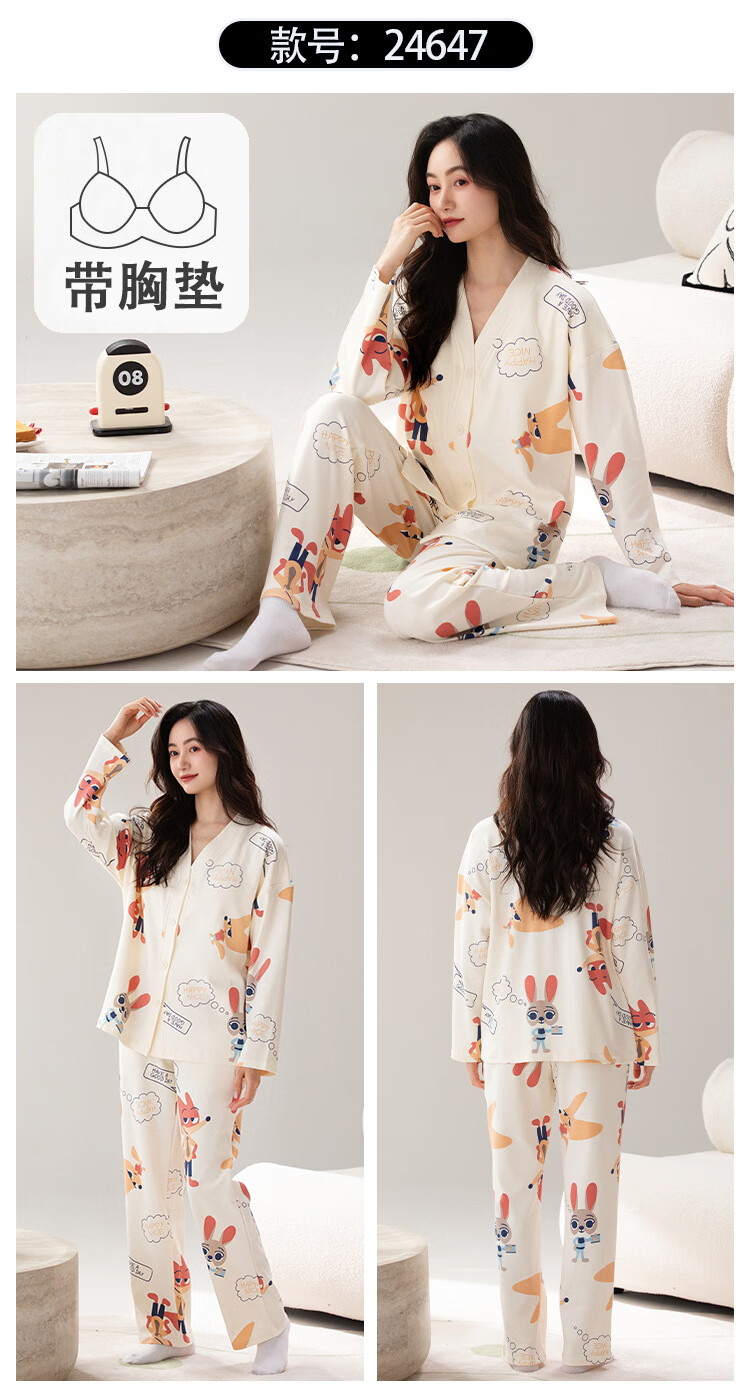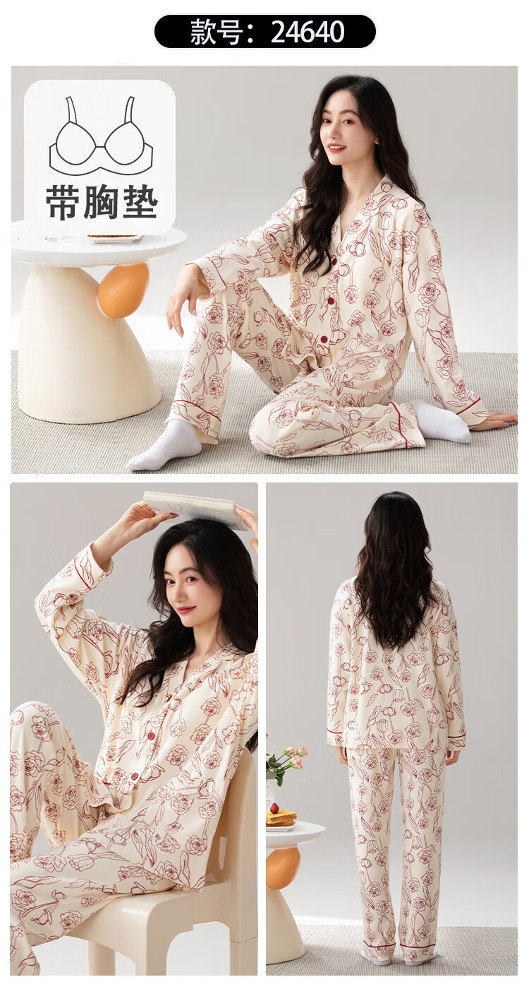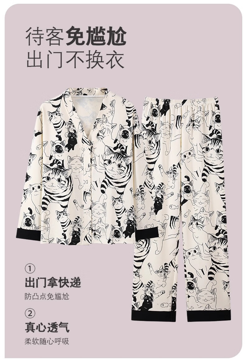 雅鹿睡衣女士带胸垫家居服套装长袖长裤春秋季薄款和服领开衫可外穿 H2282帕恰狗(带胸垫) XL 【建议110-130斤】