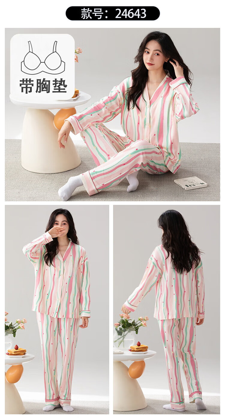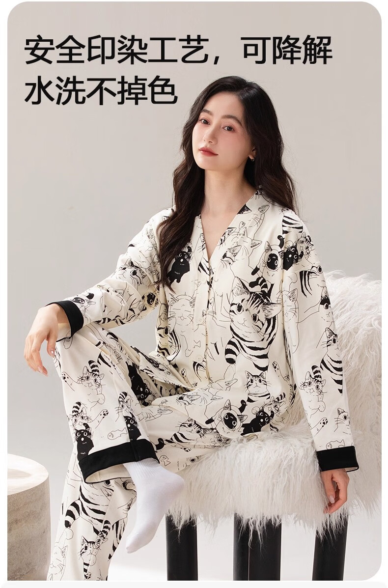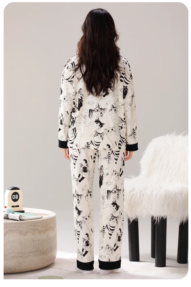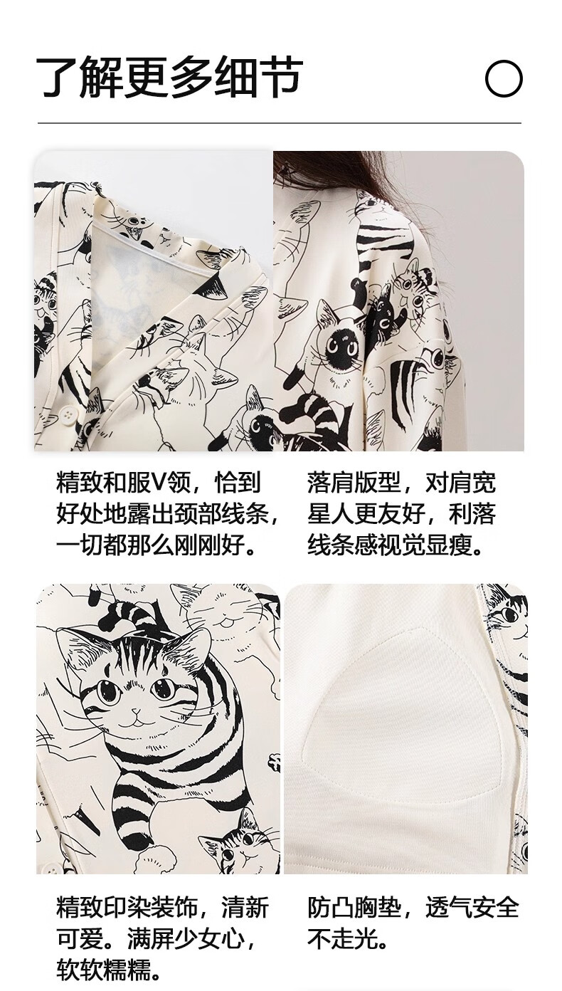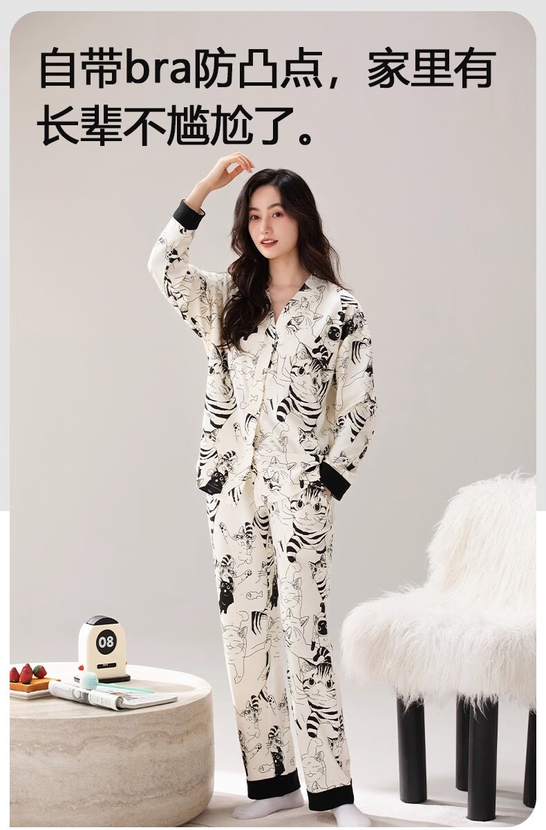 雅鹿睡衣女士带胸垫家居服套装长袖长裤春秋季薄款和服领开衫可外穿 H2282帕恰狗(带胸垫) XL 【建议110-130斤】