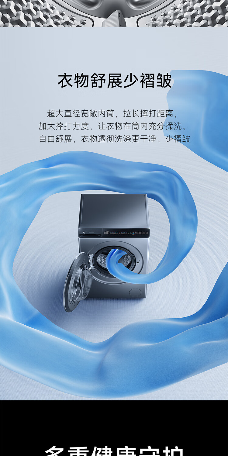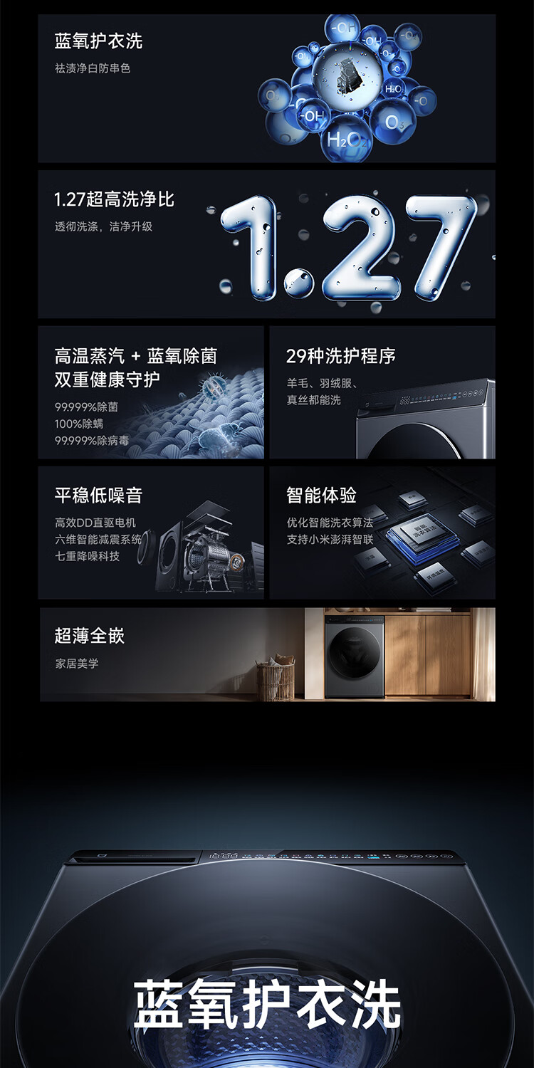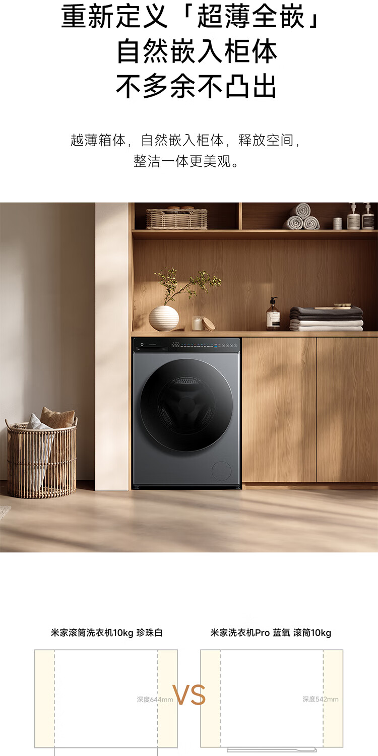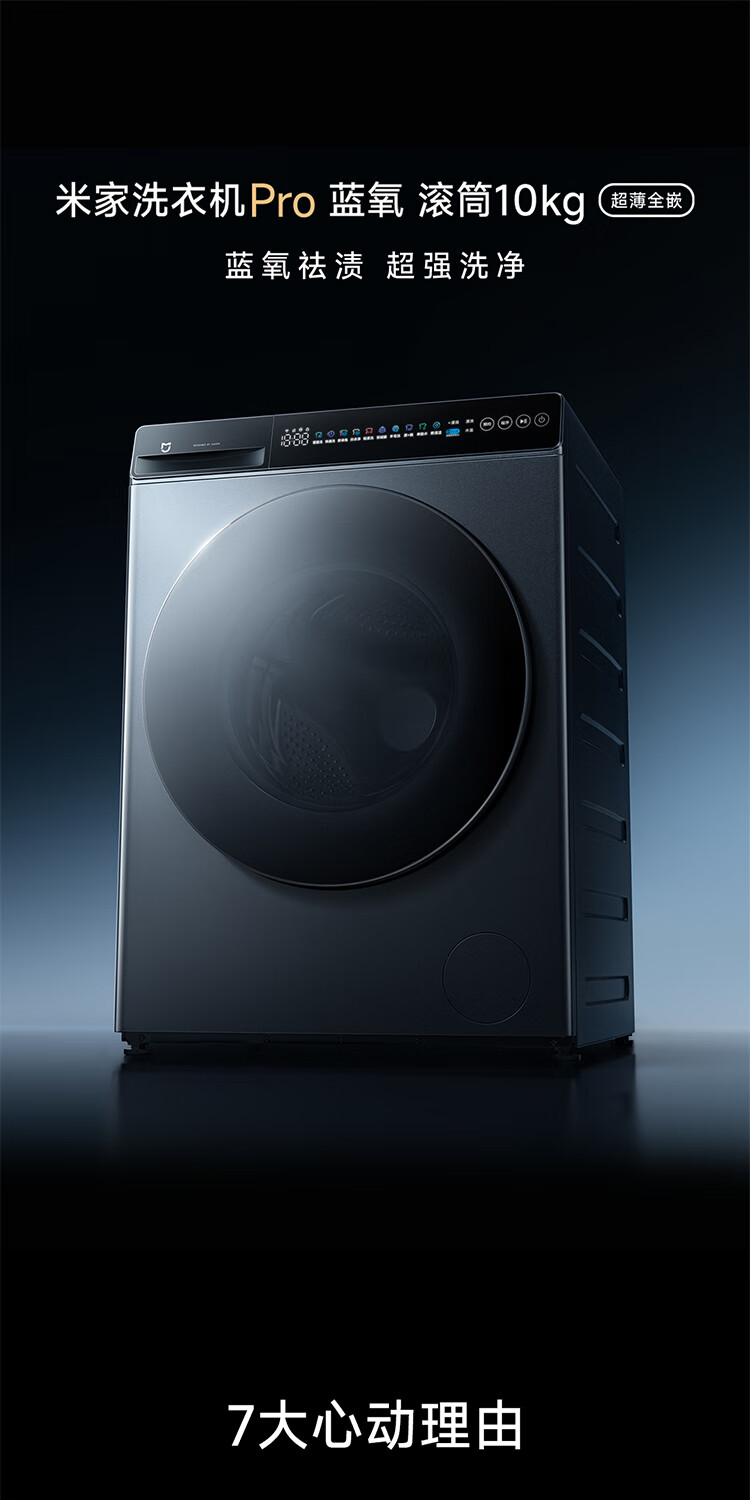 米家滚筒洗衣机 小米10KG蓝氧Pro滚筒 全自动蓝氧护衣洗超薄机身超大筒径 1.27高洗净比 XQG100MJ110