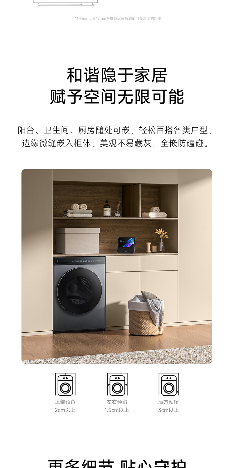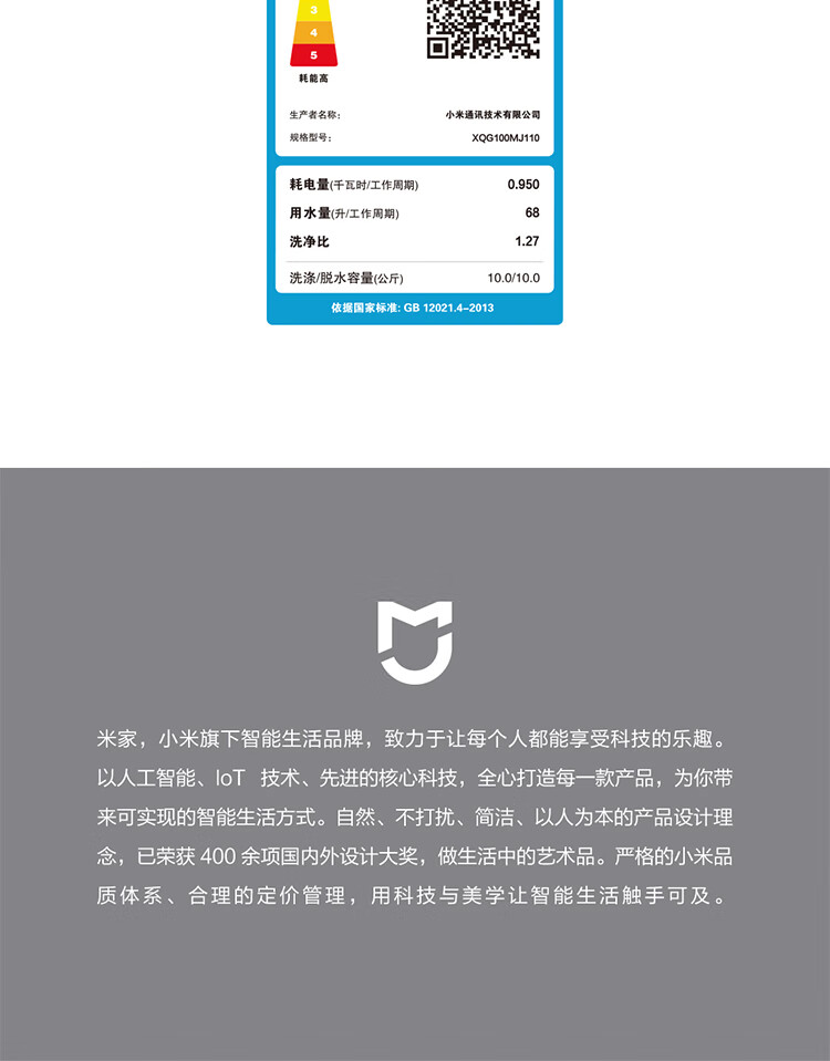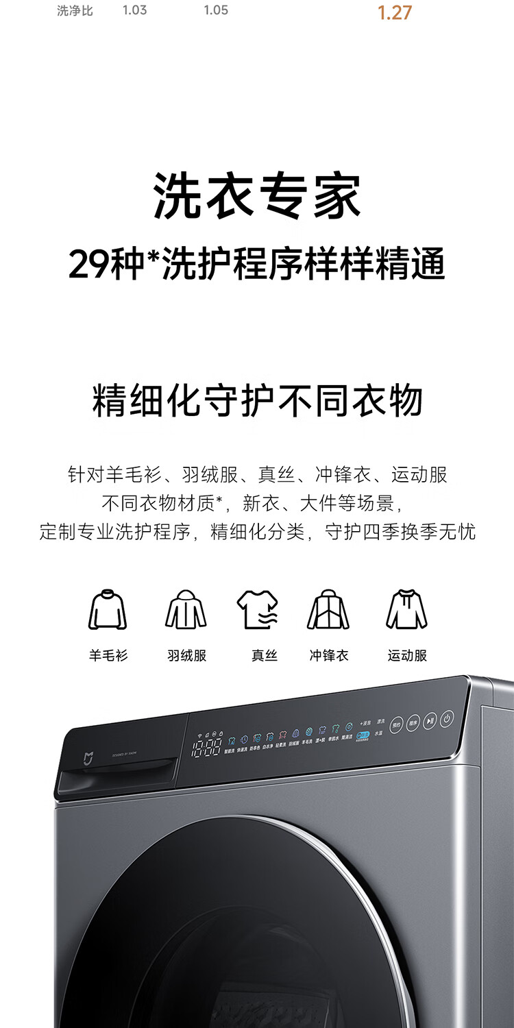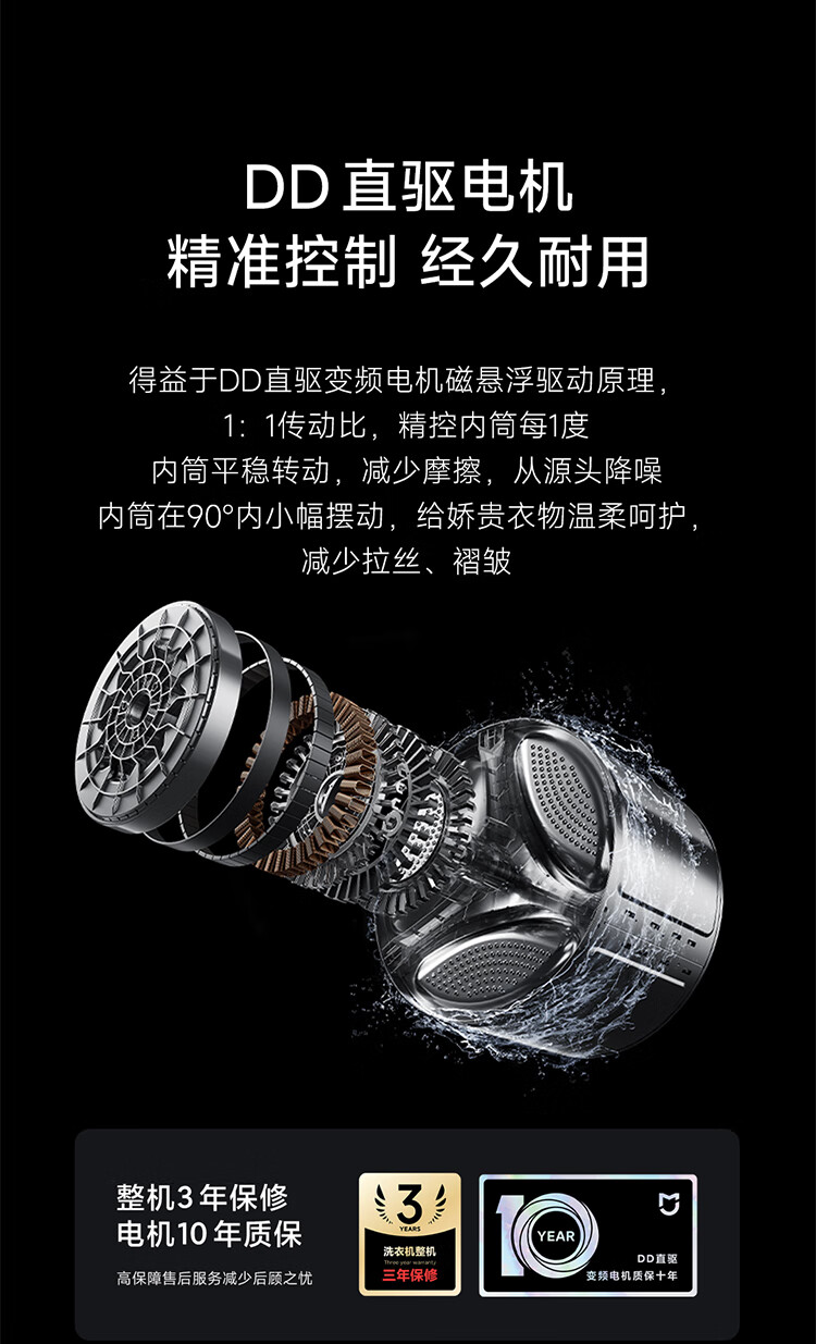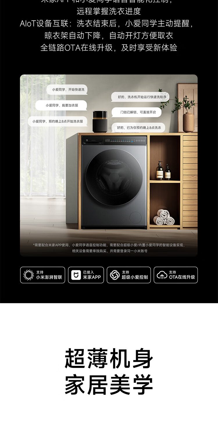 米家滚筒洗衣机 小米10KG蓝氧Pro滚筒 全自动蓝氧护衣洗超薄机身超大筒径 1.27高洗净比 XQG100MJ110