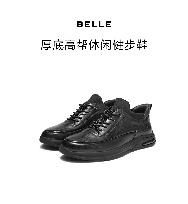 百丽(Belle)男鞋高帮休闲皮鞋2025冬季商场款黑色板鞋厚底运动鞋加绒8VX01DM5 黑色-单里 41 (255mm)