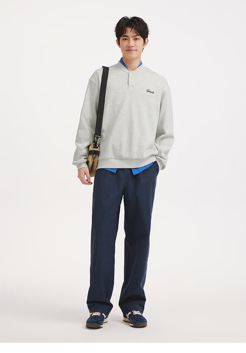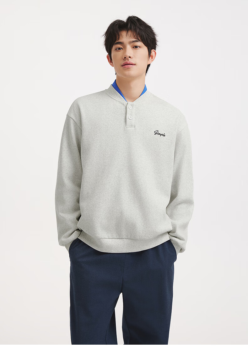 热风(Hotwind)【商场同款】男士卫衣2025年冬季新款男士肌理时尚亨利领卫衣 09灰色 S