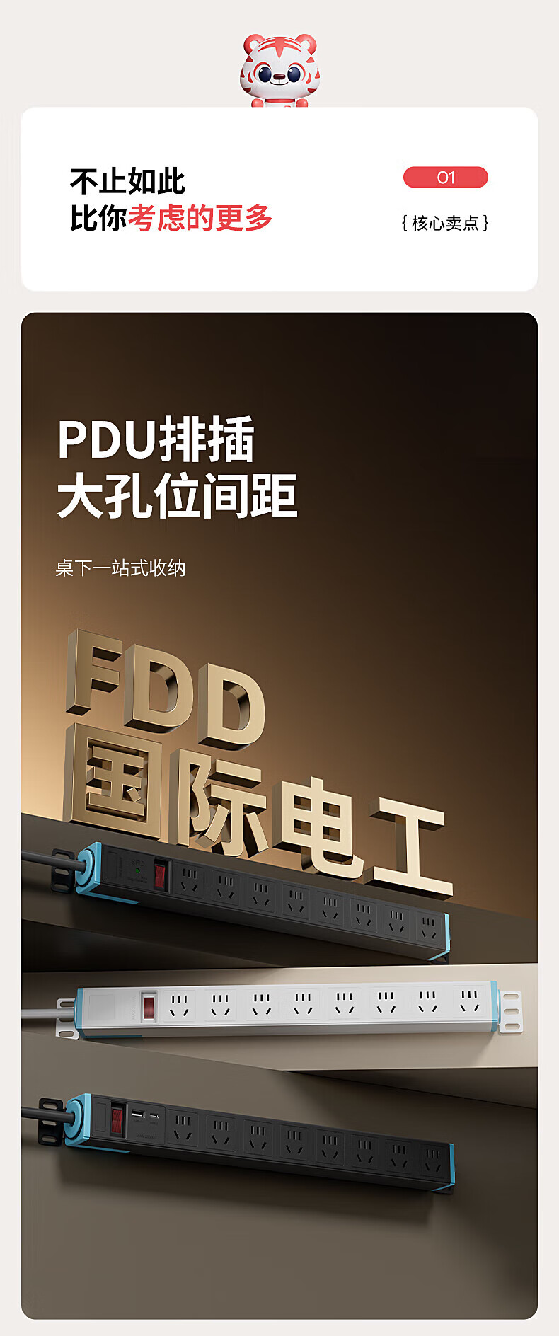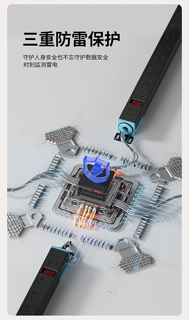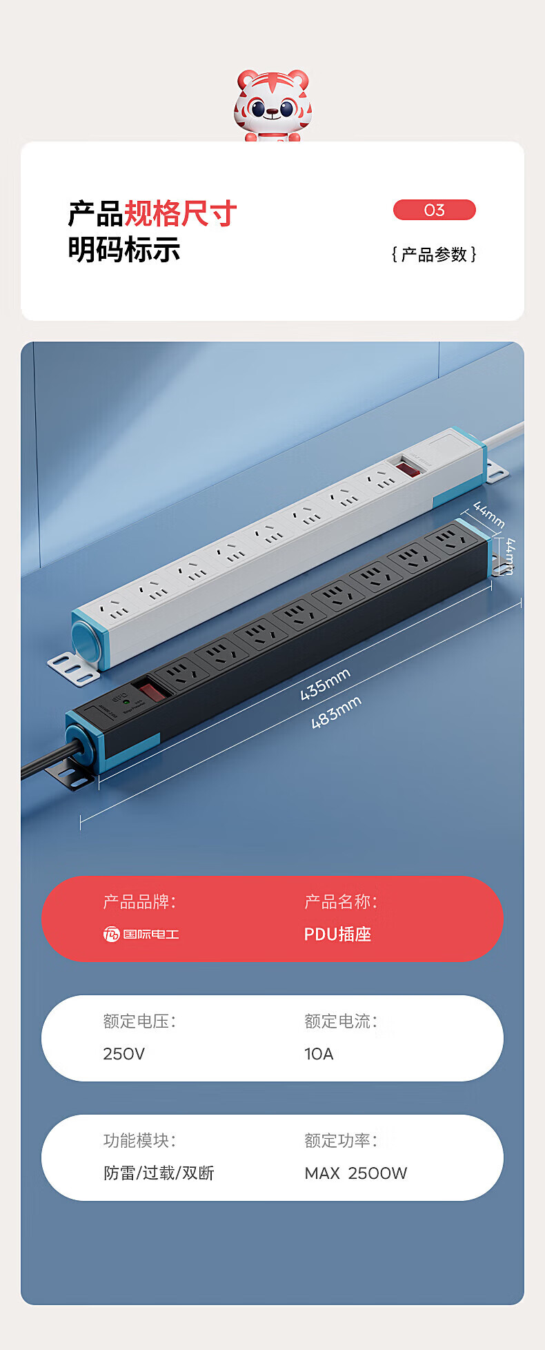 国际电工PDU桌面排插机柜插座机房防过载桌下六位五孔电源防雷电竞带线接线板工业插排 黑色六位五孔总控-无线【普通单段】