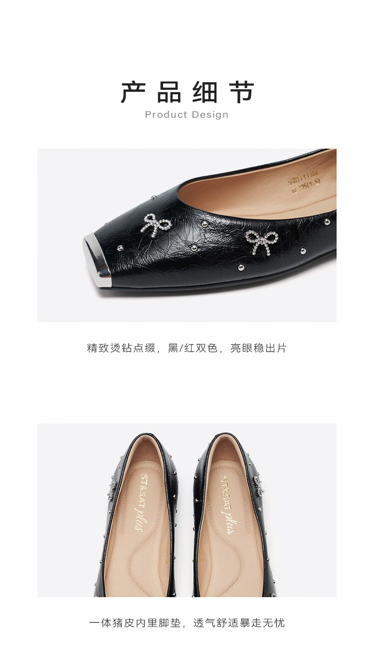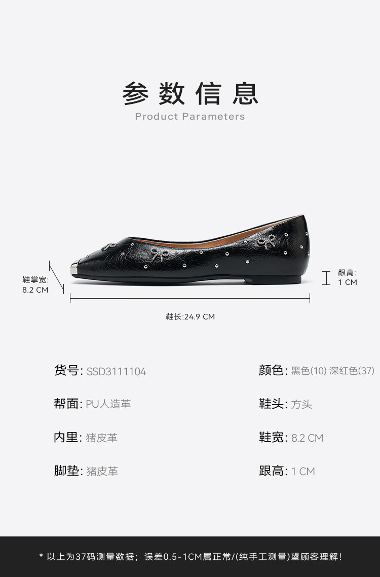 星期六复古式一脚蹬2025夏款休闲通勤裙子百搭浅口单鞋SSD3111104 深红色 36