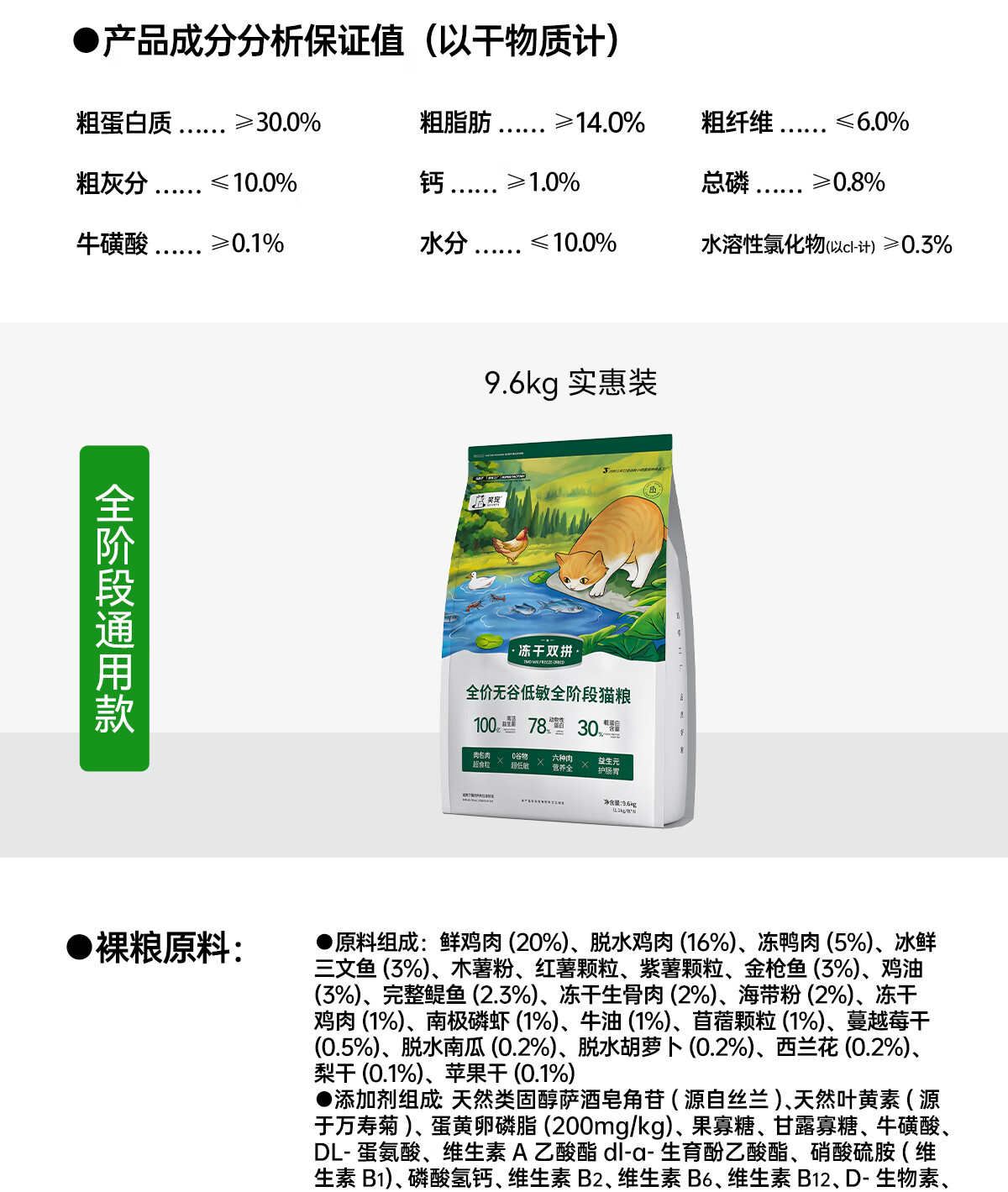 笑宠冻干双拼无谷低敏猫粮成猫幼猫鲜肉粮官方 9.6kg