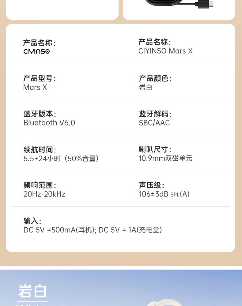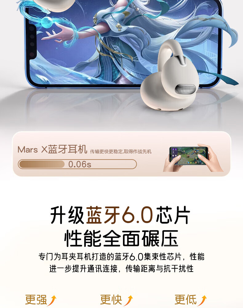 瓷音未来Mars X耳夹开放式真无线蓝牙耳机骨传导概念HiFi音质挂耳运动跑步通话降噪Pro适用于苹果安卓 云岩白