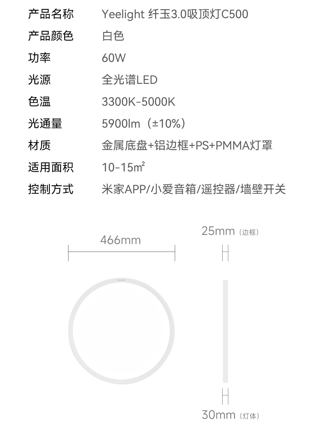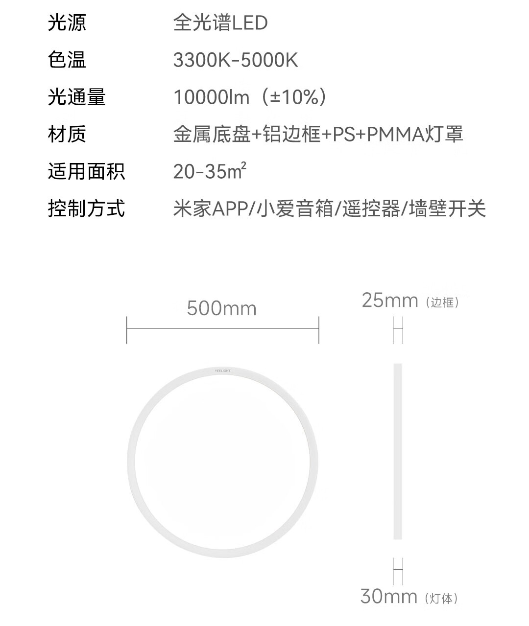 Yeelight易来led全光谱护眼吸顶灯简约客厅卧室已接入米家灯具纤玉3.0主卧