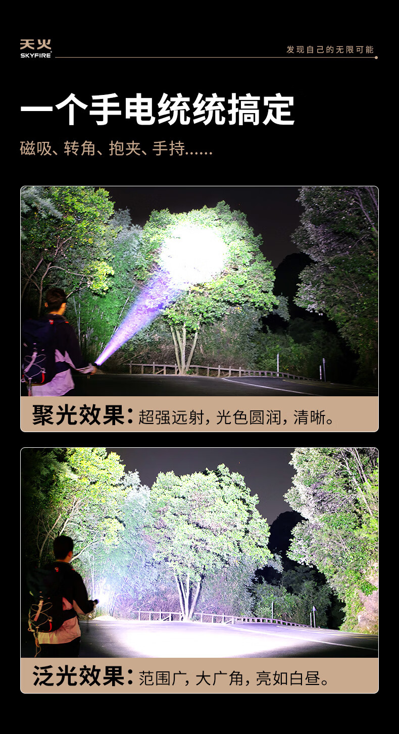 天火(SkyFire)【TOP1】苍龙二代强光手电筒防水便携变焦远射长续航户外防爆应急 5000毫安【苍龙二代】应急-防爆-抗摔