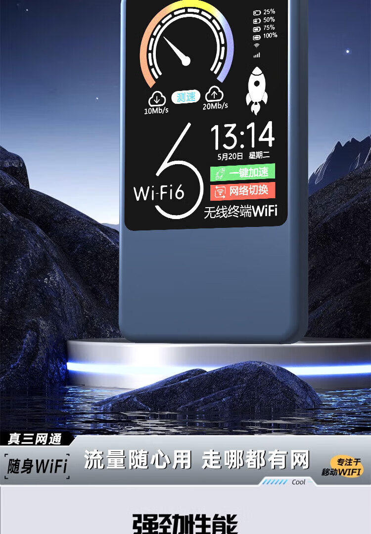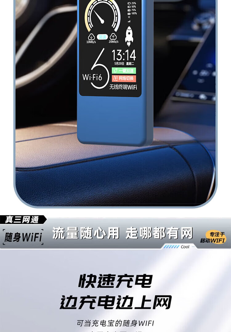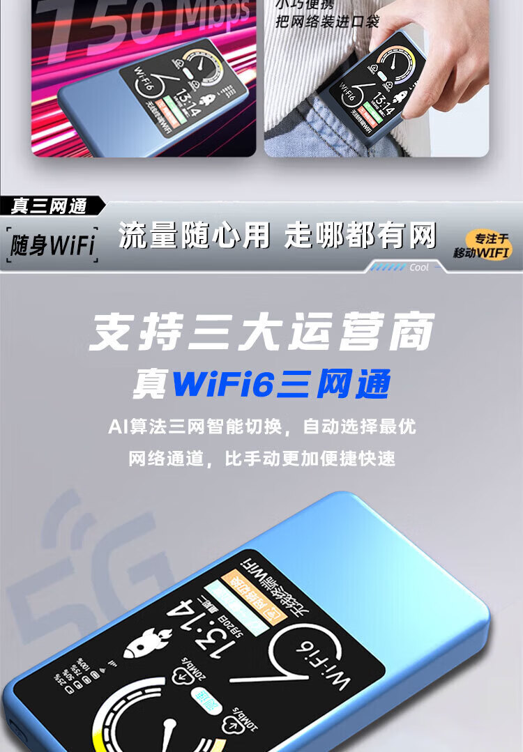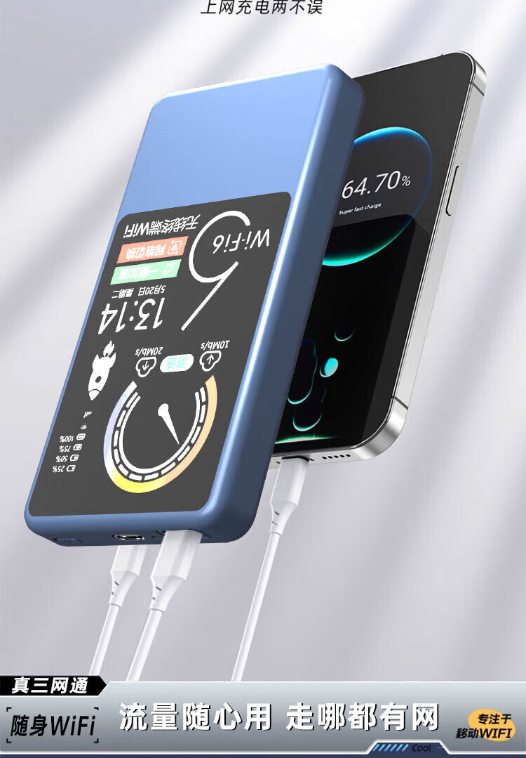 火萌随身wifi移动无线热点网络设备路由器无限流量Wi-Fi6随行路由器便携5ghz无限流量2025款全国通用 【1万毫安可充电-蓝】-72小时续航5Ghz