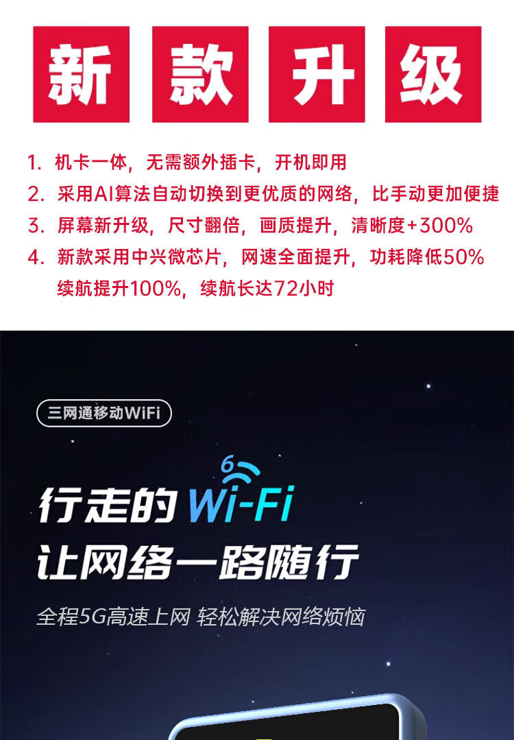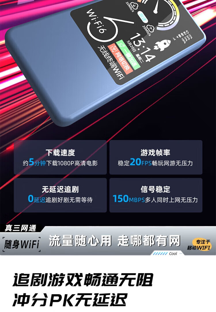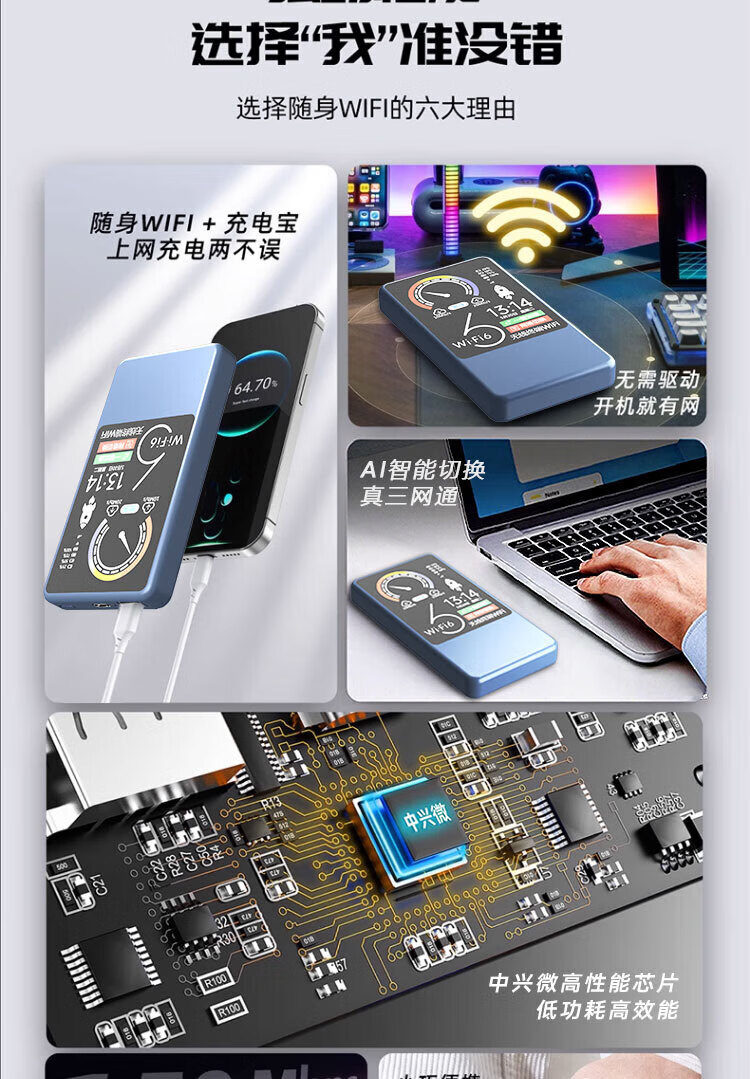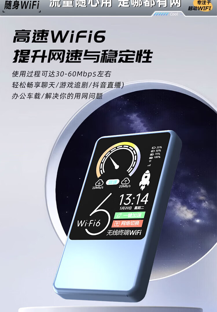 火萌随身wifi移动无线热点网络设备路由器无限流量Wi-Fi6随行路由器便携5ghz无限流量2025款全国通用 【1万毫安可充电-蓝】-72小时续航5Ghz