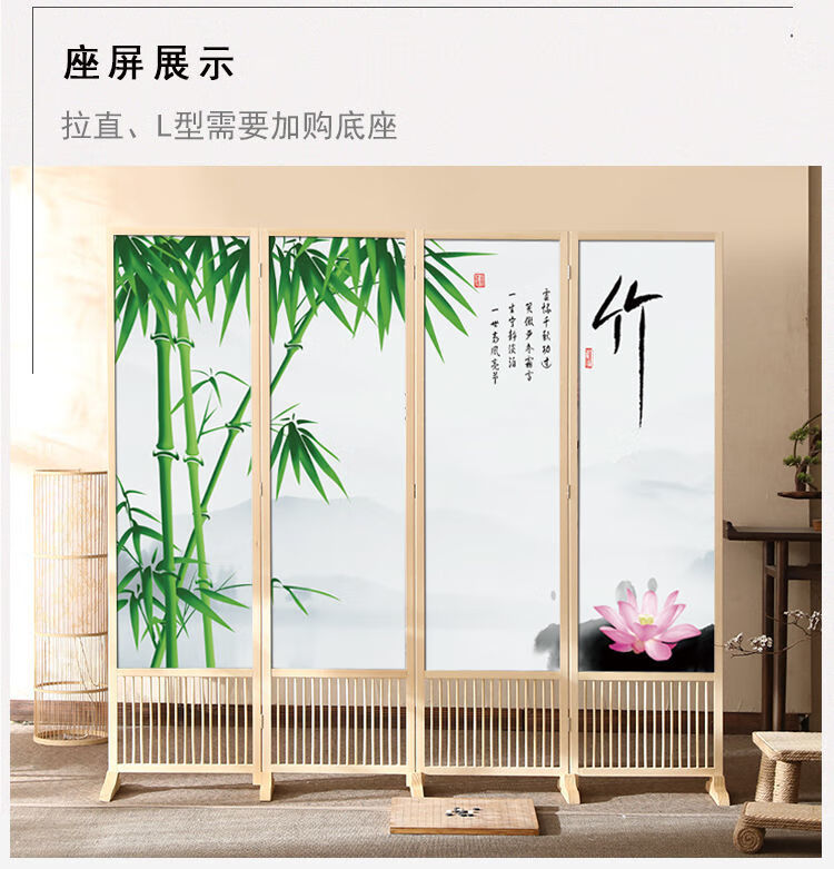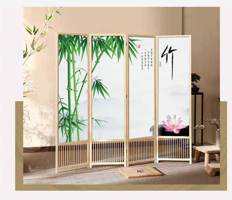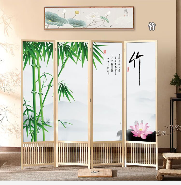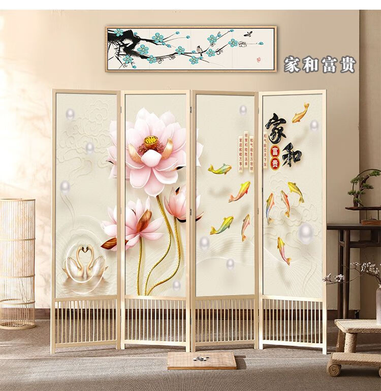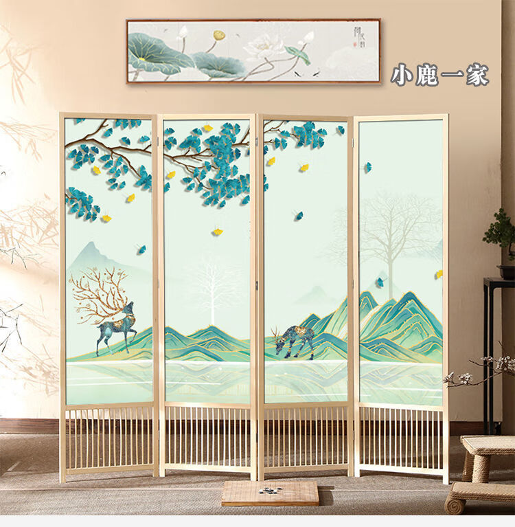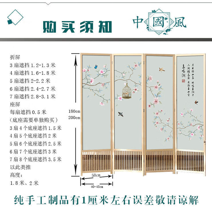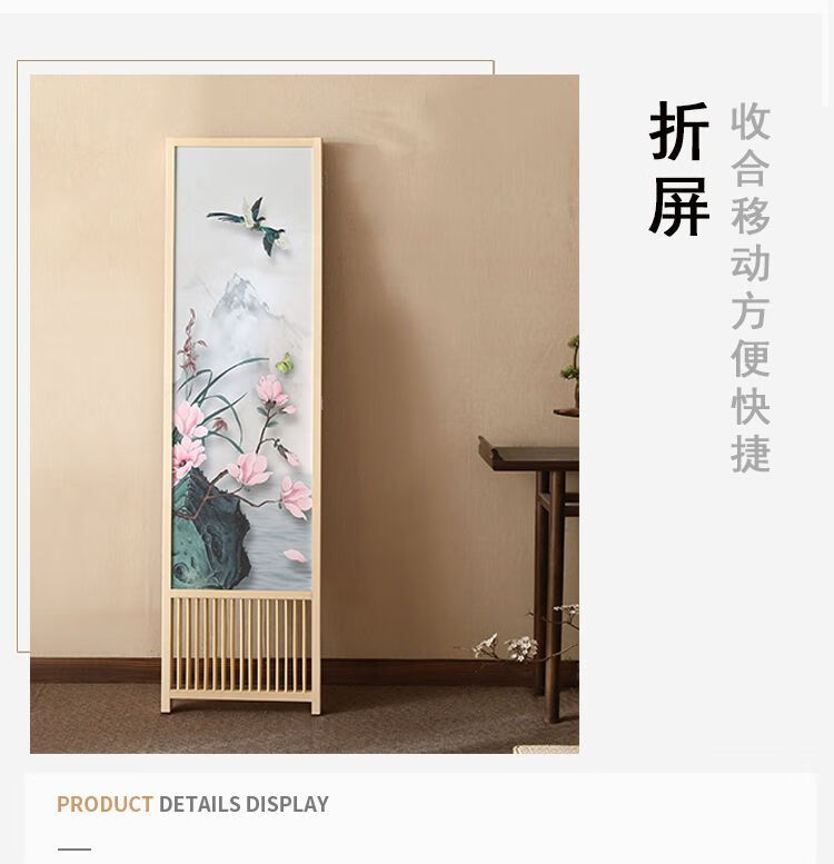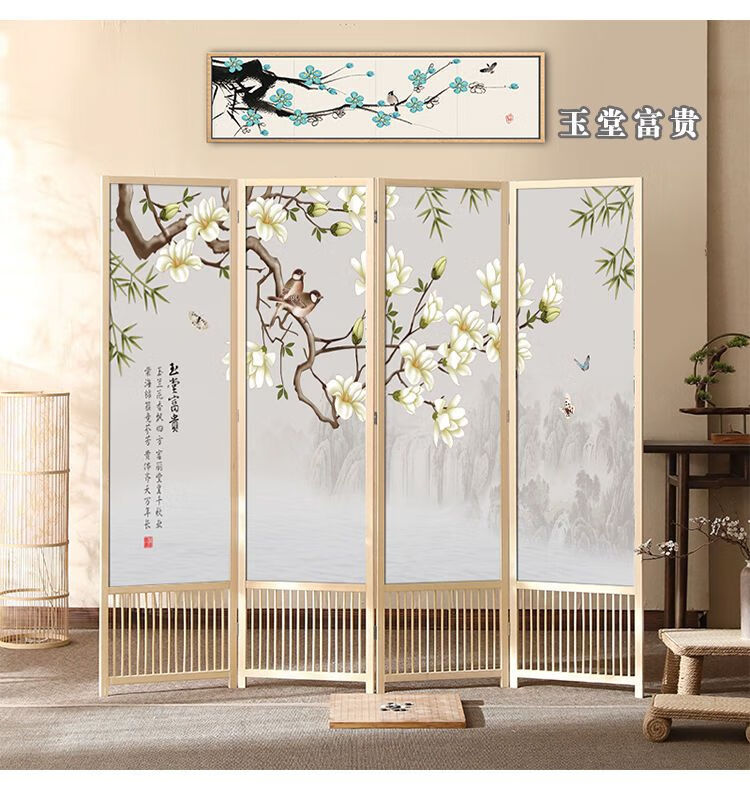 倘然之家实木屏风隔断现代简约家用折叠移动客厅卧室书房遮挡屏酒店办公室 国画小鸟 1.8米高x0.48米宽*3扇