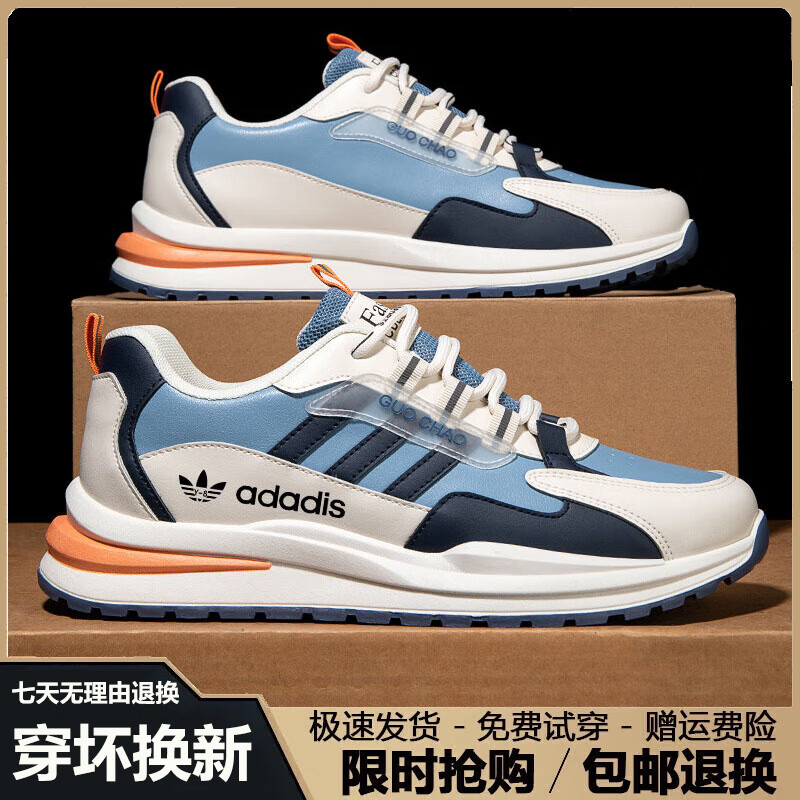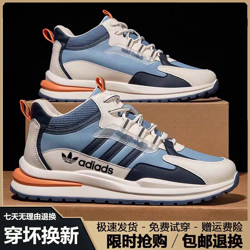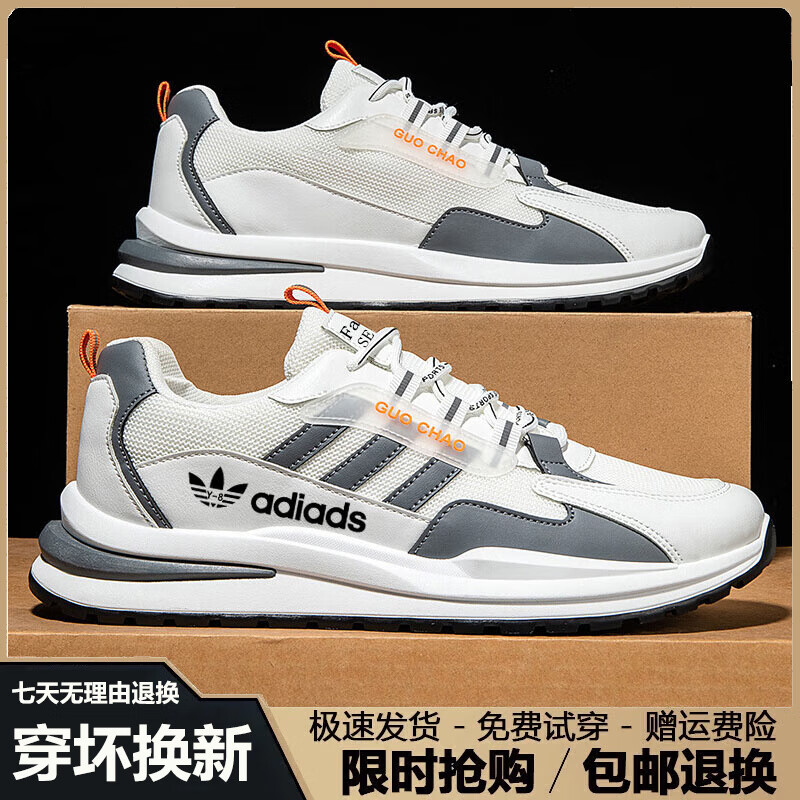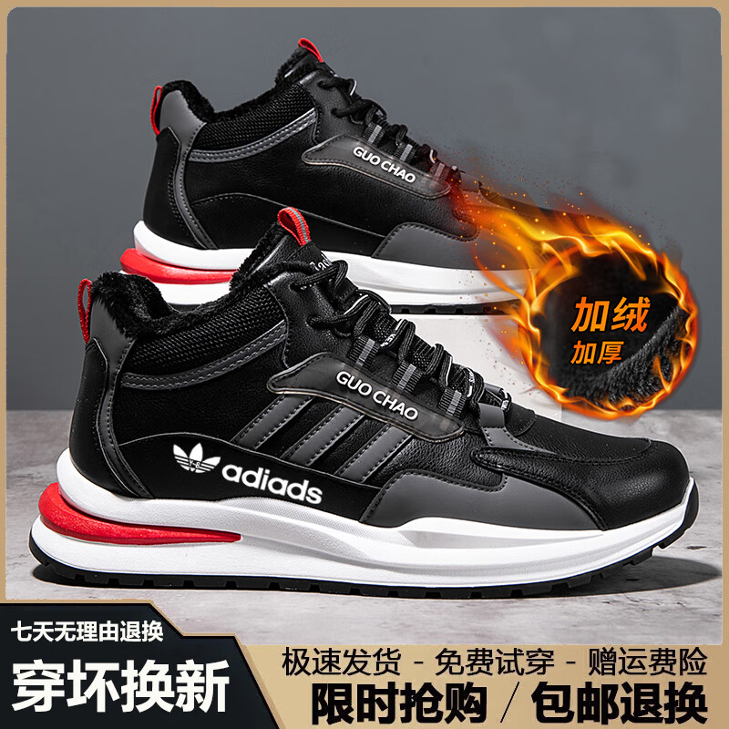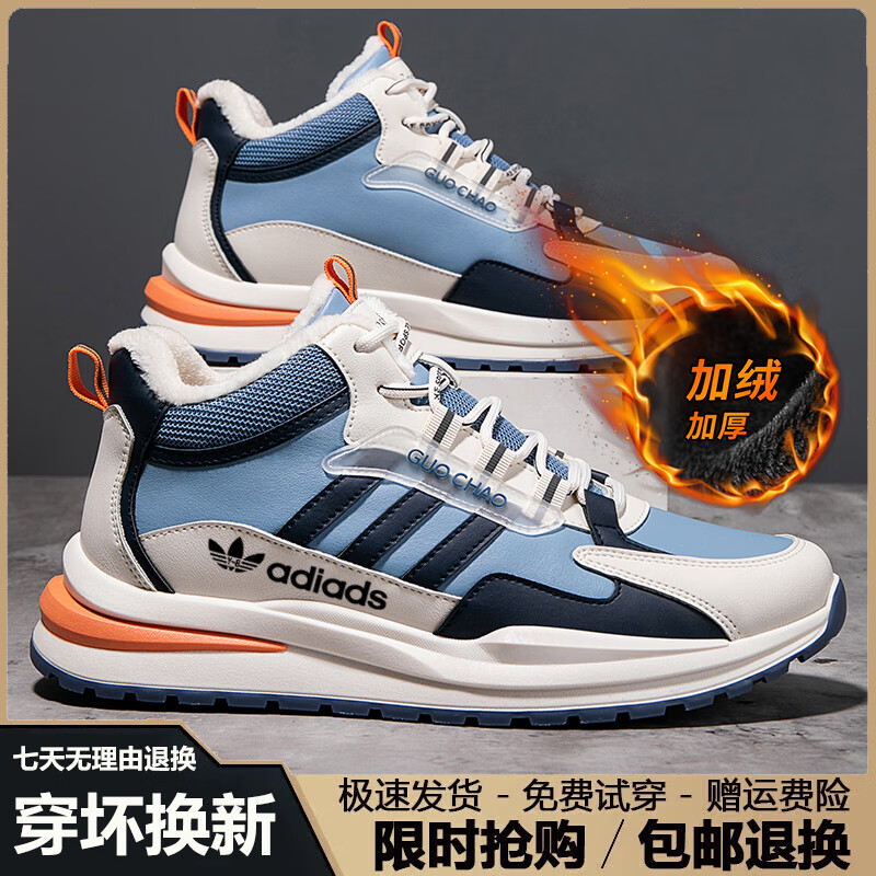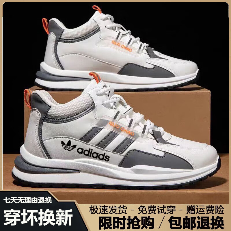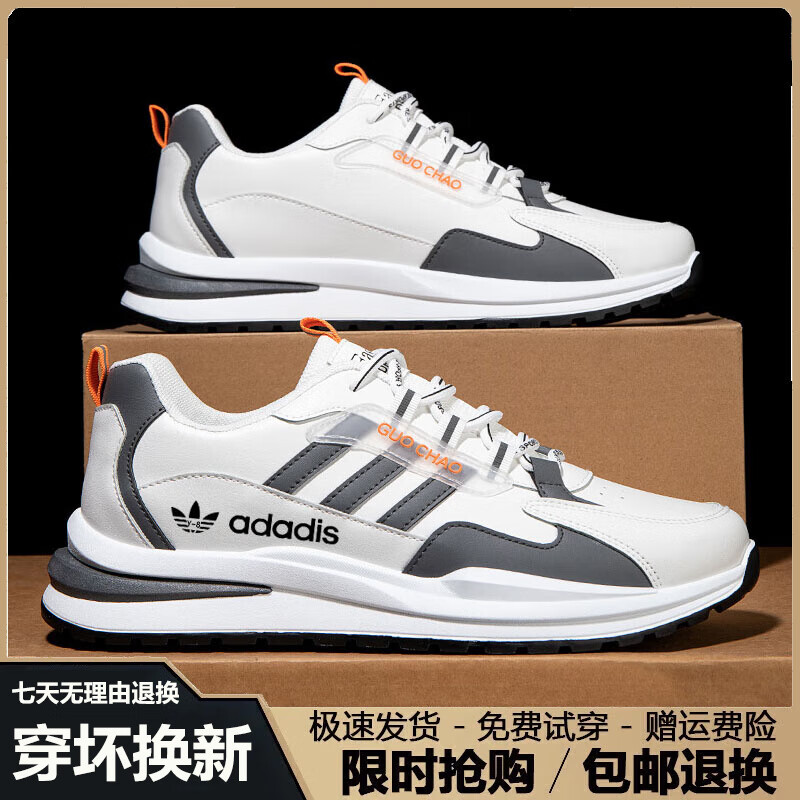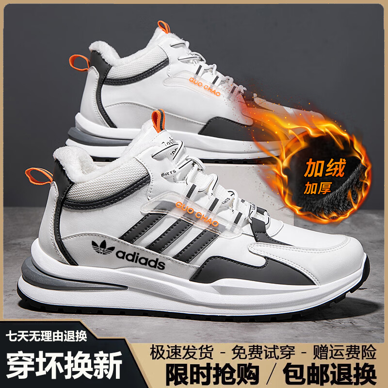 加绒棉鞋男鞋2025秋冬季新款透气休闲鞋男防滑百搭跑步运动鞋子男 AD6628白灰色【中帮皮面款】 41