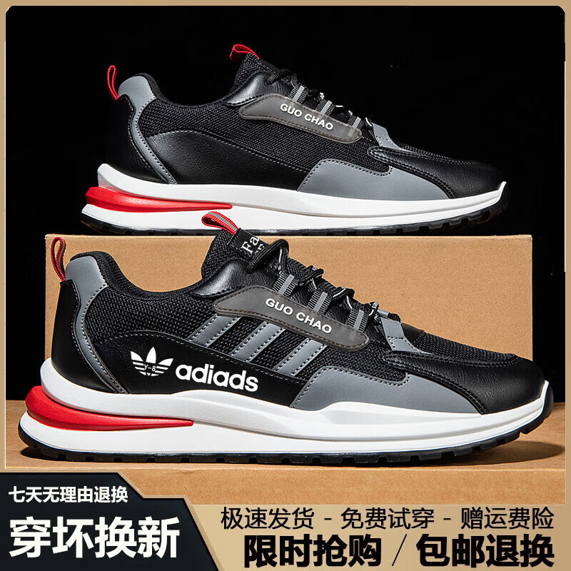 轻奢潮流男鞋2025秋季新款网面防滑潮流运动鞋男士百搭跑步鞋子男 NK666黑白【皮面款】 41