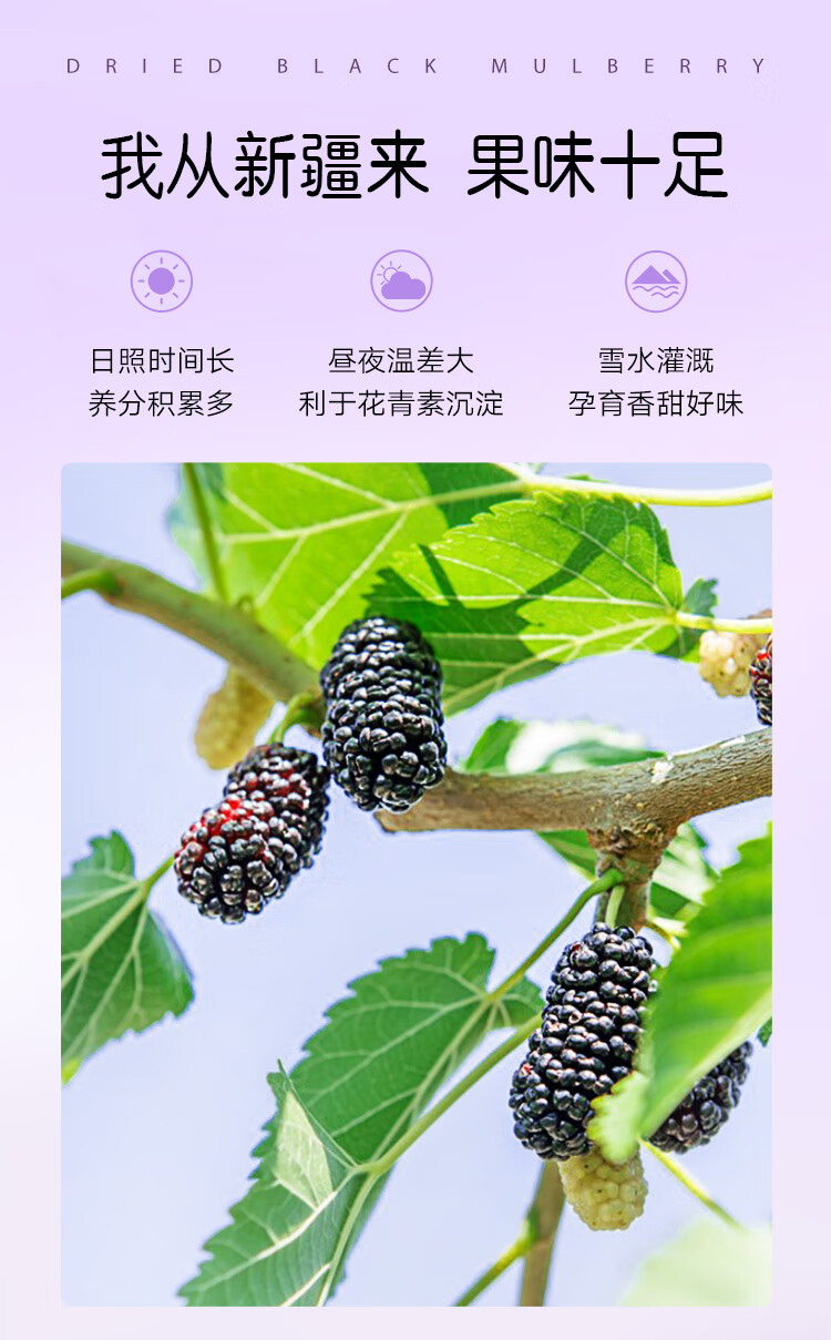 楼兰蜜语黑桑葚干400g 袋装 蜜饯果干 桑果桑椹子 无沙