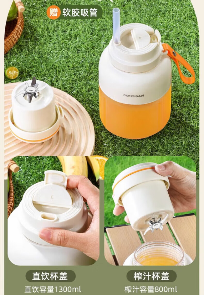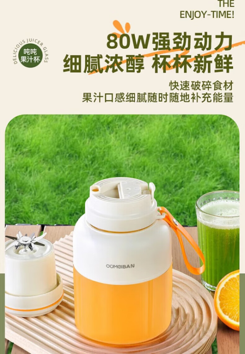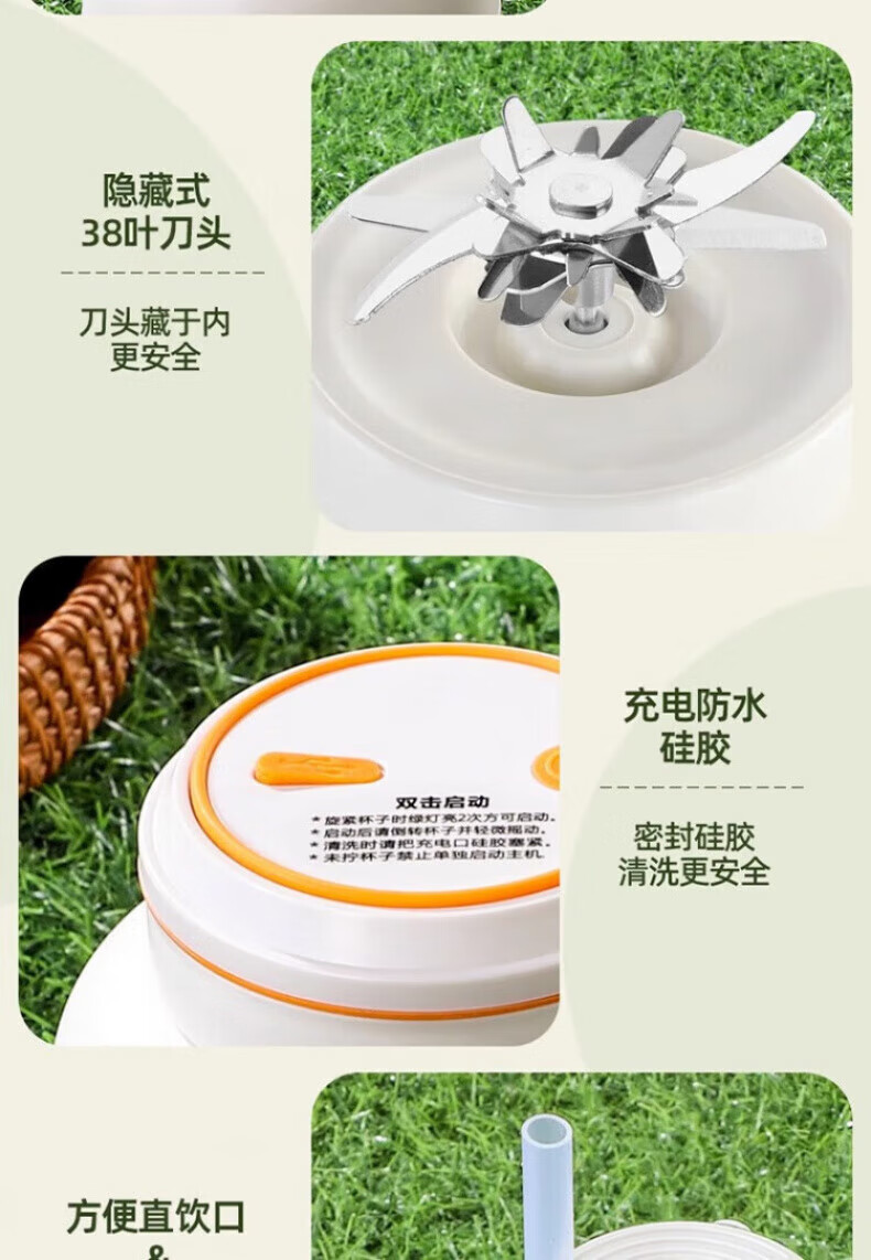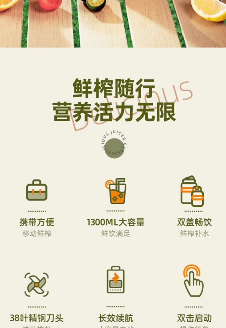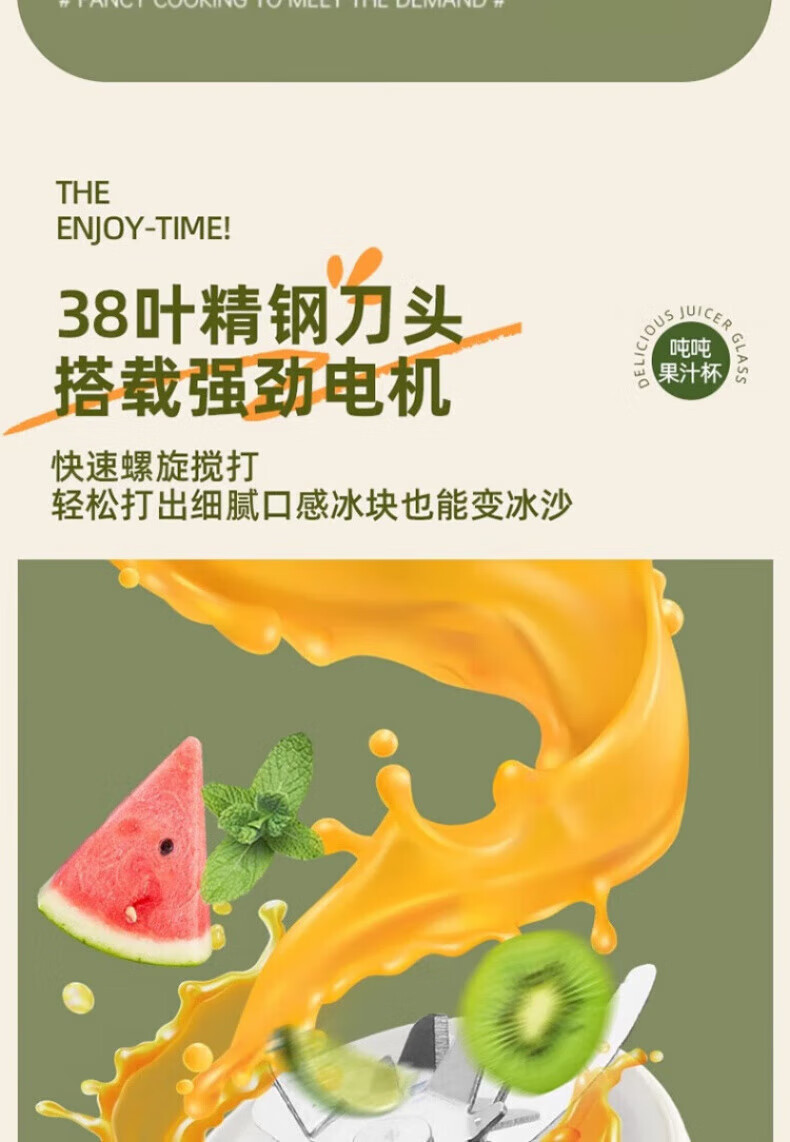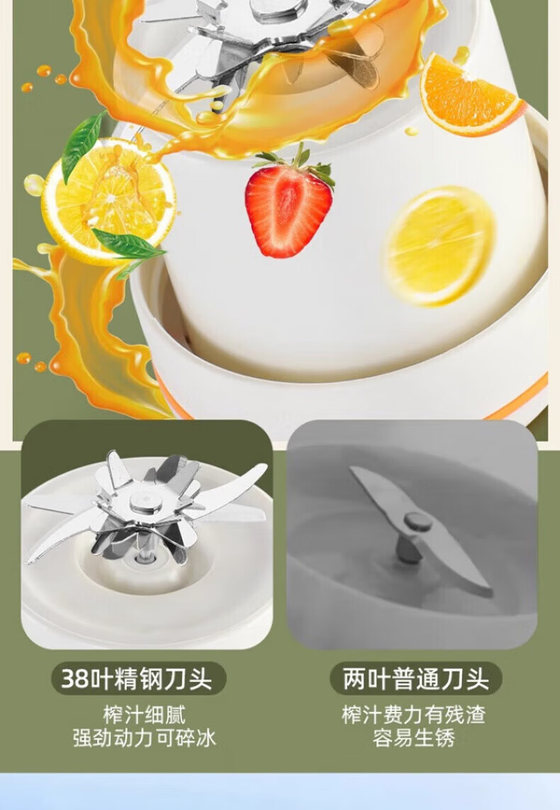 DEATKN德国高端38叶刀榨汁机小型家用水果榨汁杯便携式吨吨桶鲜果汁 [800毫升]深海蓝+14叶精钢刀头+