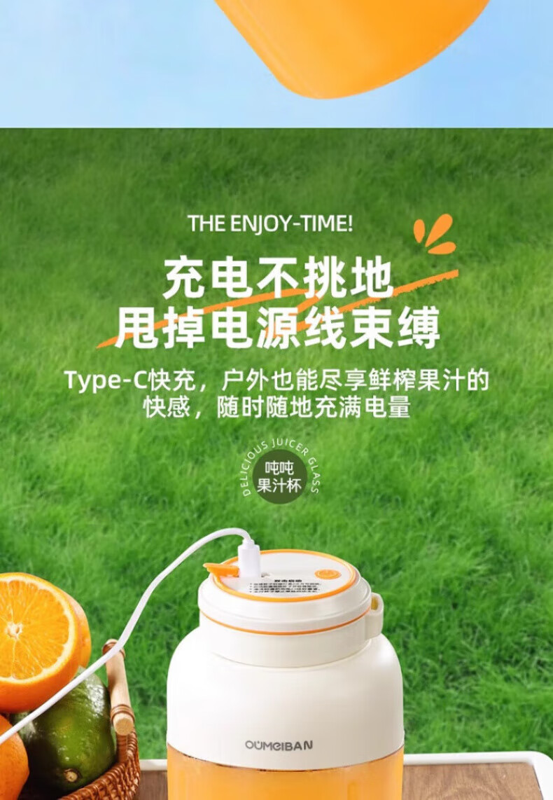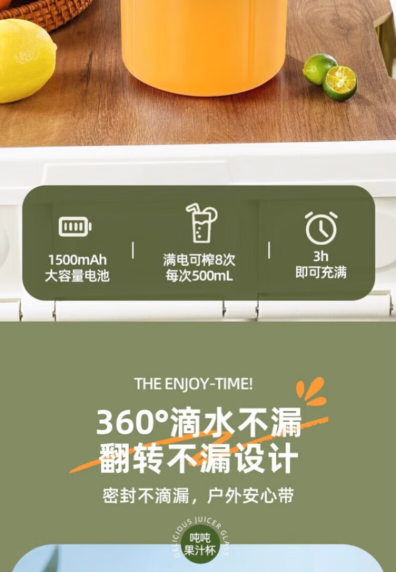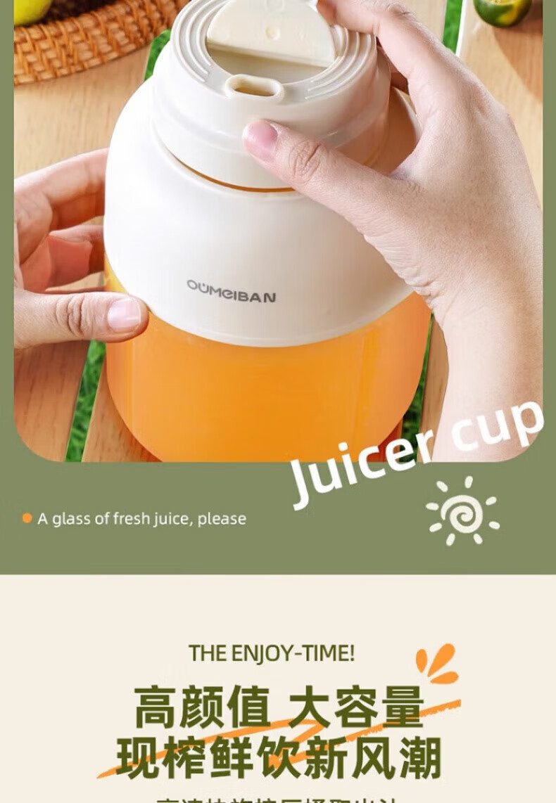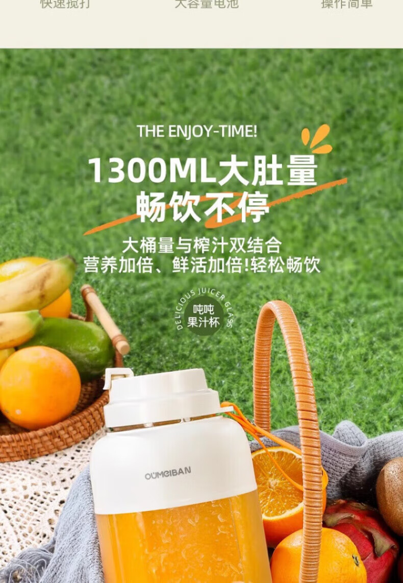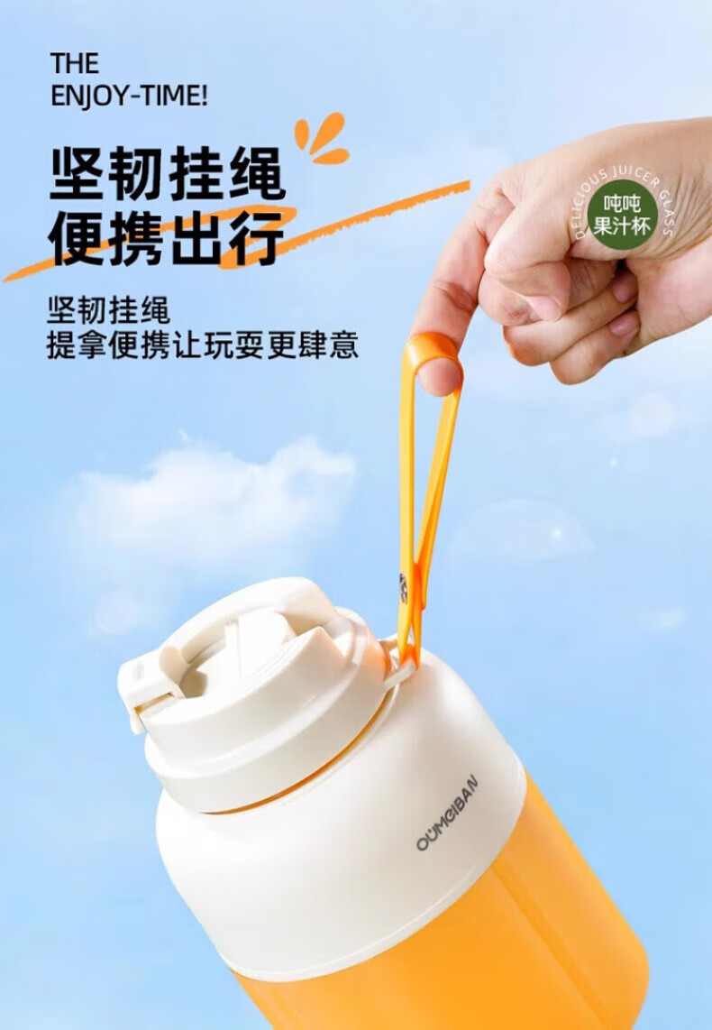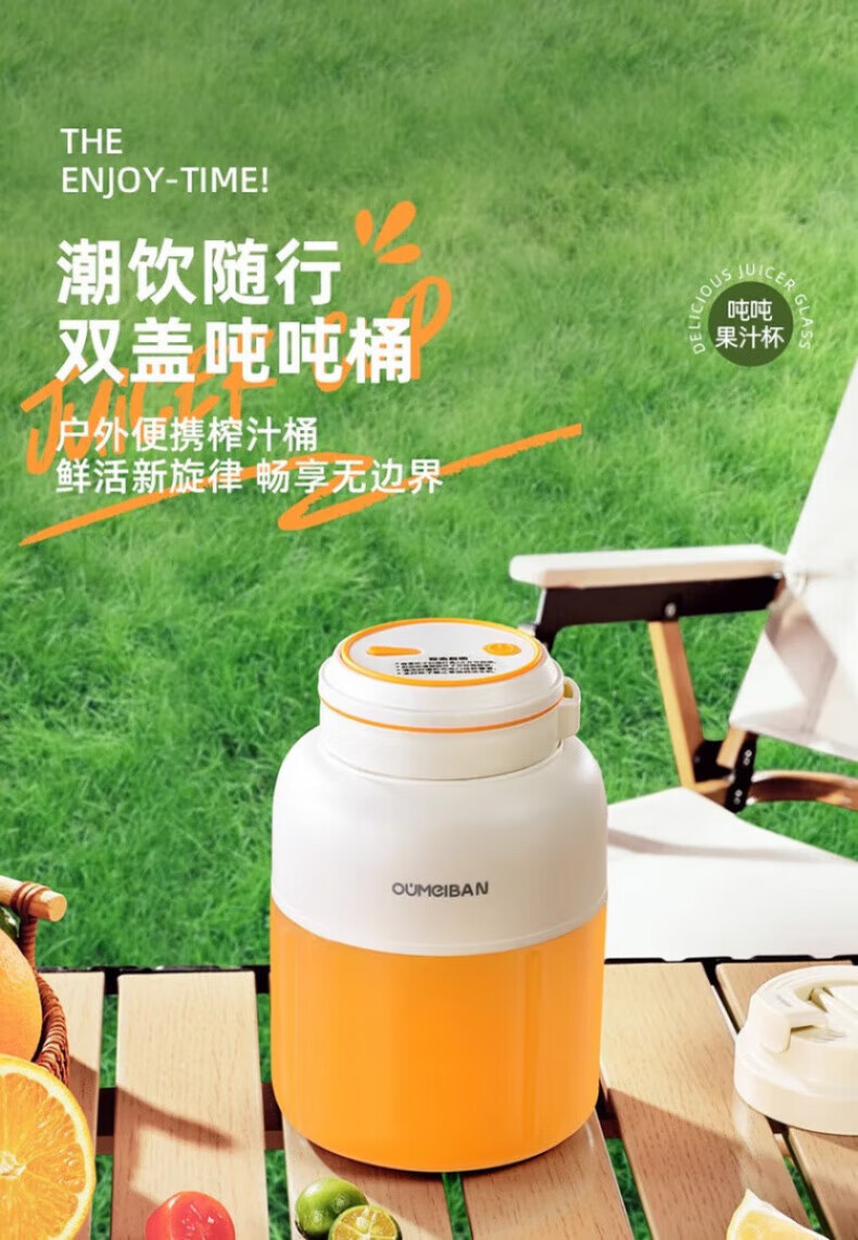 DEATKN德国高端38叶刀榨汁机小型家用水果榨汁杯便携式吨吨桶鲜果汁 [800毫升]深海蓝+14叶精钢刀头+