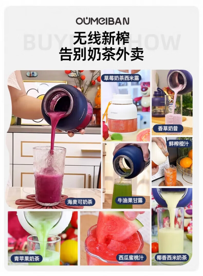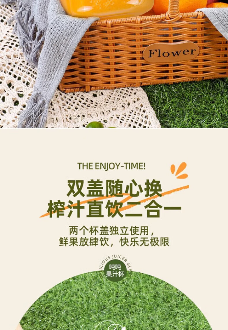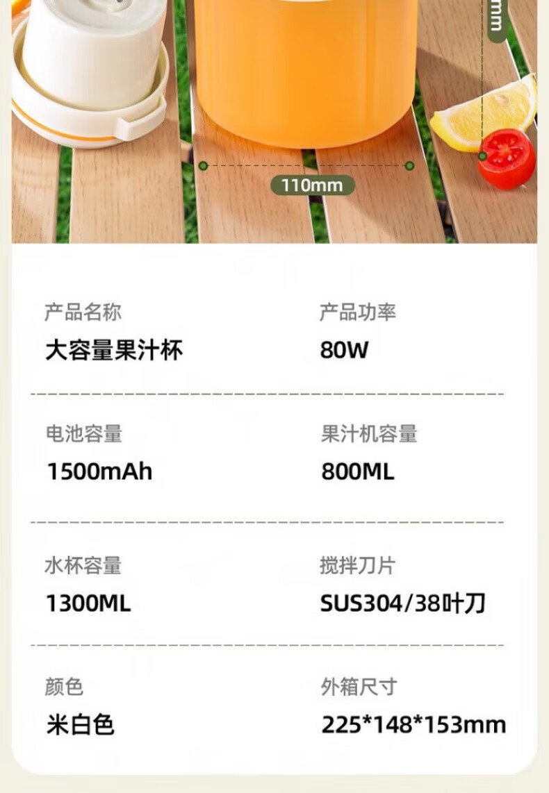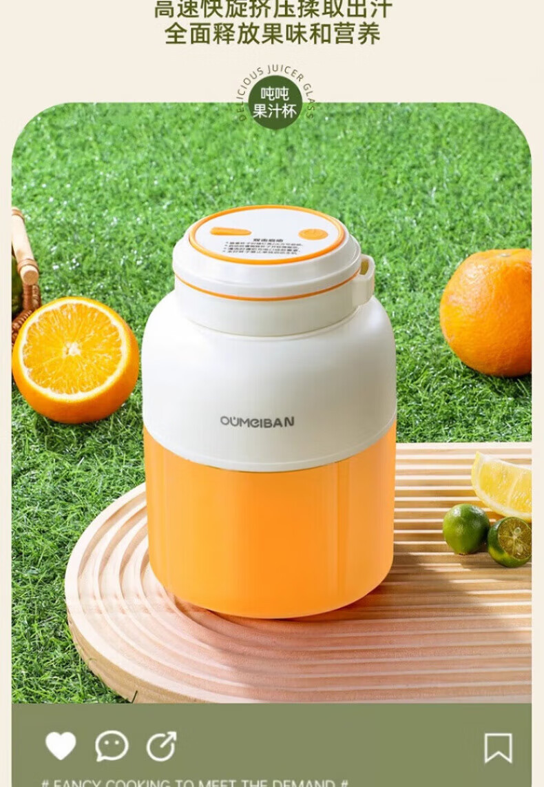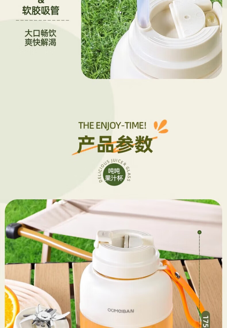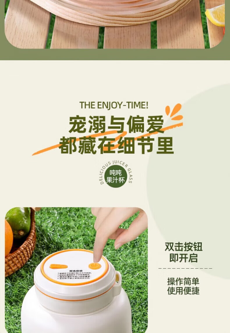 DEATKN德国高端38叶刀榨汁机小型家用水果榨汁杯便携式吨吨桶鲜果汁 [800毫升]深海蓝+14叶精钢刀头+