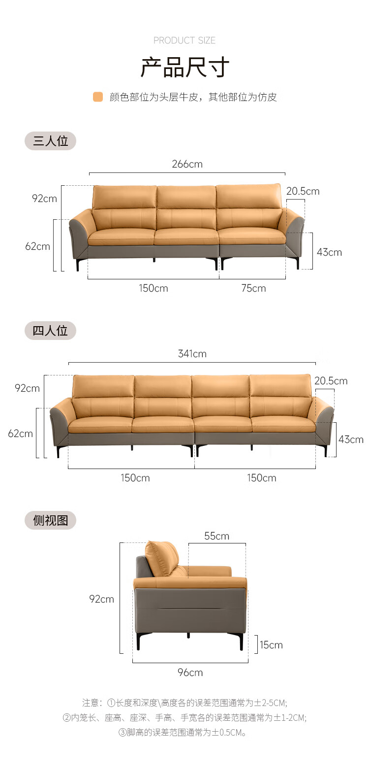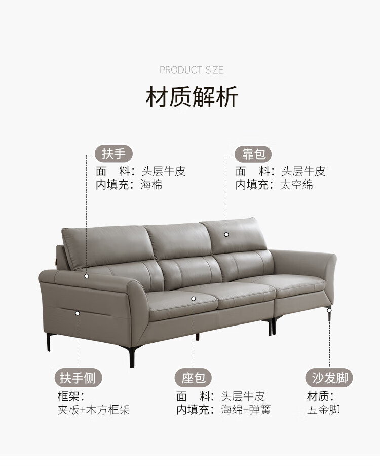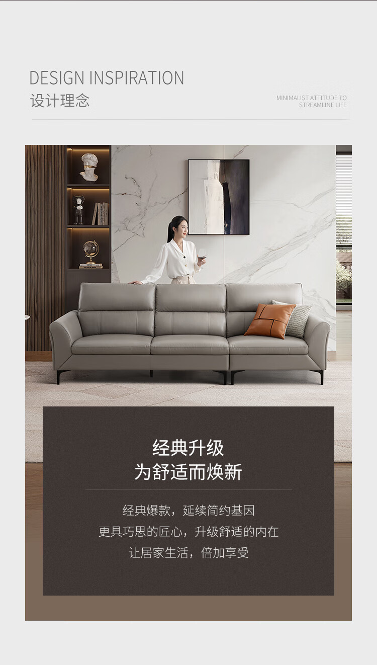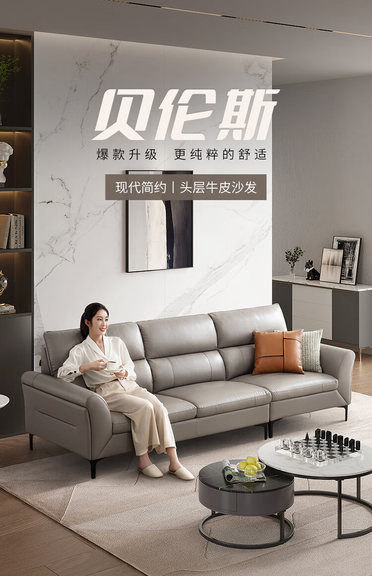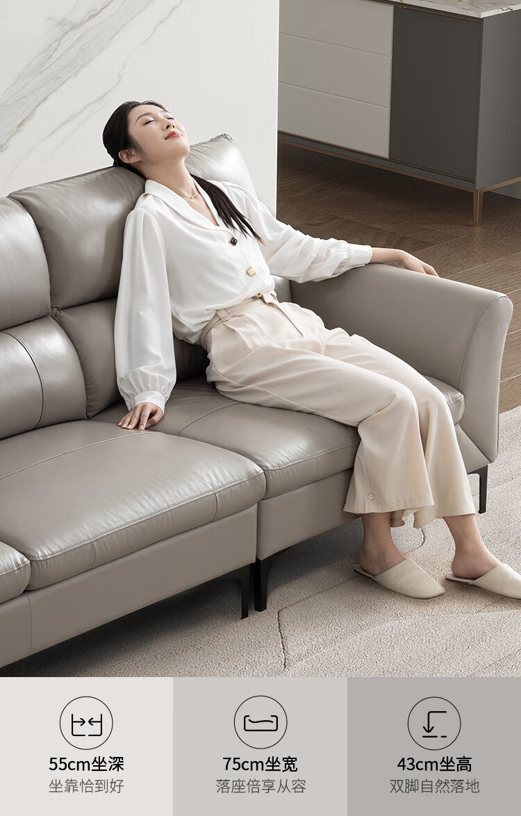 芝华仕(CHEERS)真皮直排沙发客厅2025新款现代头层牛皮芝华士3035B灰三