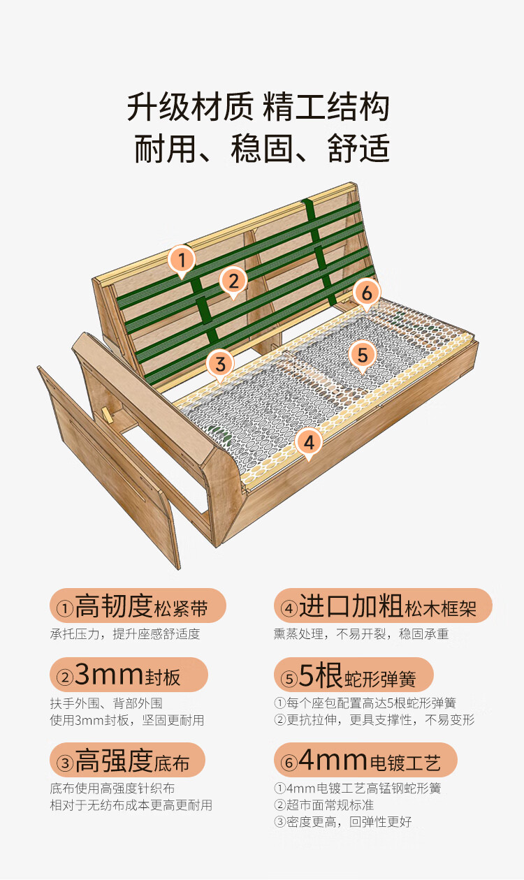 芝华仕(CHEERS)布艺沙发床一体两用客厅2025新小户型直排芝华士6305白双