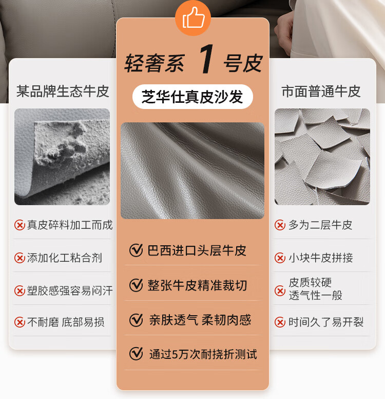芝华仕(CHEERS)五星皮床主卧室大床双人床真皮床现代软包吐司床芝华士C265灰1.8m