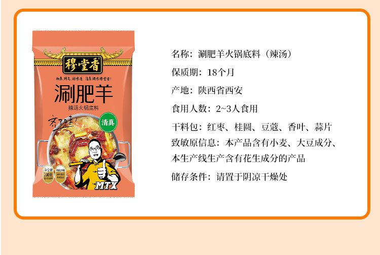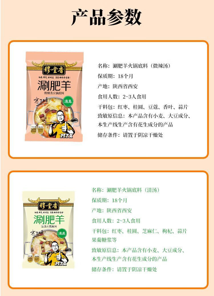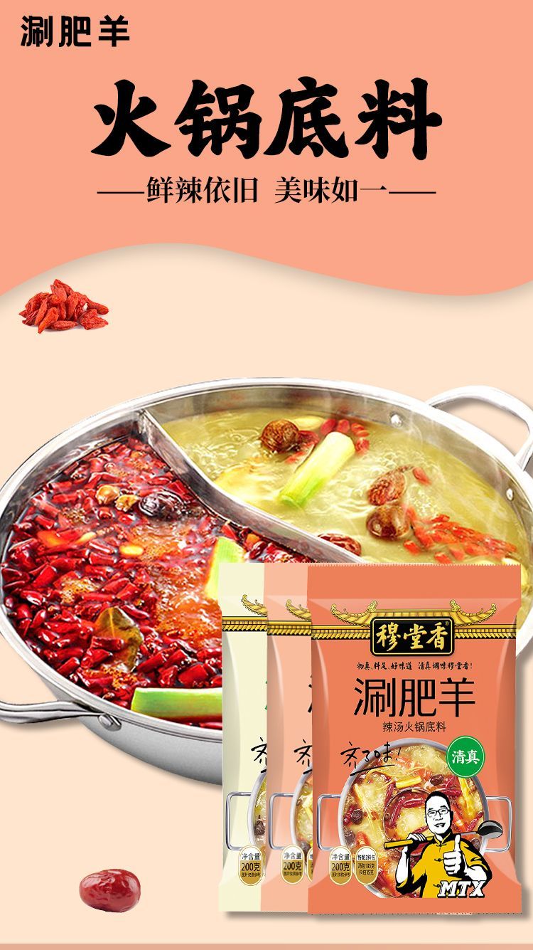 穆堂香涮肥羊清汤火锅底料清真老北京涮肉200g家用清汤免辣 涮肥羊火锅底料(清汤)2袋装