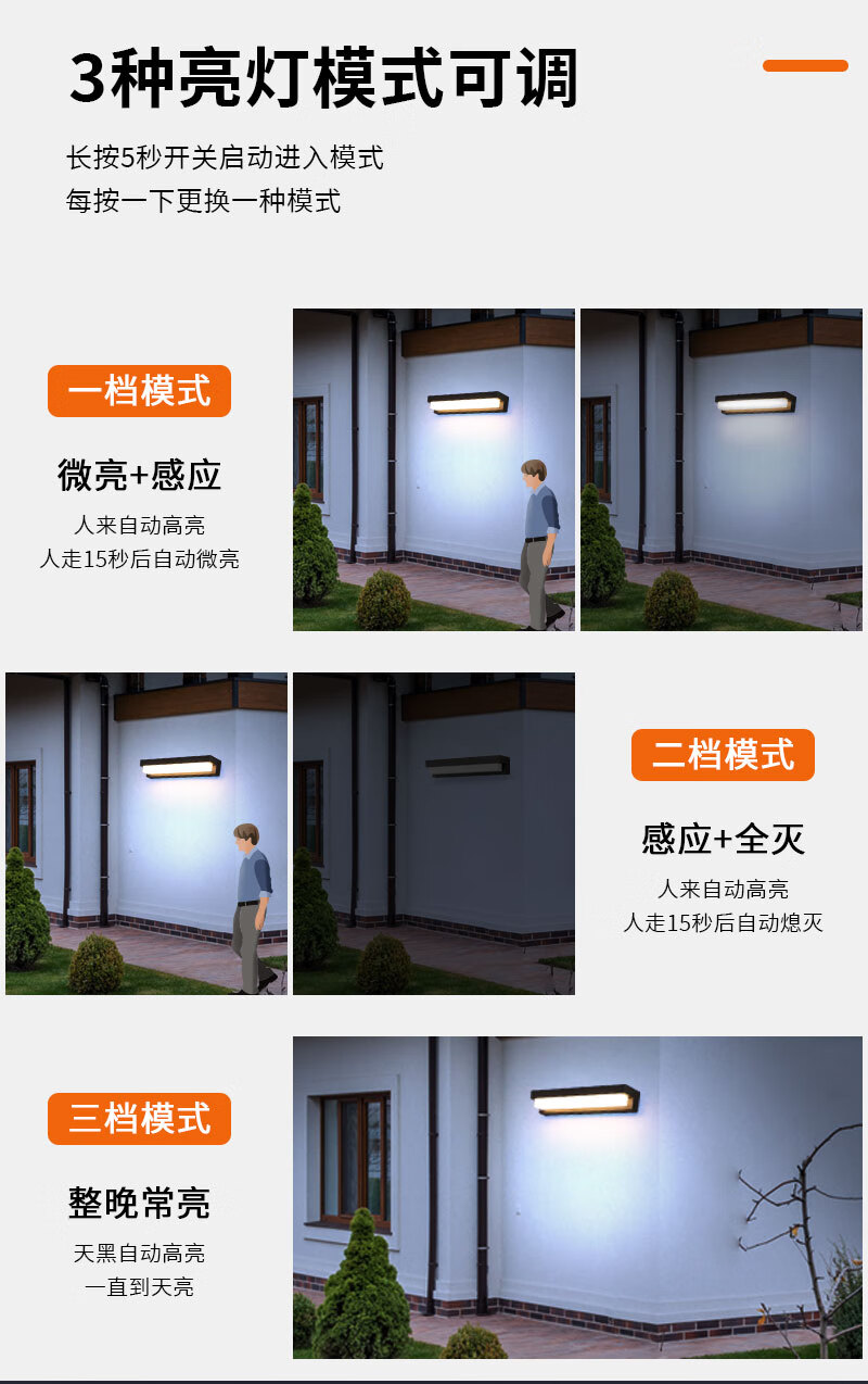 丞明太阳能壁灯免打孔庭院户外灯门口花园家用室外防水人体感应氛围灯 太阳能人体感应款+遥控(暖光)