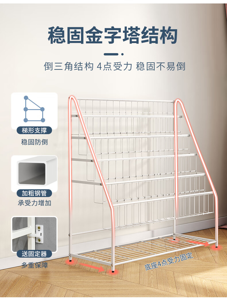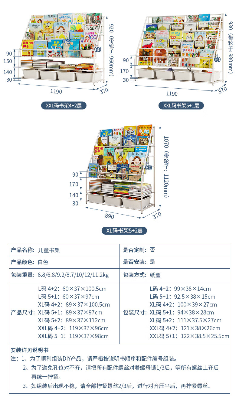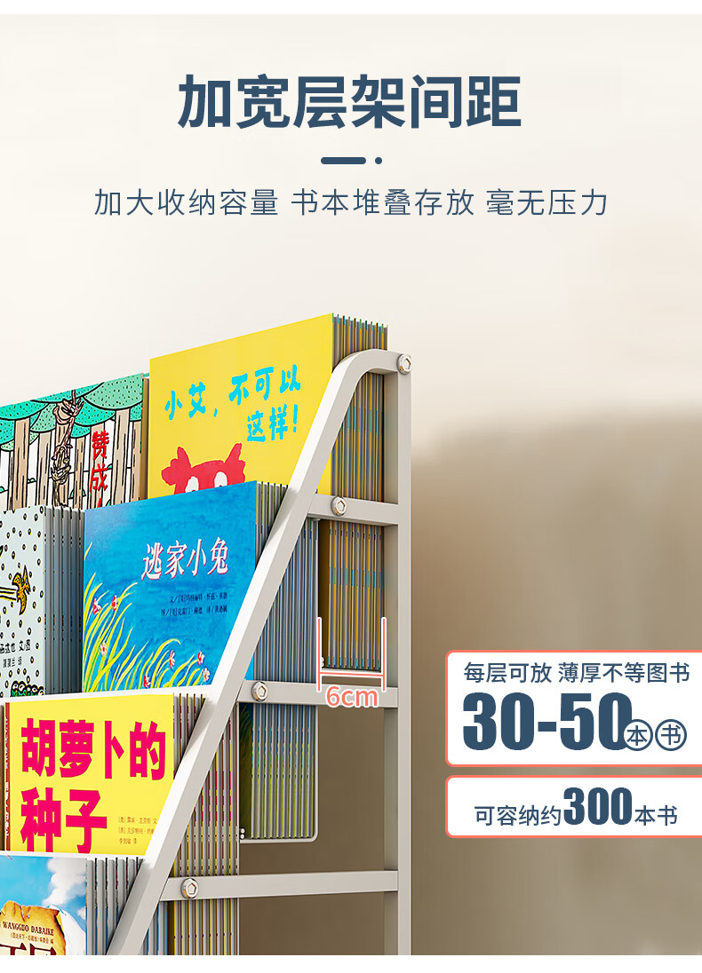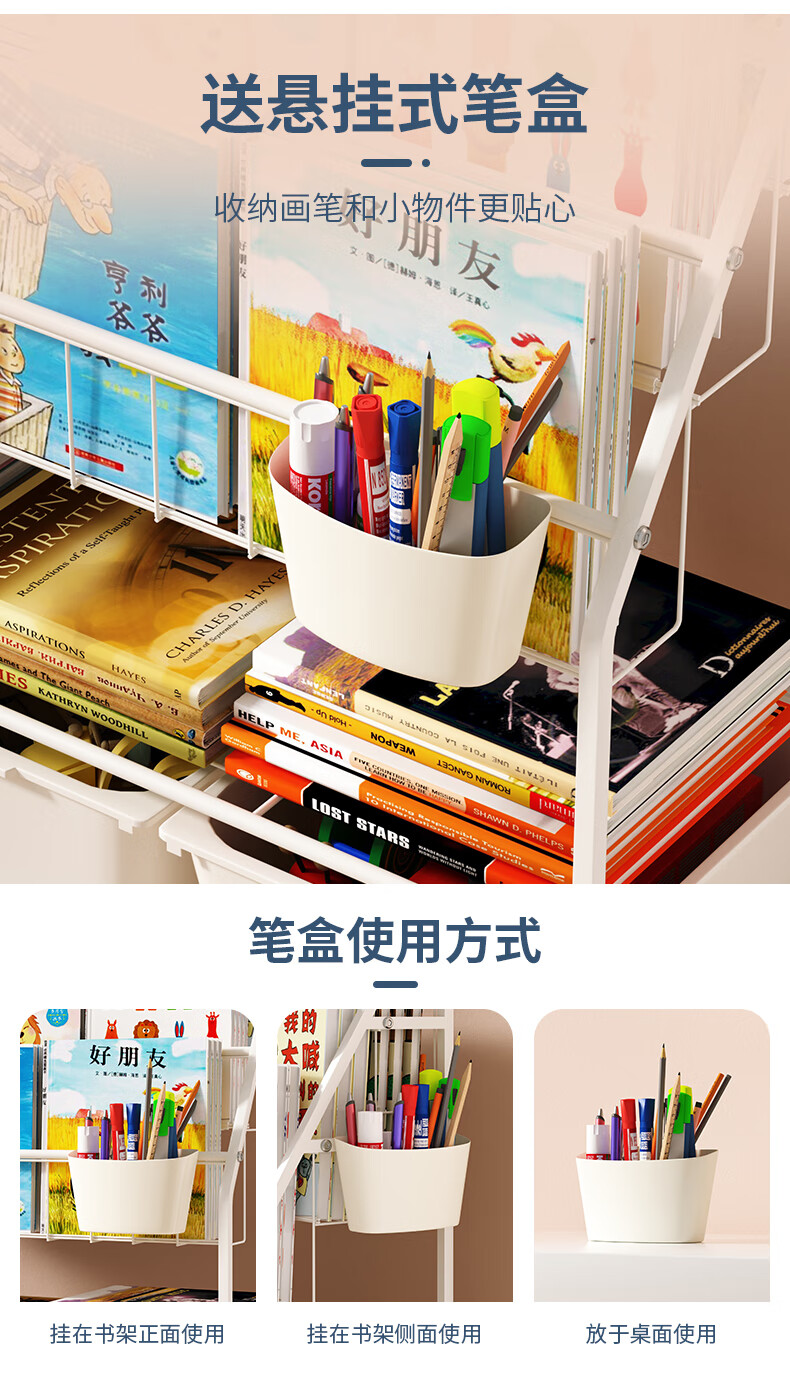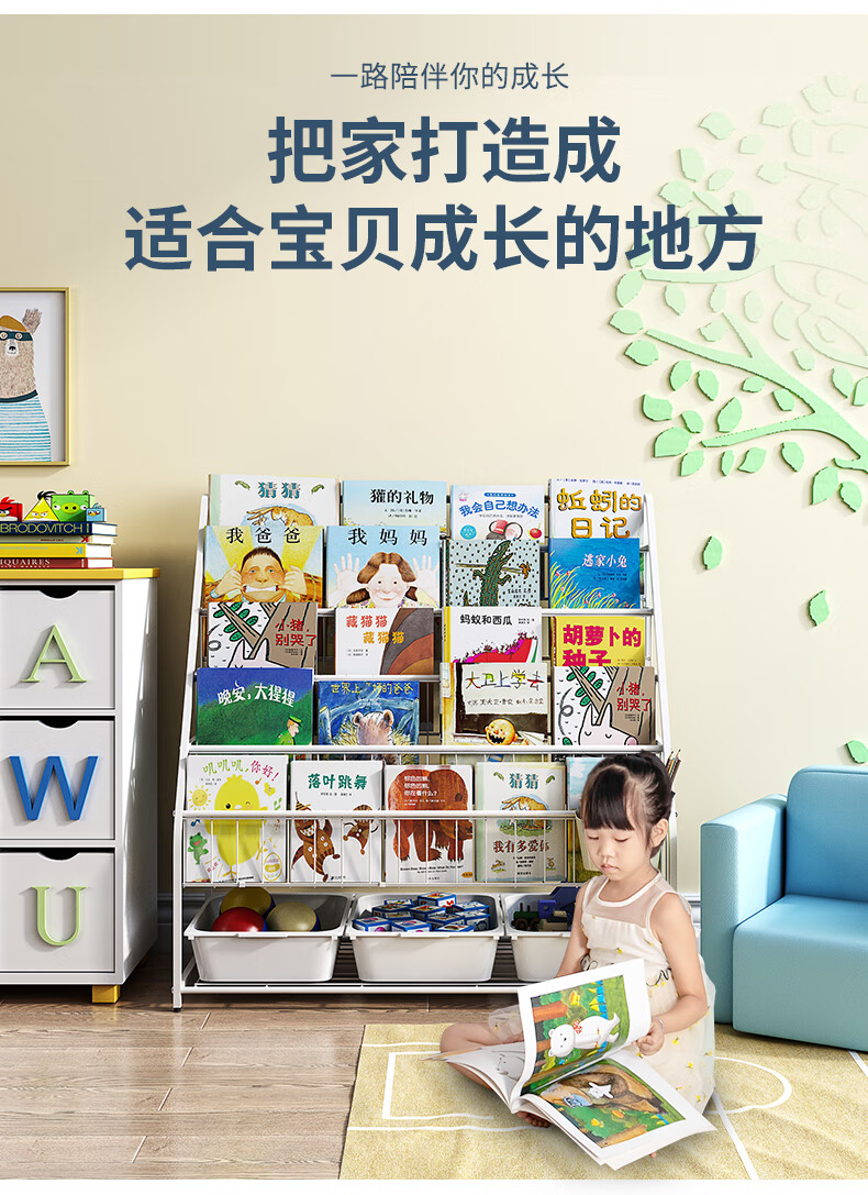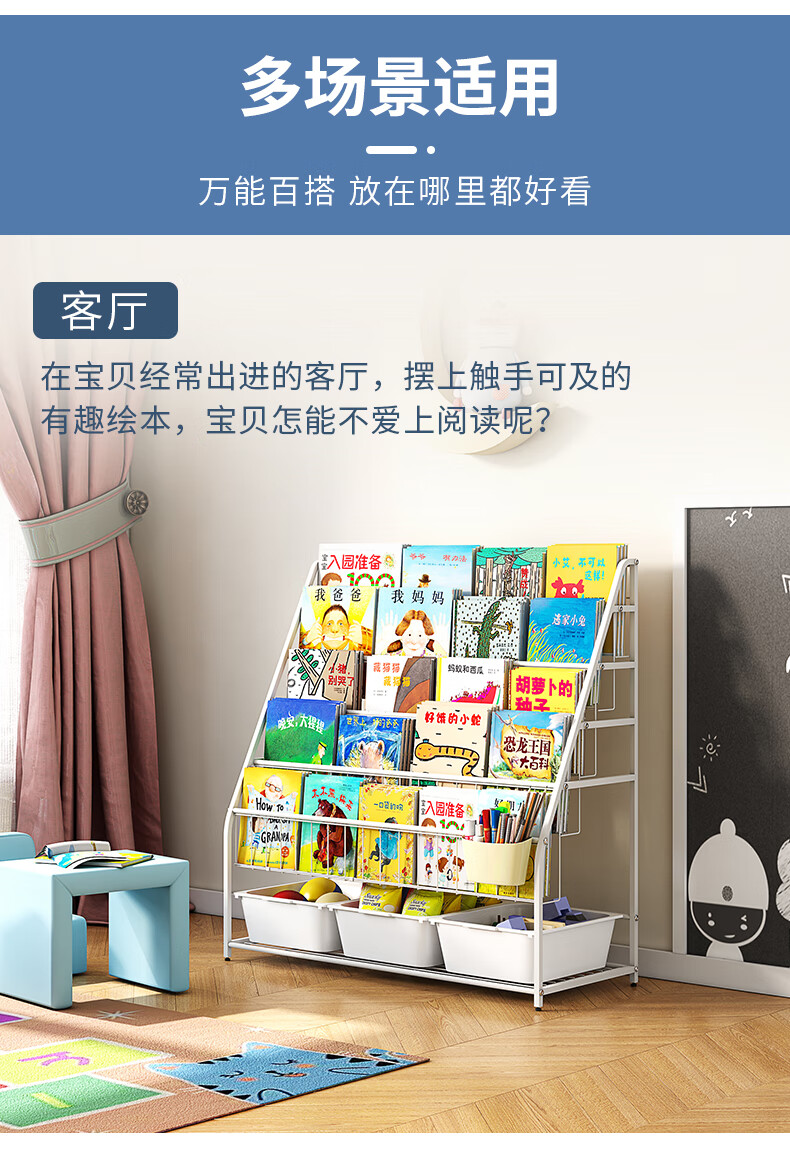SOFS儿童书架落地宝宝绘本架书报置物架杂志架书本玩具收纳架一体幼儿铁艺小书柜 L码(4+2)层2盒无轮子
