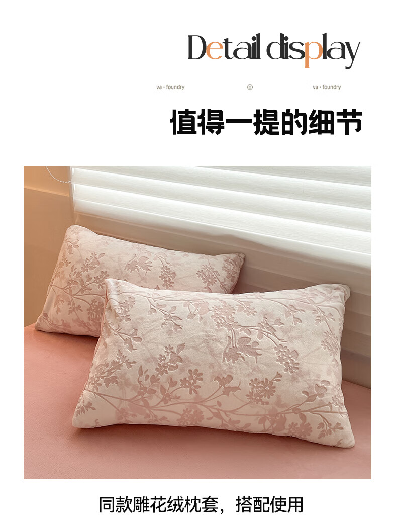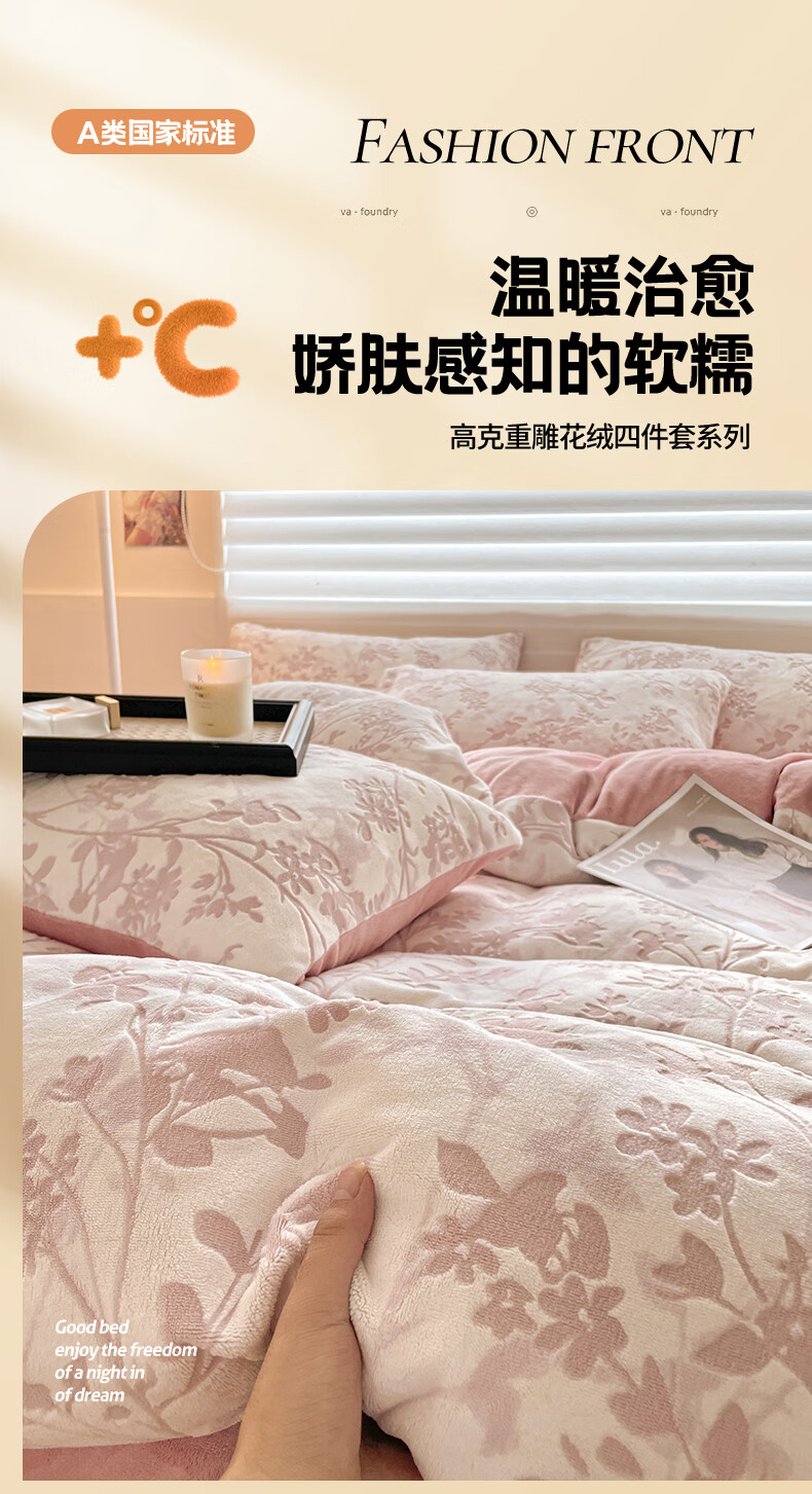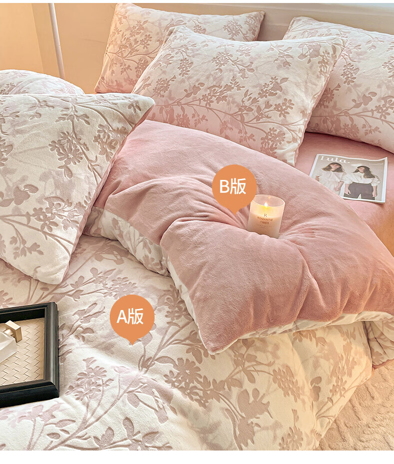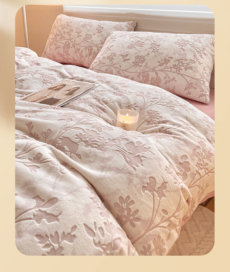 猫人(MiiOW)冬季雕花牛奶绒四件套加绒加厚珊瑚绒冬天家用床上套件宿舍三件套 花朝梦-粉【高克重牛奶绒】 1.8m 床单款 四件套-200x230cm被套