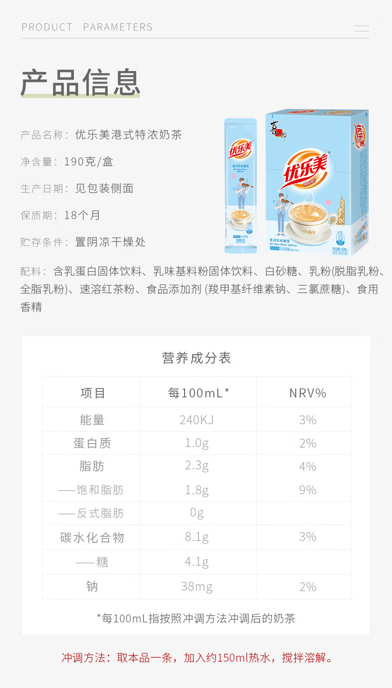 优乐美低糖奶茶19gx10条港式特浓味 奶茶粉速溶 早餐代餐下午茶冲调饮料