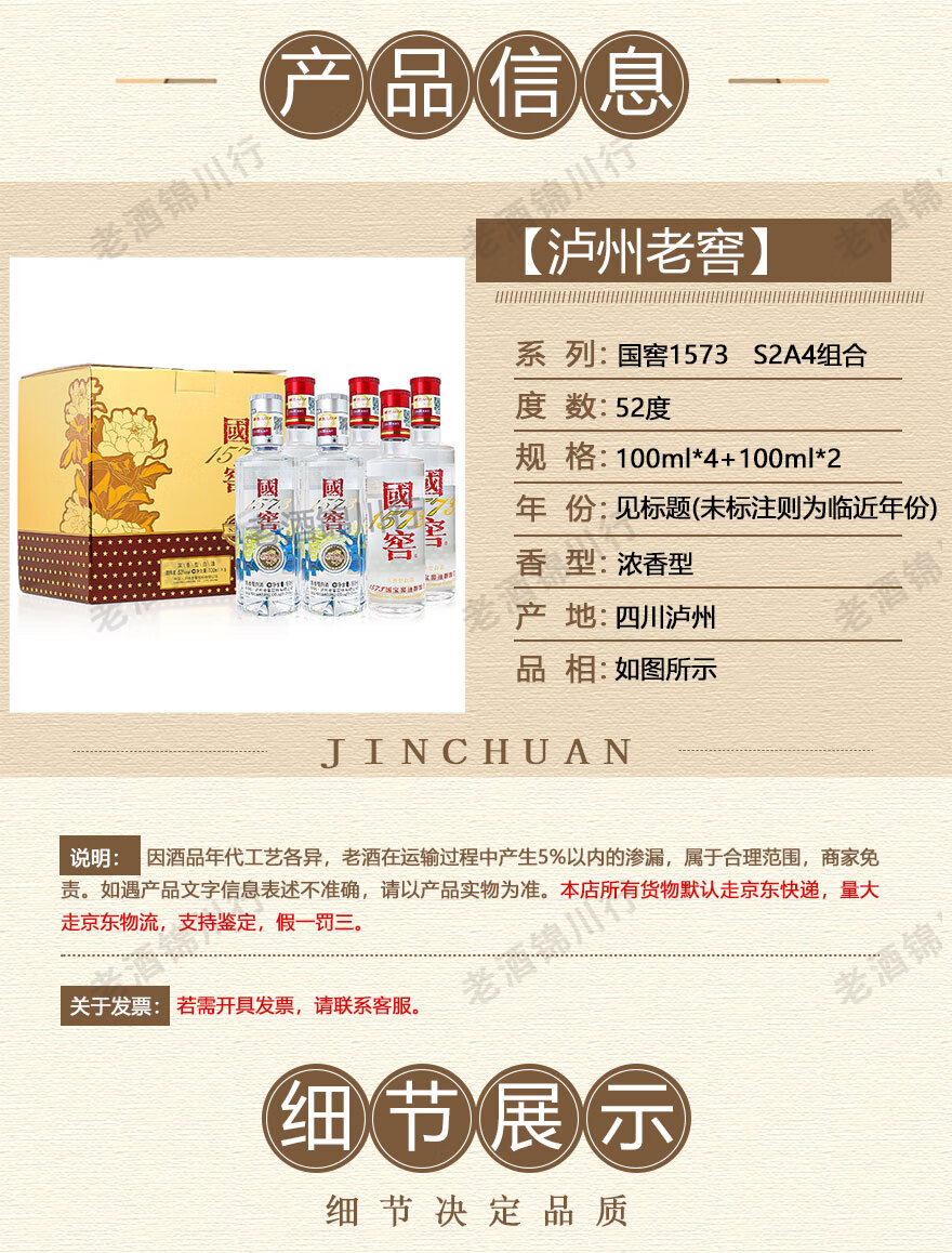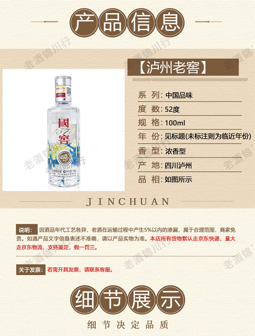 泸州老窖 国窖1573 中国品味 小酒版 52度 100ml 浓香型白酒 100ml*2瓶