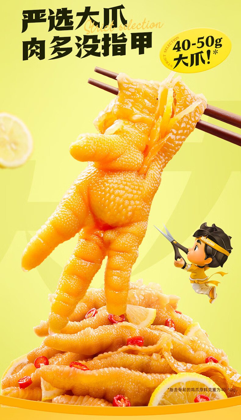 王小卤凤爪 休闲零食 鸡爪 酸辣无骨凤爪罐装 柠檬酸辣味500g*1罐