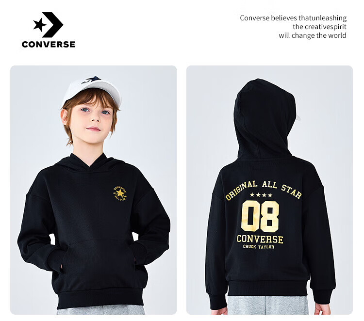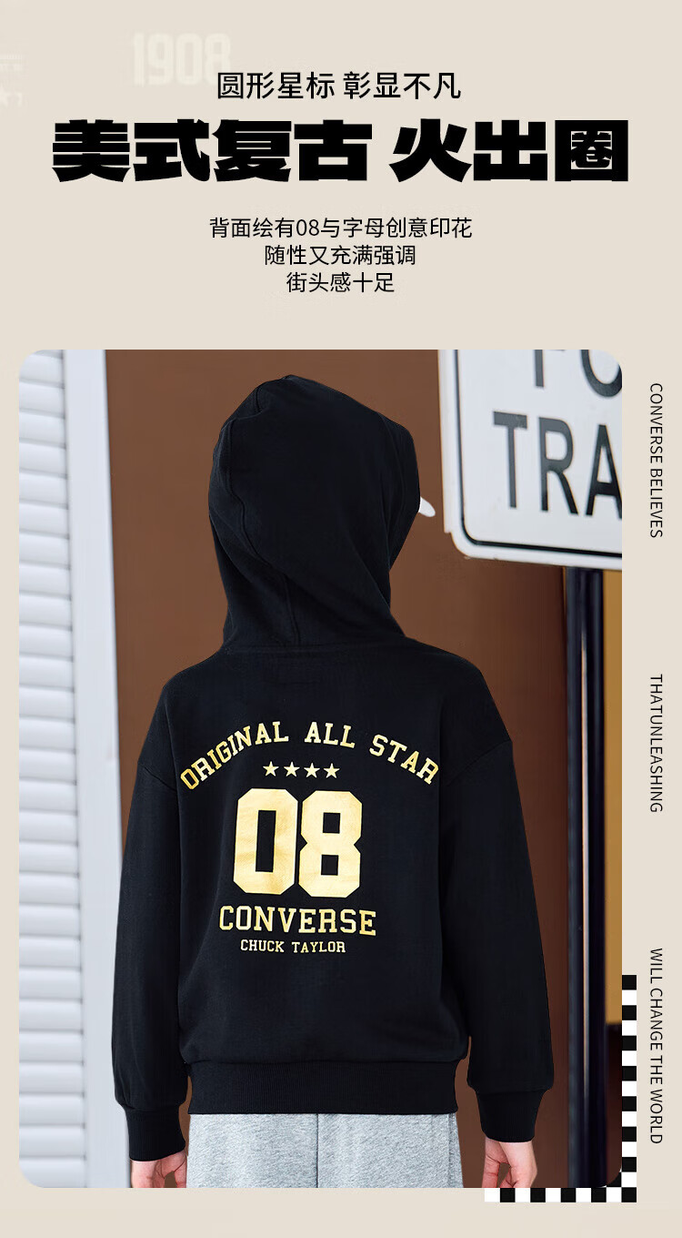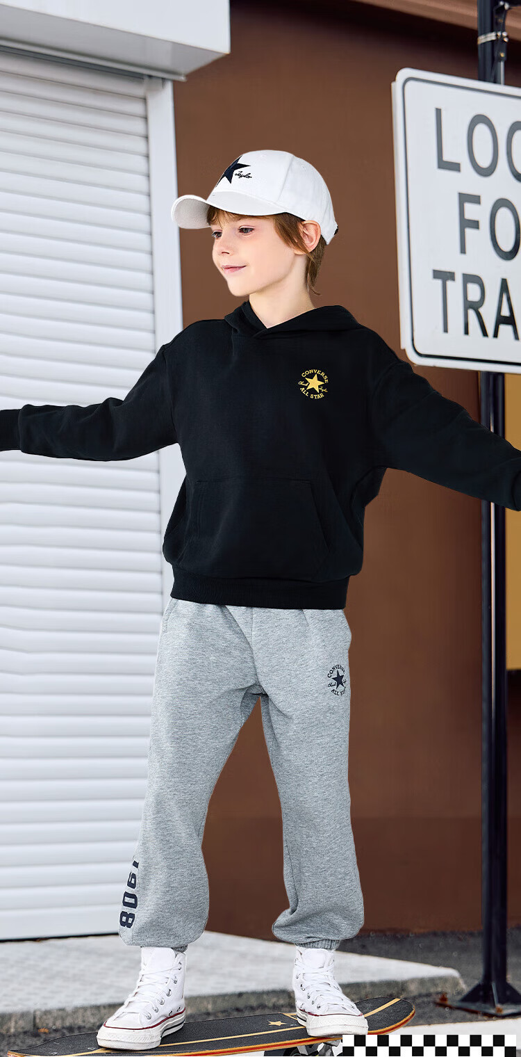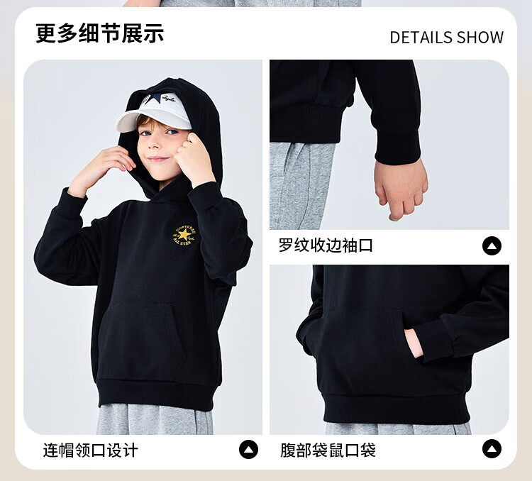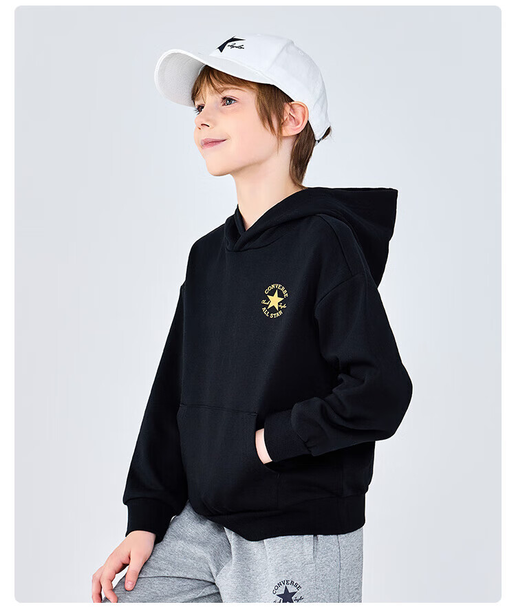 Converse匡威童装男童卫衣2025秋季新款连帽卫衣打底衫中大童女童休闲复古 正黑色 150 /72 【建议身高140-152cm】