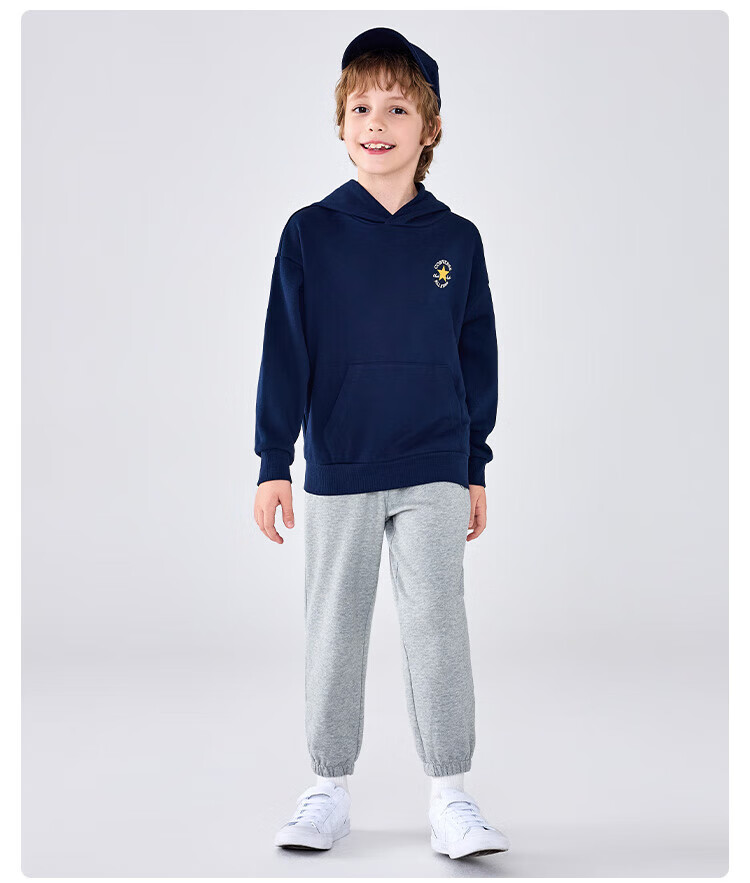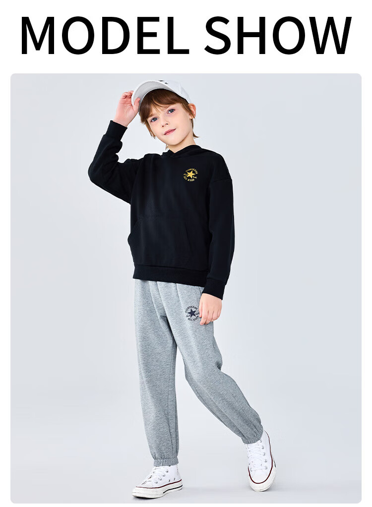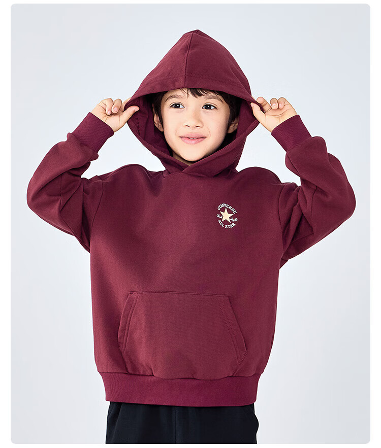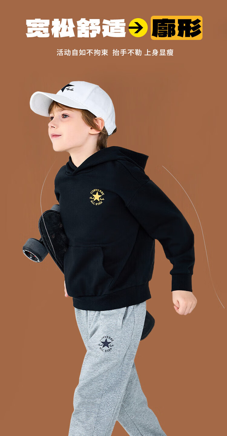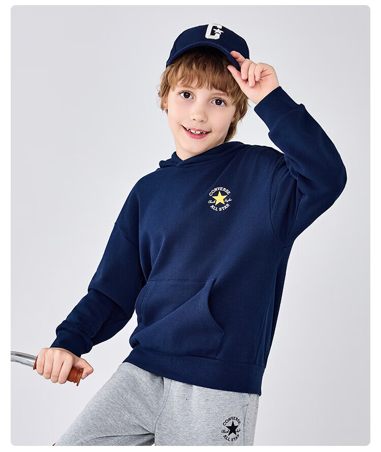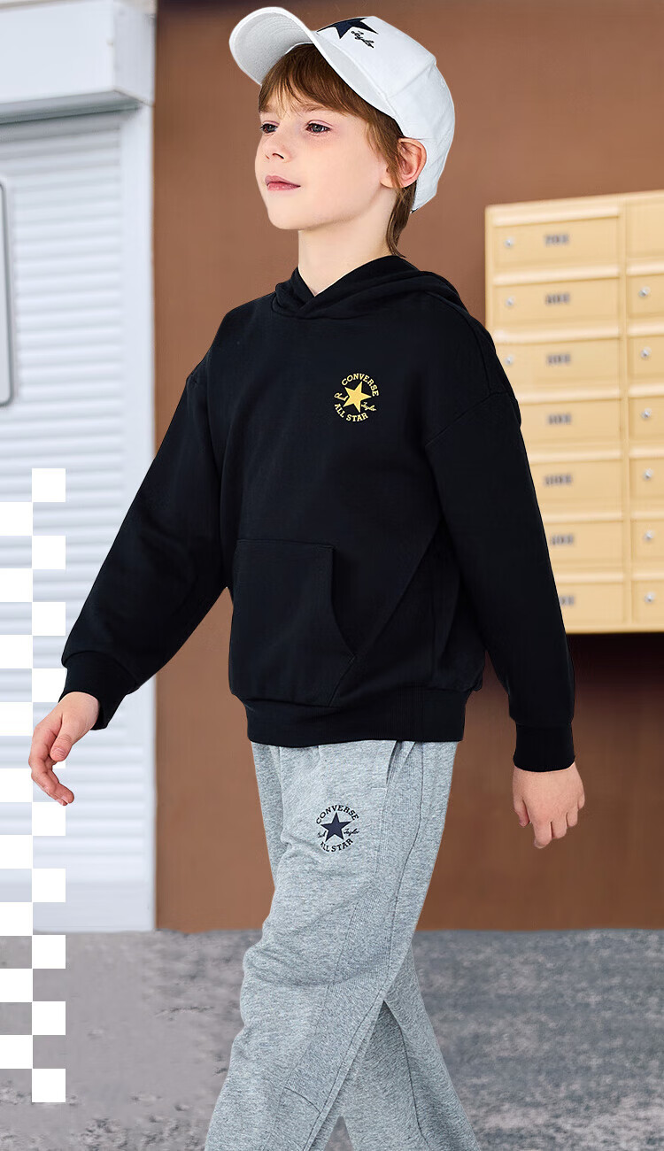 Converse匡威童装男童卫衣2025秋季新款连帽卫衣打底衫中大童女童休闲复古 正黑色 150 /72 【建议身高140-152cm】