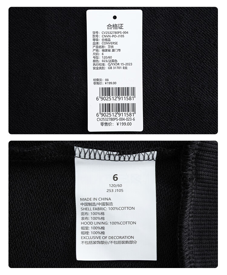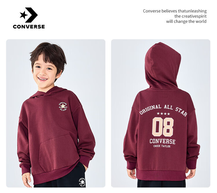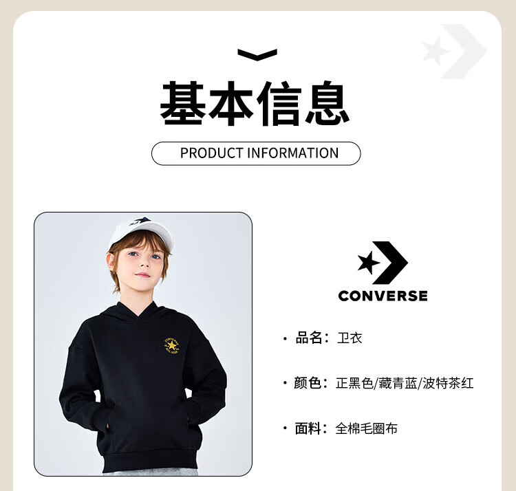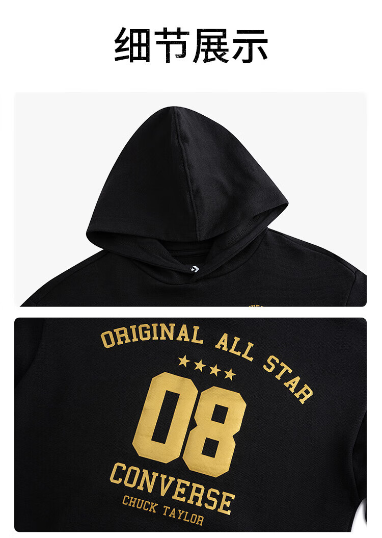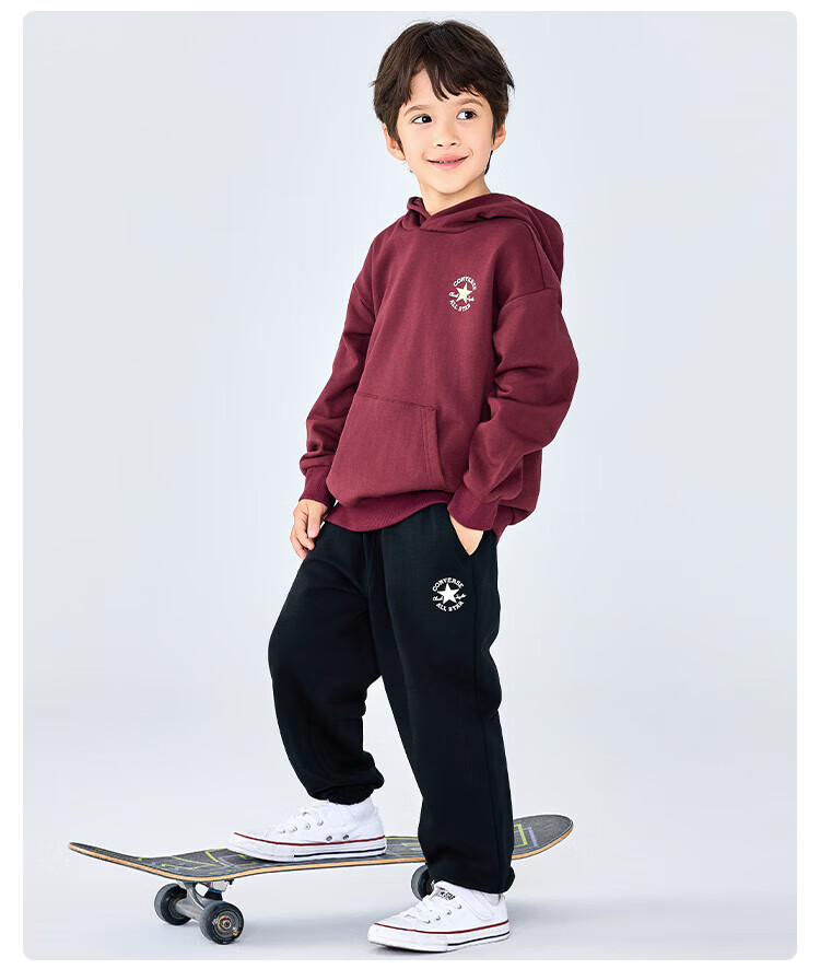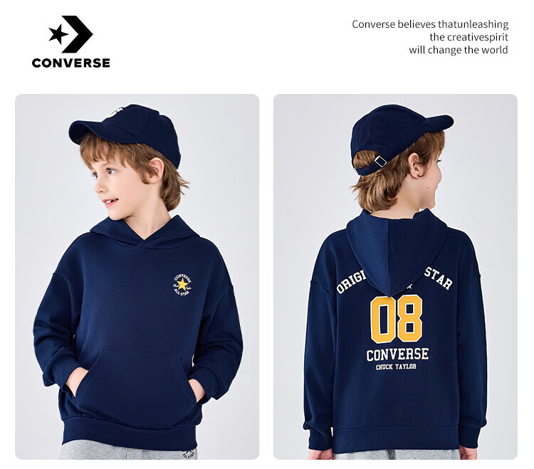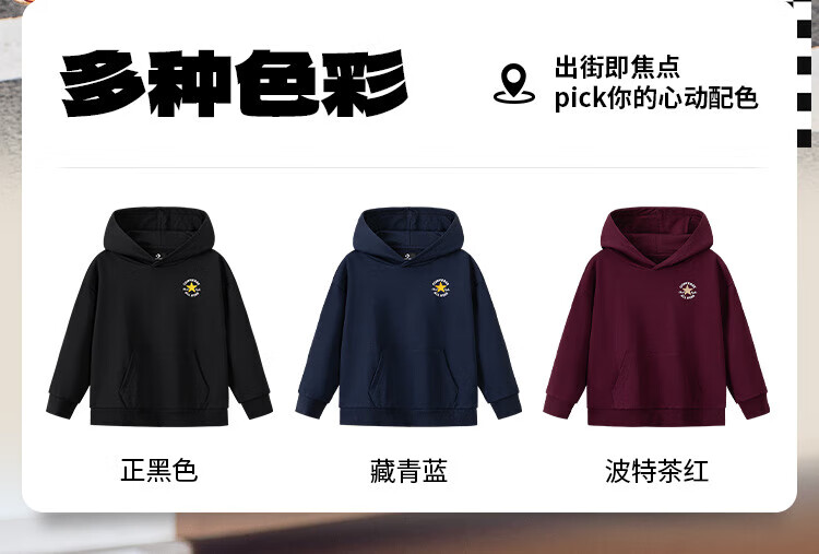 Converse匡威童装男童卫衣2025秋季新款连帽卫衣打底衫中大童女童休闲复古 正黑色 150 /72 【建议身高140-152cm】
