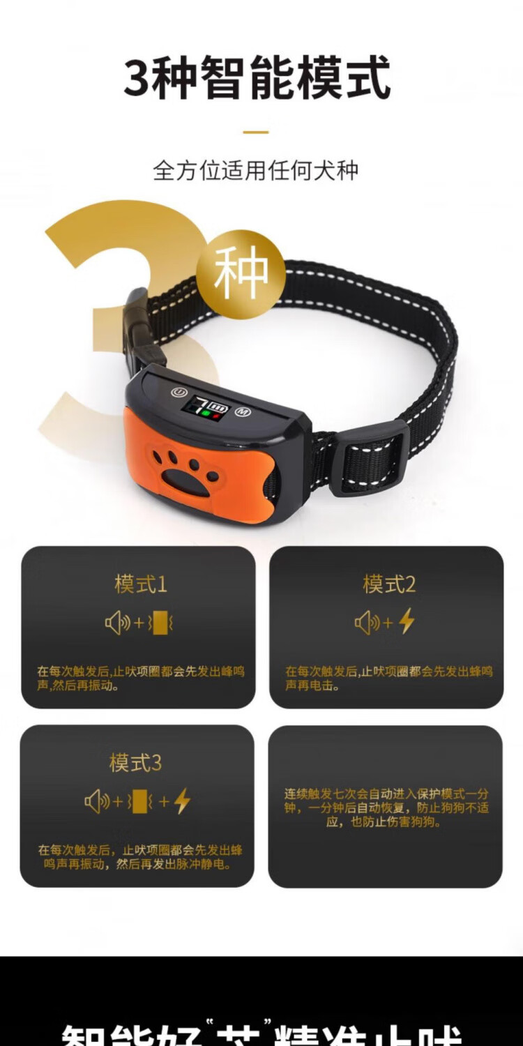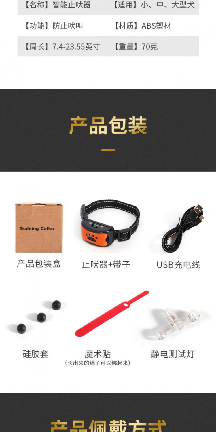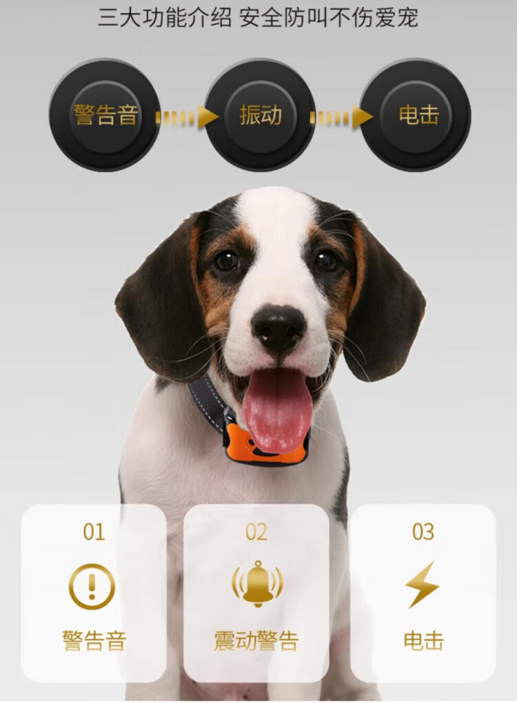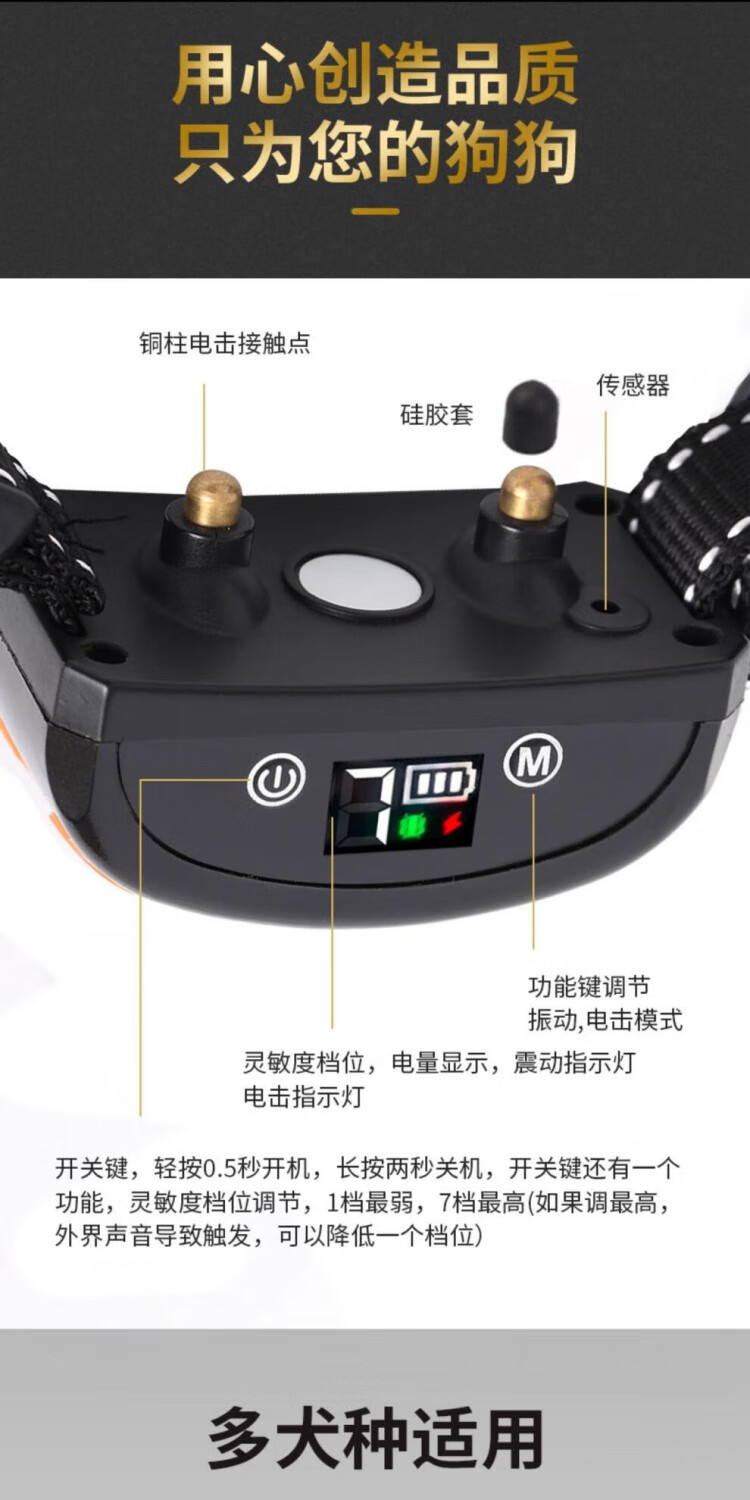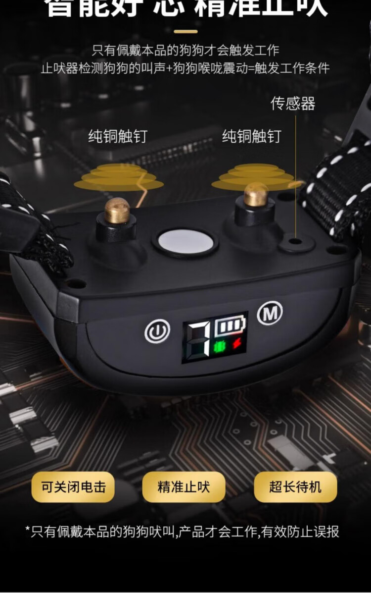 DEATKN 德国宠物训狗自动止吠器智能自动防叫防咬器狗电击项圈小中型犬 黑色止吠器