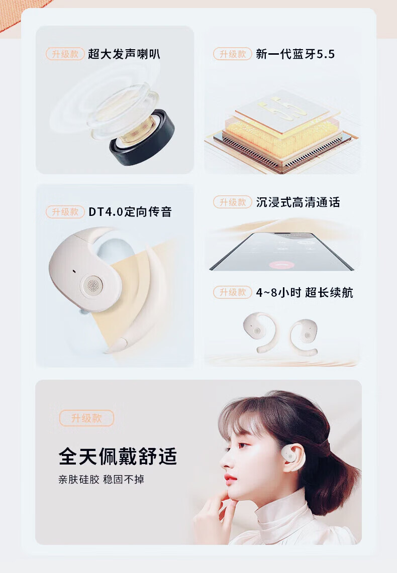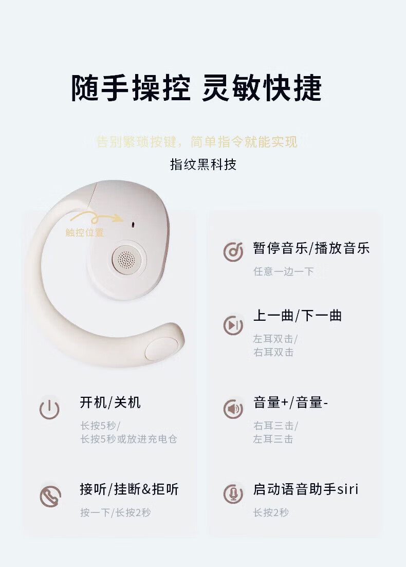 萨勒芬妮【挂耳式丨运动狂甩不掉】蓝牙耳机开放式无线骨传导概念OWS超长续航ENC降噪不入耳式耳夹式跑步 久戴不胀耳丨杜比音效丨运动狂甩不掉
