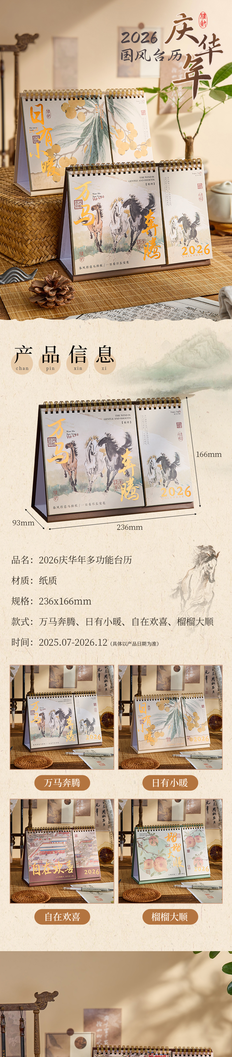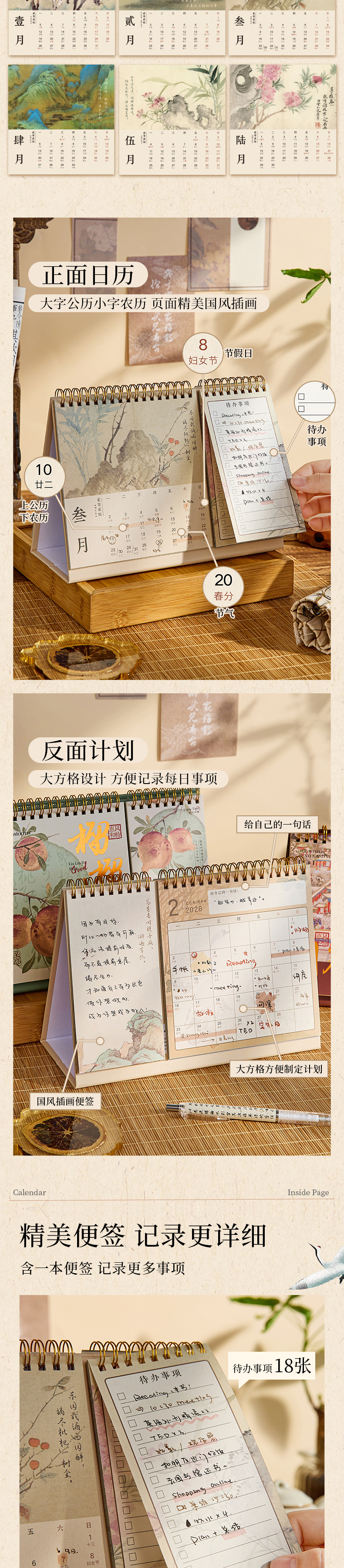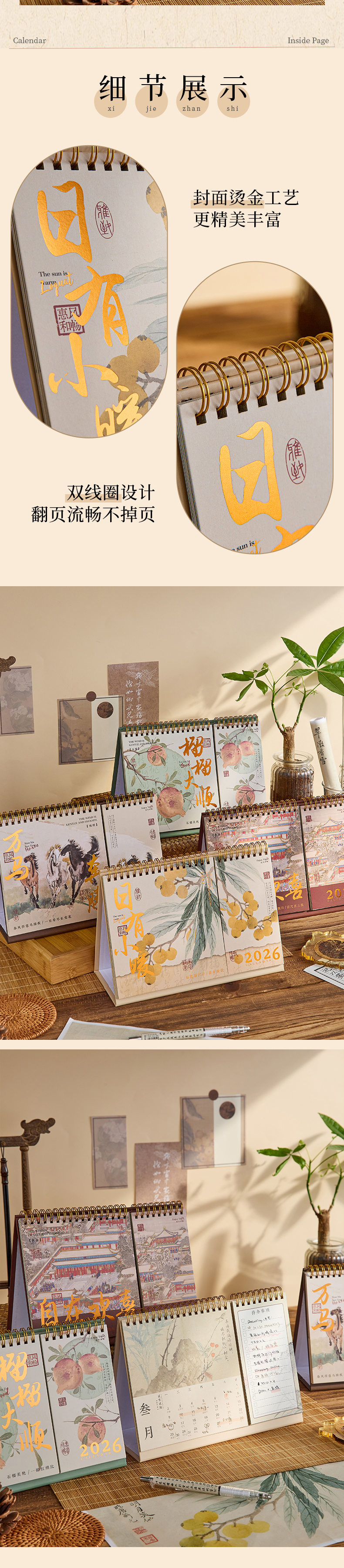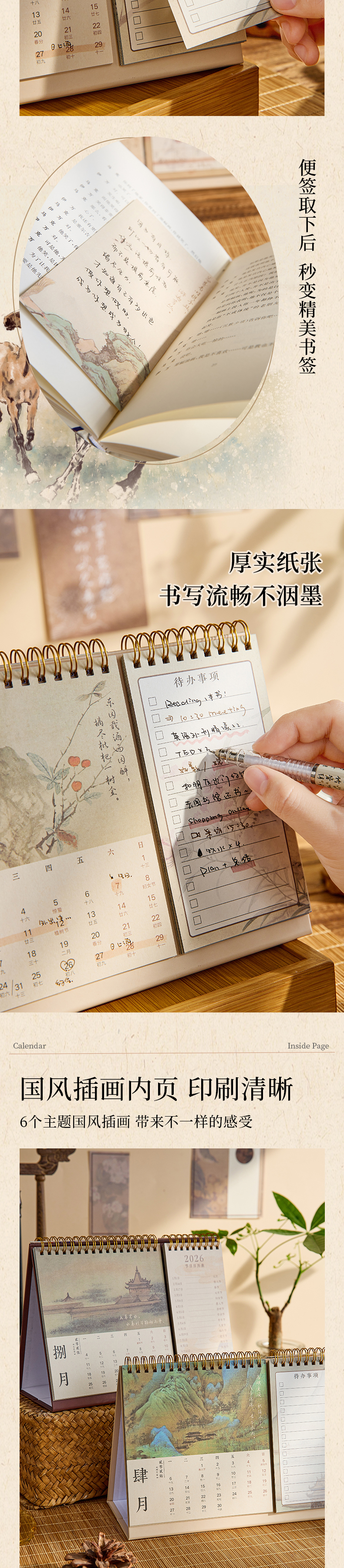 三年二班 国风高颜值复古双功能台历2026年新款日历学生自律打卡月历办公桌面摆件工作记录备忘录考研 双功能-榴榴大顺(台历+待办)
