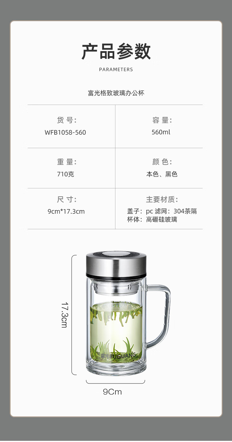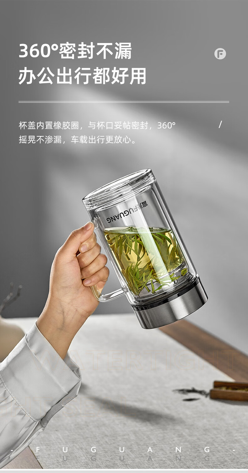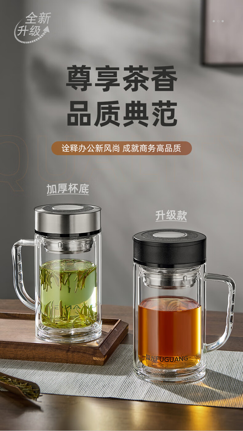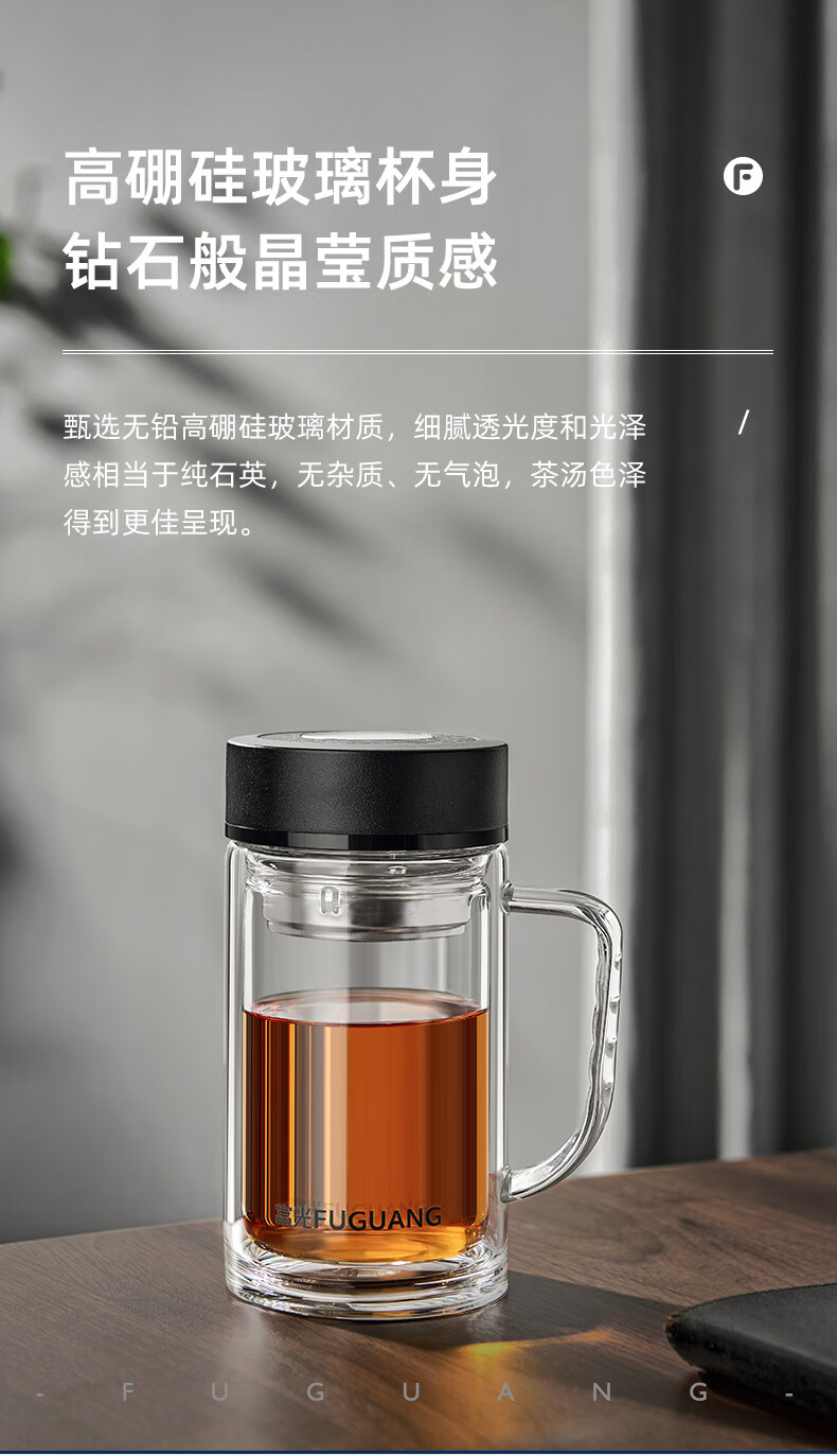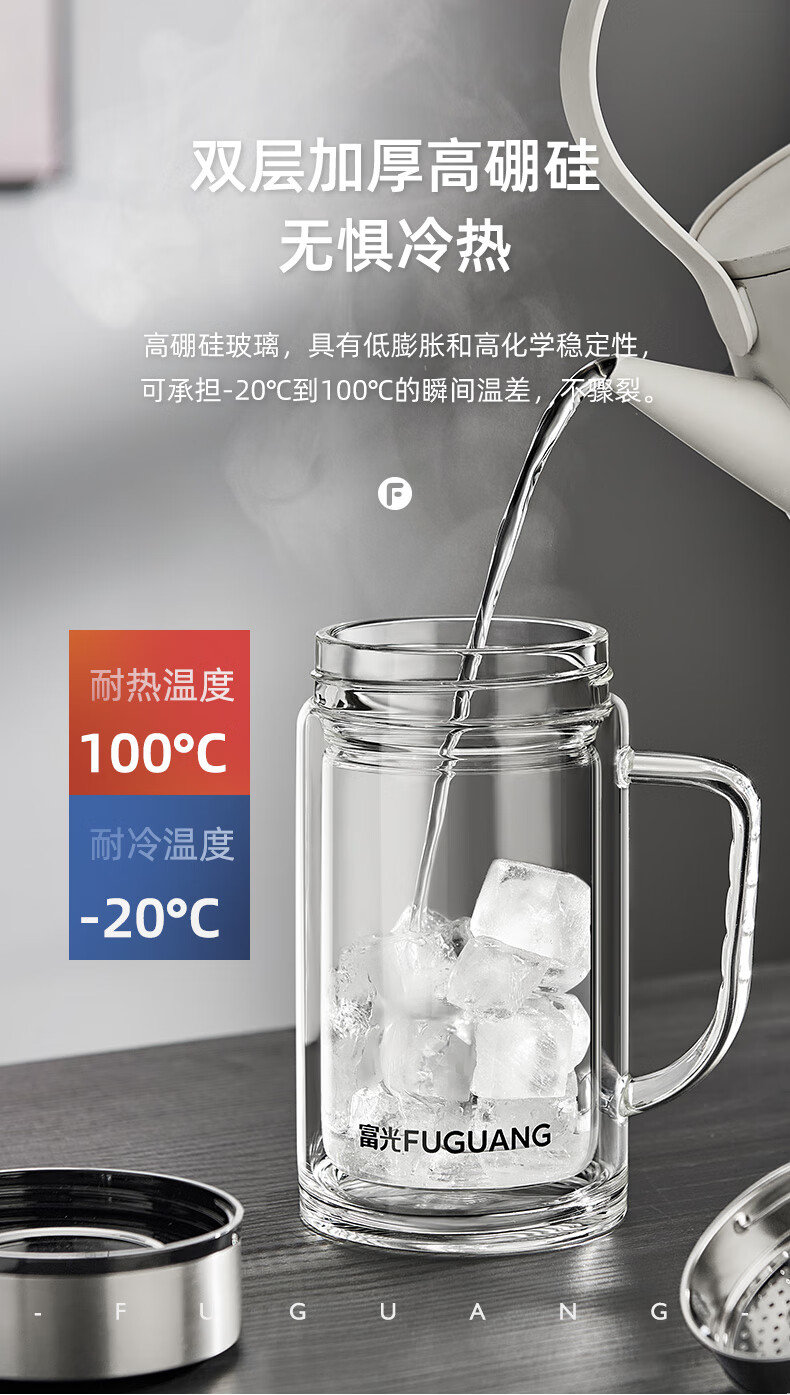 富光大容量高硼硅双层玻璃杯带茶隔加厚水杯子带把泡茶杯办公杯