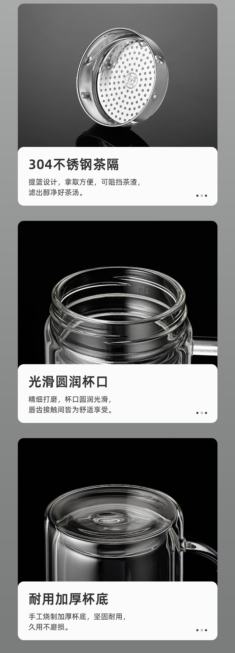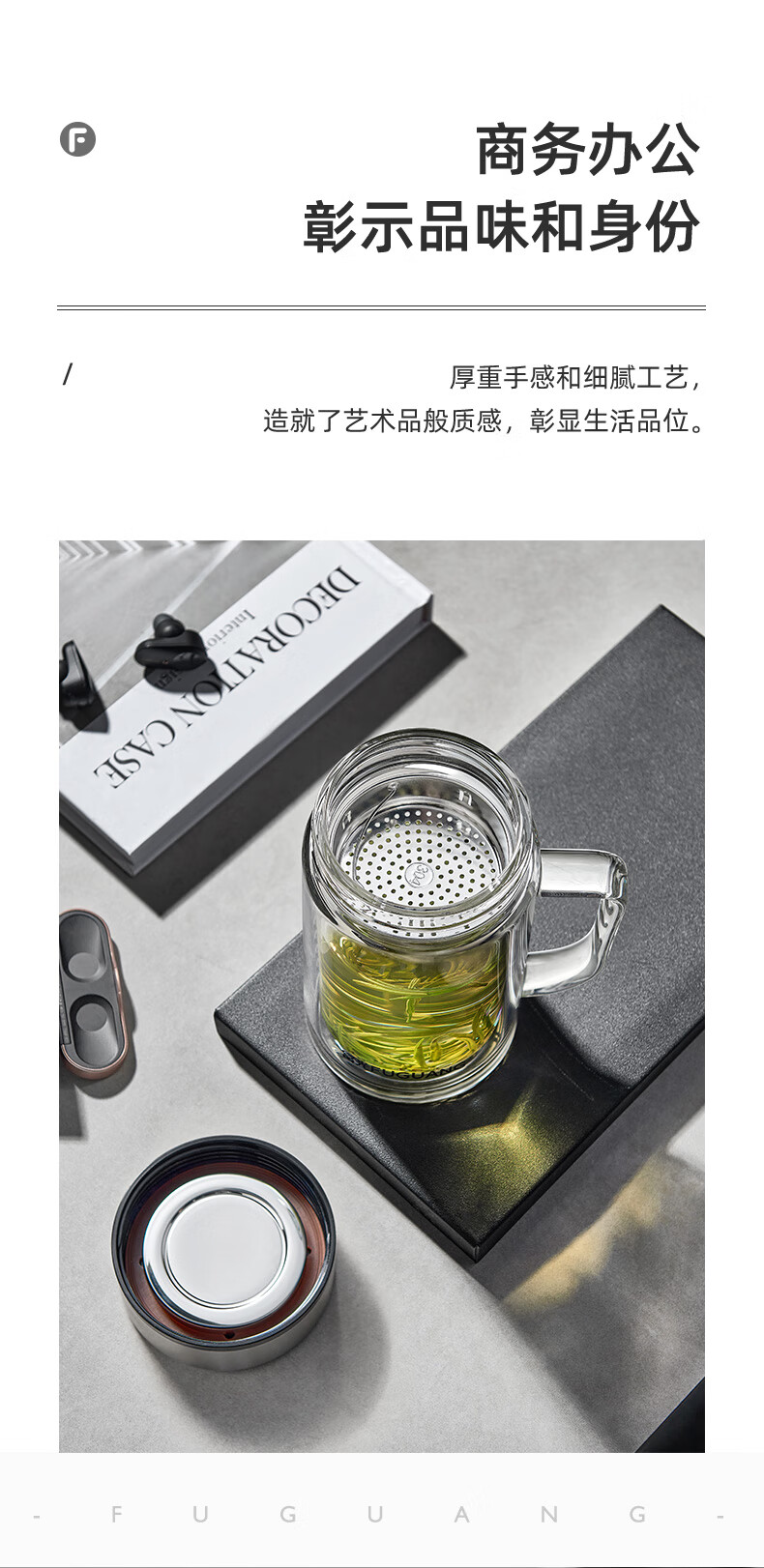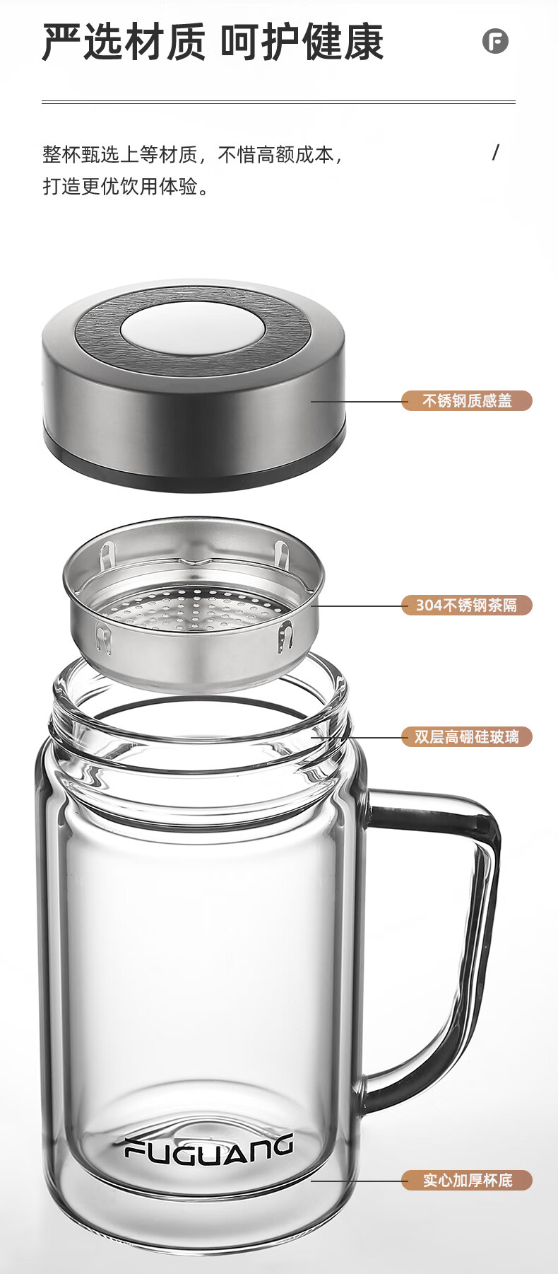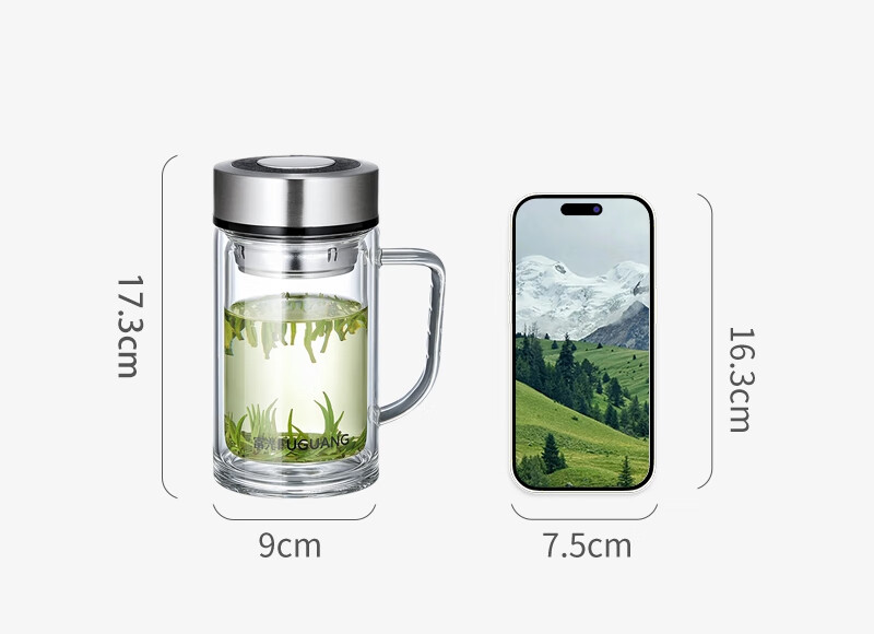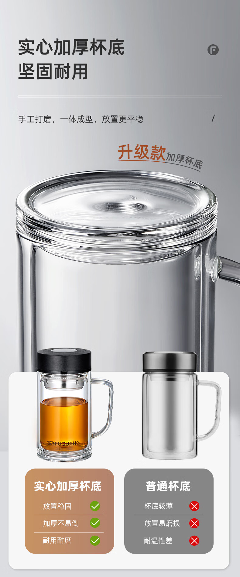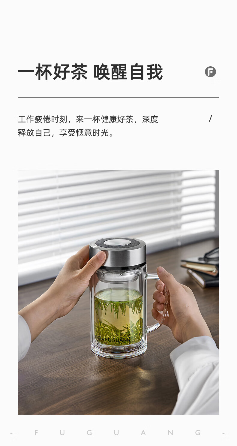 富光大容量高硼硅双层玻璃杯带茶隔加厚水杯子带把泡茶杯办公杯