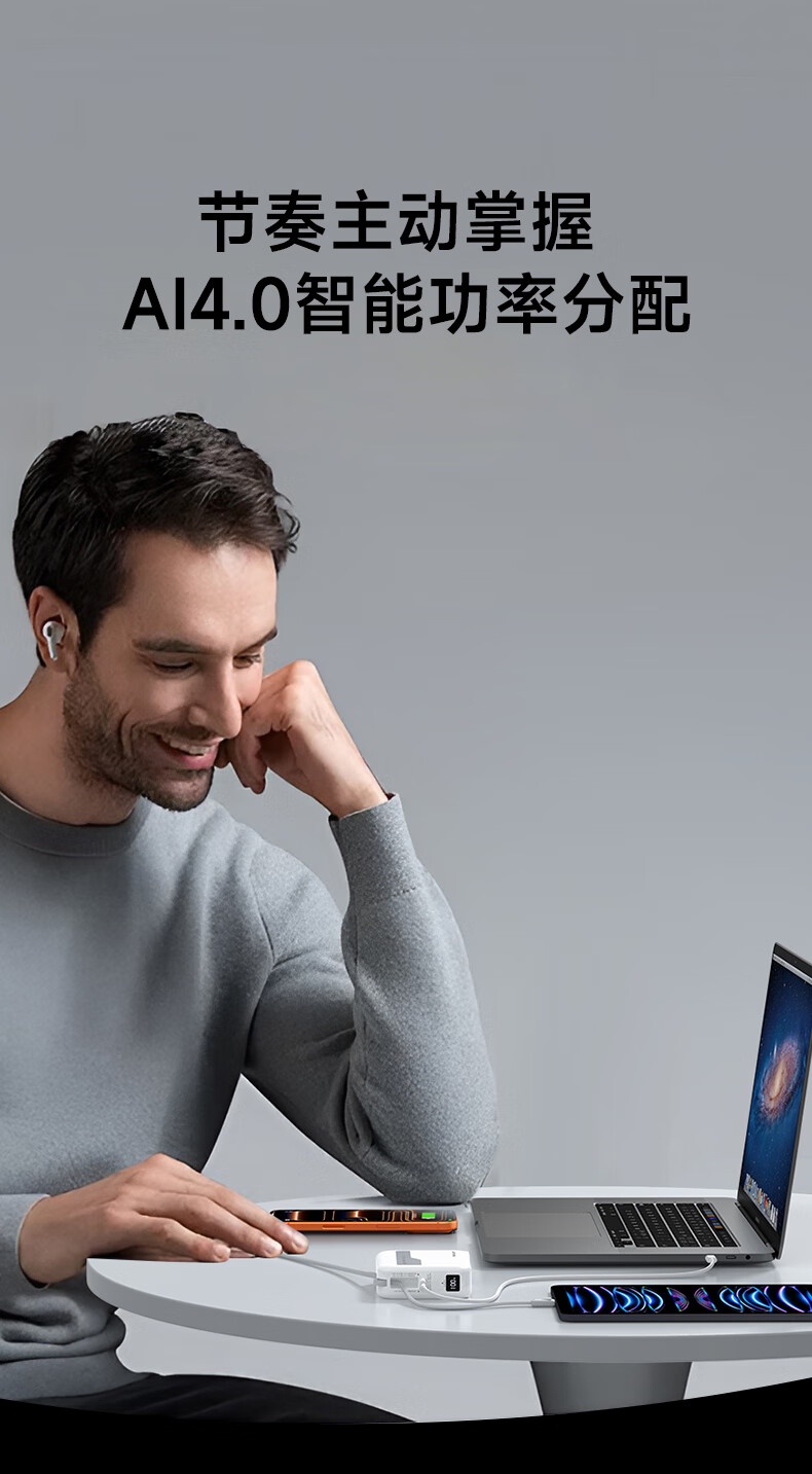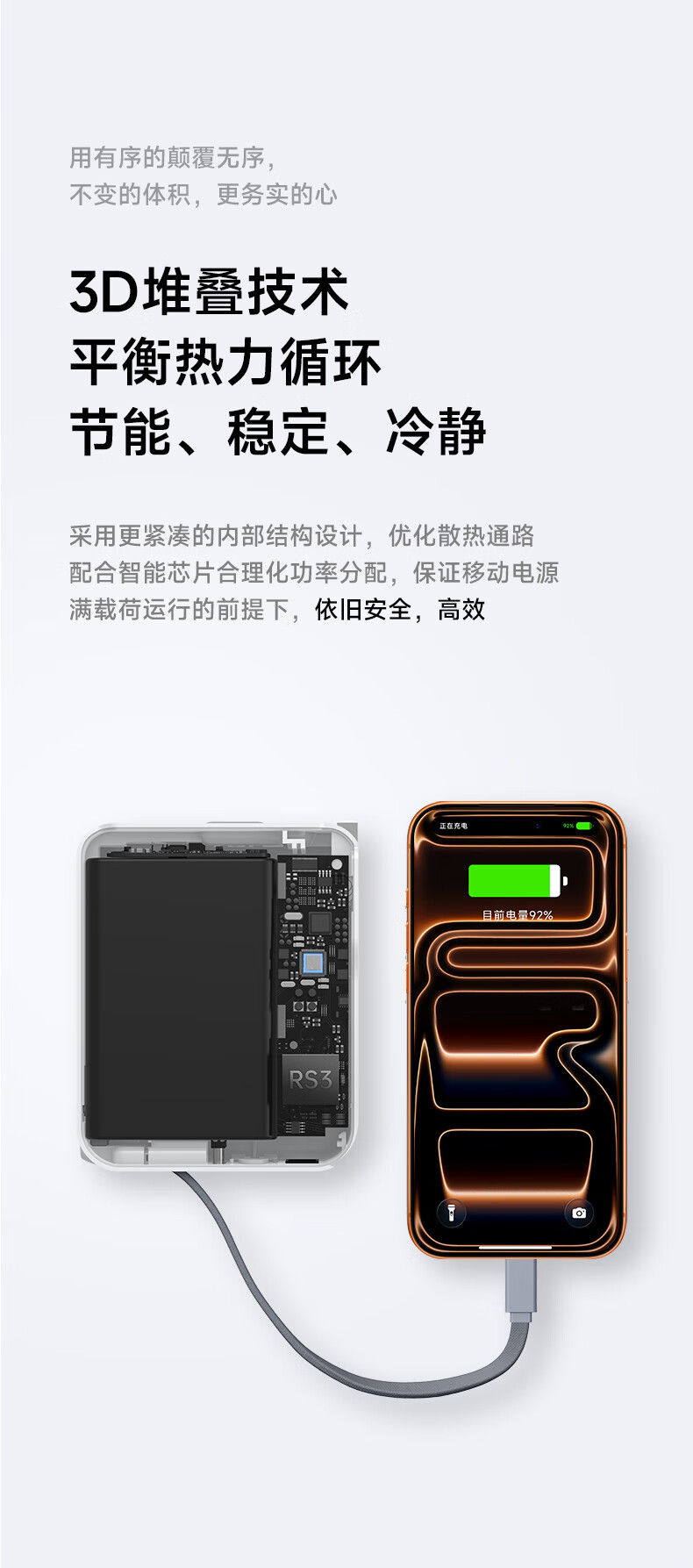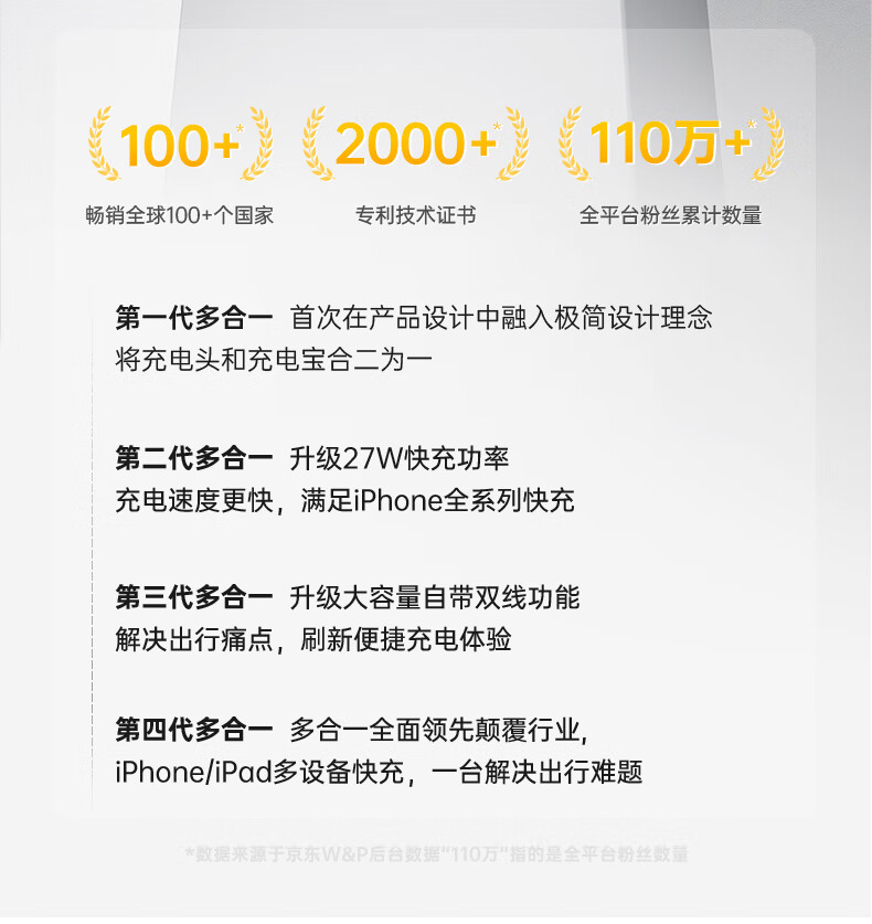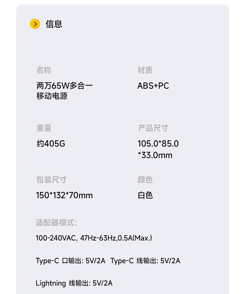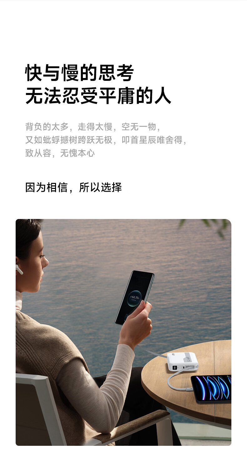 W&P新国标3C认证可上飞机65W充电宝20000毫安自带双线AC插头快充三合一移动电源适用苹果17华为小米wp