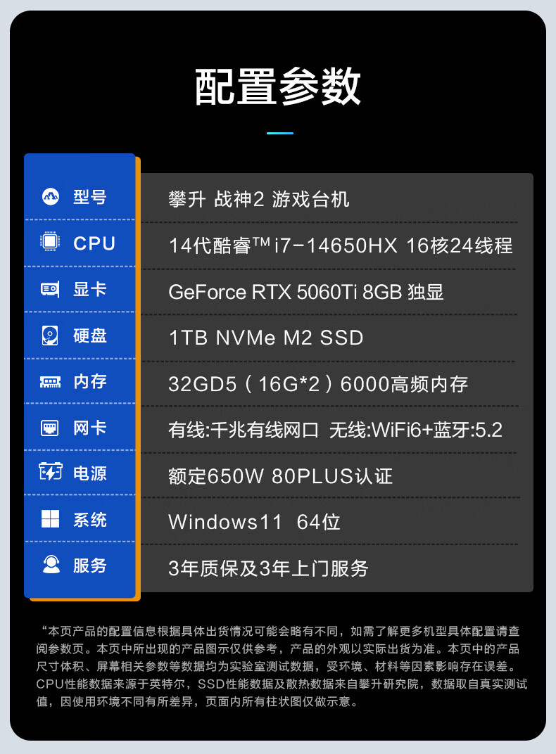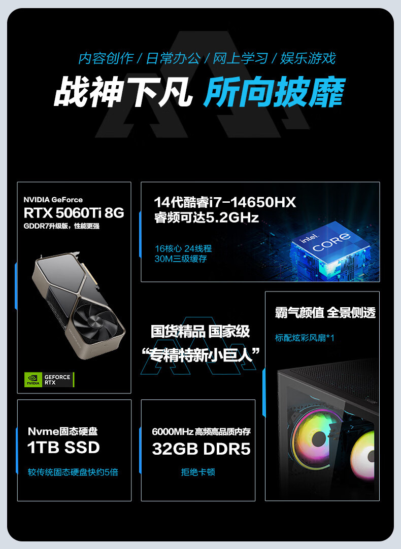 攀升战神2 台式电脑三角洲游戏台式机电脑主机整机(14代酷睿i7 RTX5060ti 32GD5 1TB)国家补贴20%